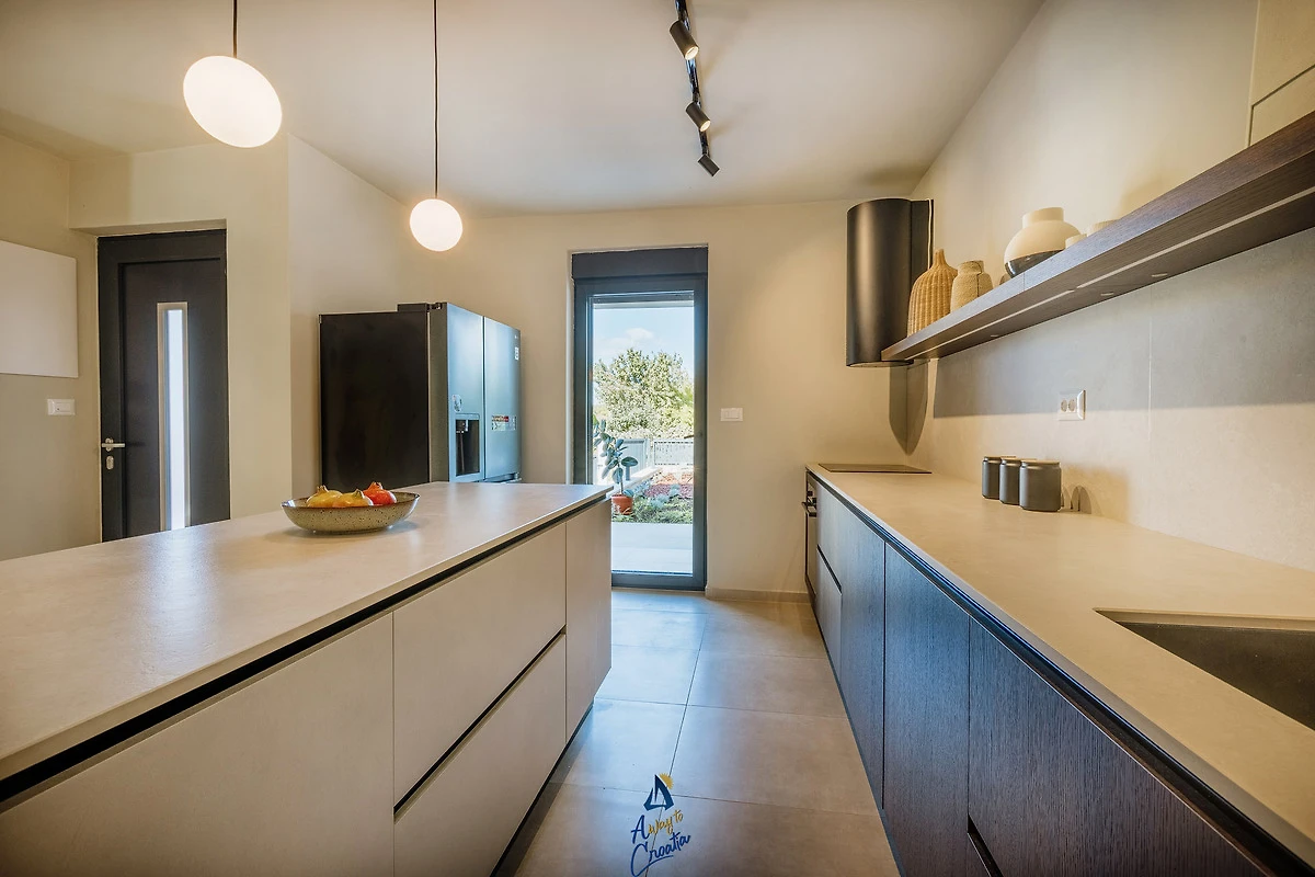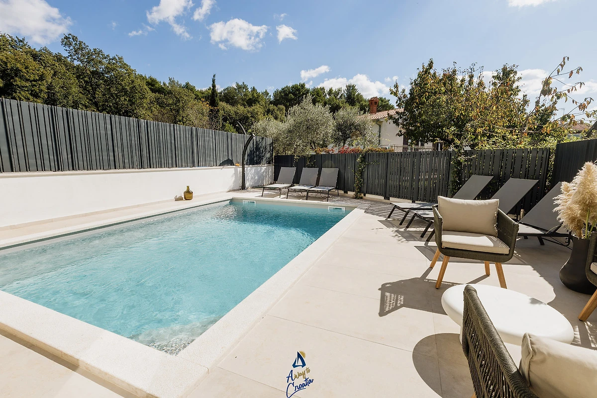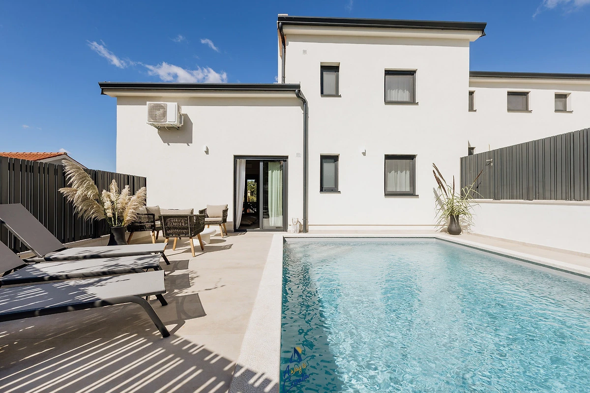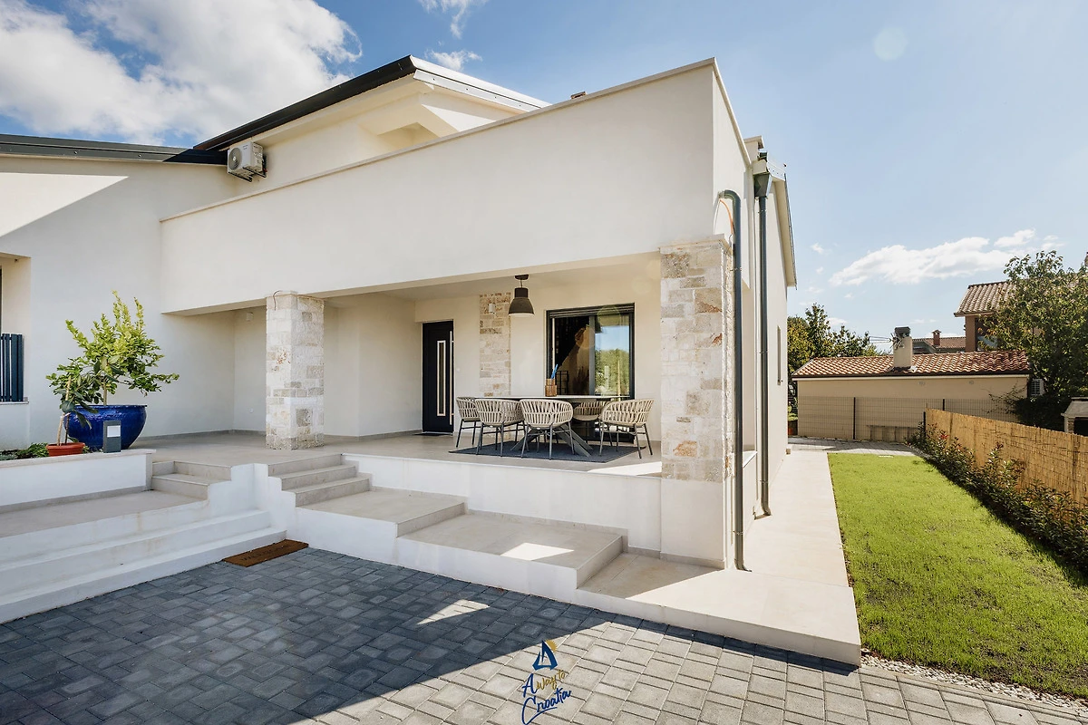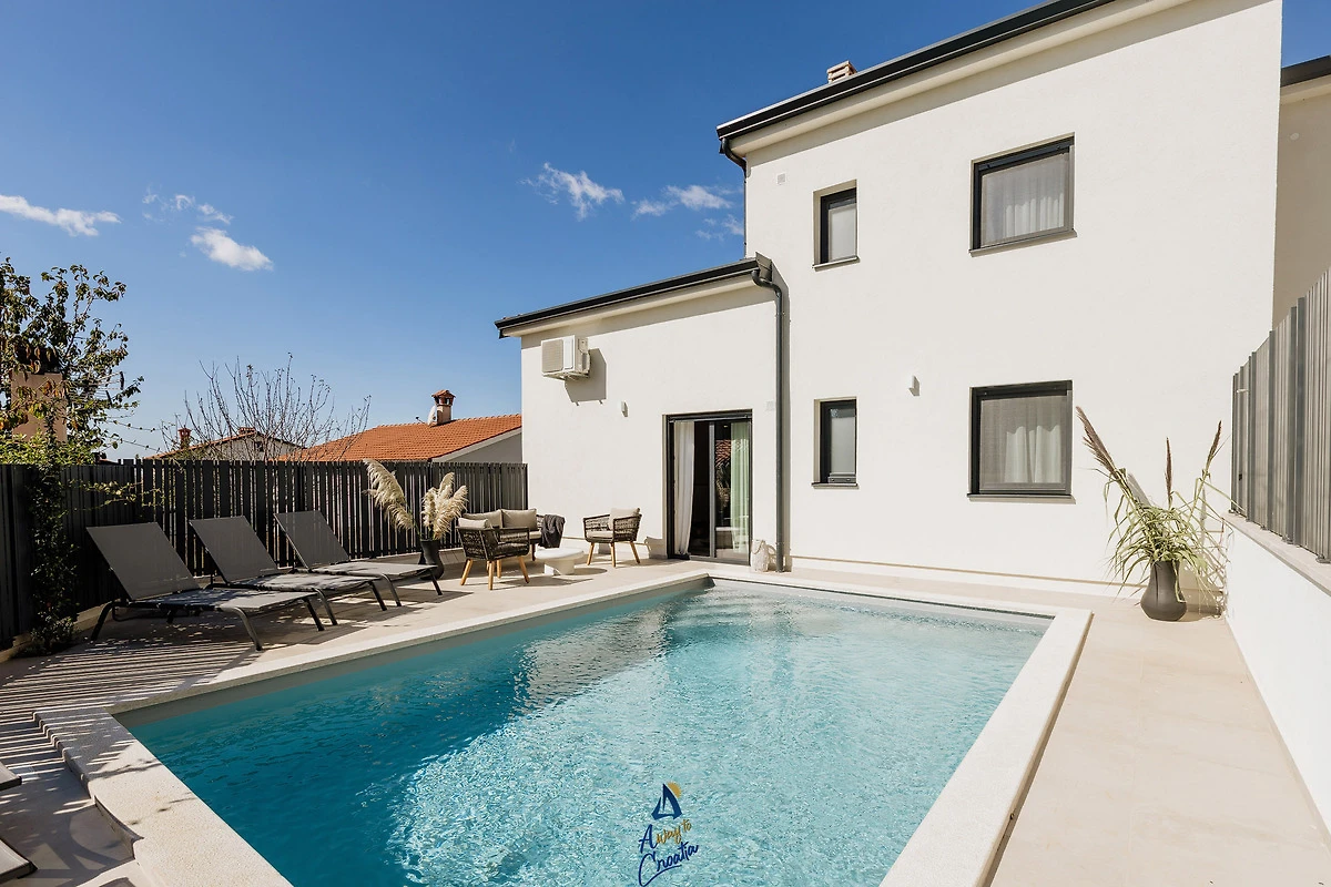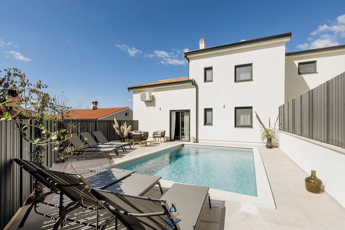 Benvenuti a Villa Zola , il vostro nuovissimo rifugio istriano nella splendida Visignano! Scoprite Villa Zola , una casa vacanze completamente nuova , pensata per chi cerca il perfetto equilibrio tra l'autentico fascino croato e il comfort moderno . Situata nella tranquilla e pittoresca cittadina di Visignano , questa villa offre una fuga indimenticabile per famiglie e amici. Entrate e sentitevi subito a casa in uno spazio creato con cura e calore. La villa può ospitare comodamente fino a 8 persone in tre camere da letto , ciascuna progettata per notti di riposo dopo le avventure soleggiate dell'Istria. Con due bagni immacolati , avrete tutto il necessario per rinfrescarvi e rilassarvi durante il vostro soggiorno. Il cuore della villa è un luminoso e accogliente soggiorno , perfetto per serate in compagnia, giochi o semplicemente per rilassarsi con i propri cari. Il soggiorno dispone anche di un divano letto , dove possono dormire comodamente altri 2 ospiti . Da qui, si accede direttamente alla terrazza baciata dal sole , dove la magia prende forma. Tuffatevi nella piscina privata all'aperto della villa e godetevi il sole sull'incantevole terrazza solarium, dotata di comodi lettini e di un'accogliente area lounge : l'ideale per un caffè mattutino, un pomeriggio di relax o un drink al tramonto. Villa Zola unisce lusso e comfort con dettagli studiati per rendere il vostro soggiorno senza sforzo, tra cui due posti auto privati e una politica pet-friendly , così anche il vostro amico peloso potrà unirsi alla vacanza con un supplemento di 200 € a cane a settimana . Scoprite il meglio dell'Istria, dalle cantine locali ai percorsi ciclabili panoramici fino alla vicina costa adriatica, per poi tornare nella vostra oasi di pace a Villa Zola , dove ogni dettaglio è pensato per il vostro relax e divertimento. Non vediamo l'ora di darvi il benvenuto a Villa Zola, la vostra perfetta casa lontano da casa a Visignano!