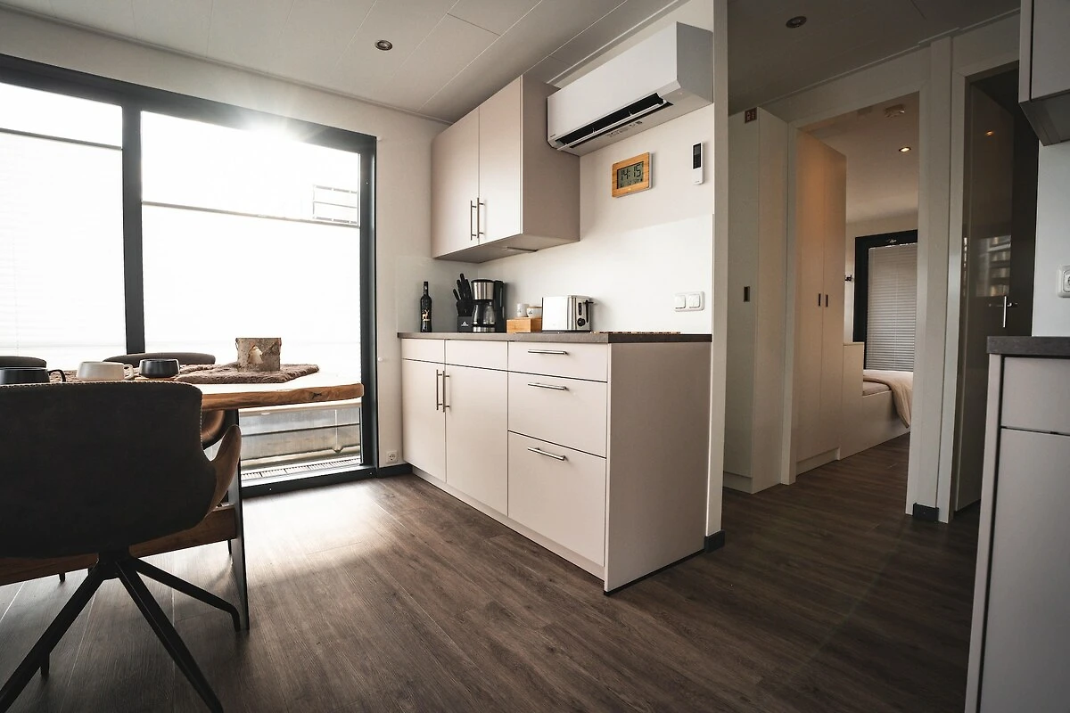 Fuggire dalla vita quotidiana può essere così facile! Saldamente ancorata alle onde, la casa galleggiante offre tutto ciò che il vostro cuore desidera: uno spazio abitativo completamente attrezzato e di alta qualità (44 m²) e due terrazze solarium (40 m²).