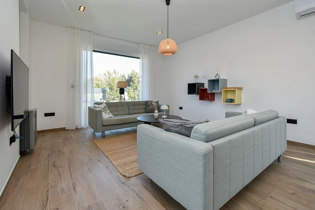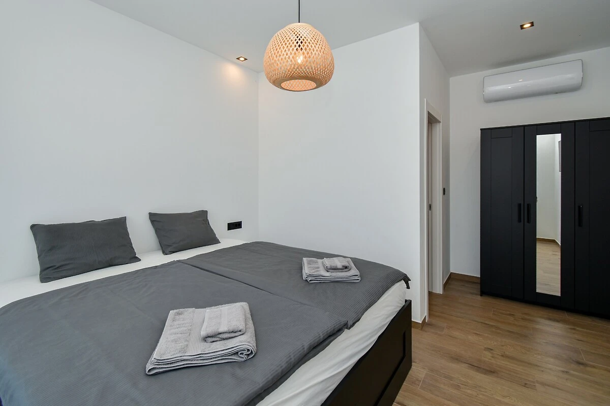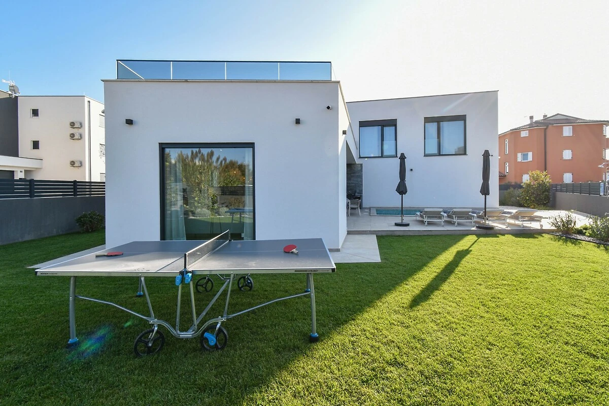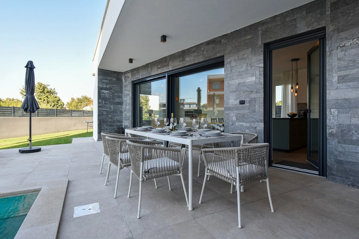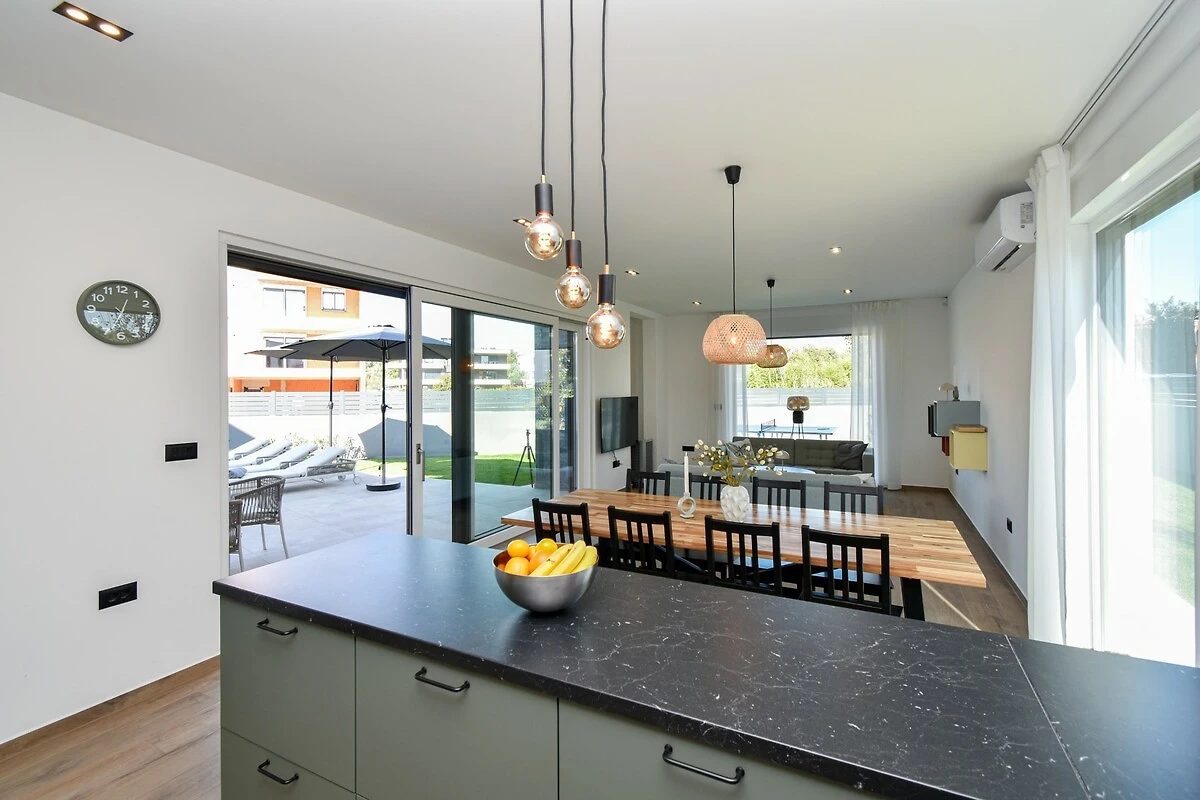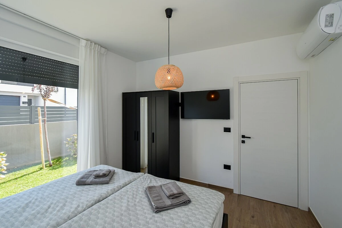 Situata in una bella e soleggiata zona di Medulin, questa villa modernamente arredata è la scelta ideale per famiglie o gruppi fino a 8 persone. Si trova a pochi minuti in auto dal mare e nelle vicinanze ci sono numerose spiagge per famiglie, ottimi ristoranti e la splendida passeggiata di Medulin, che soprattutto nelle ore serali prende vita. Al piano terra della villa si trovano un ampio soggiorno con zona pranzo e accesso diretto alla terrazza e alla piscina, una cucina completamente attrezzata, un bagno e una camera da letto con un grande letto matrimoniale, aria condizionata e TV.