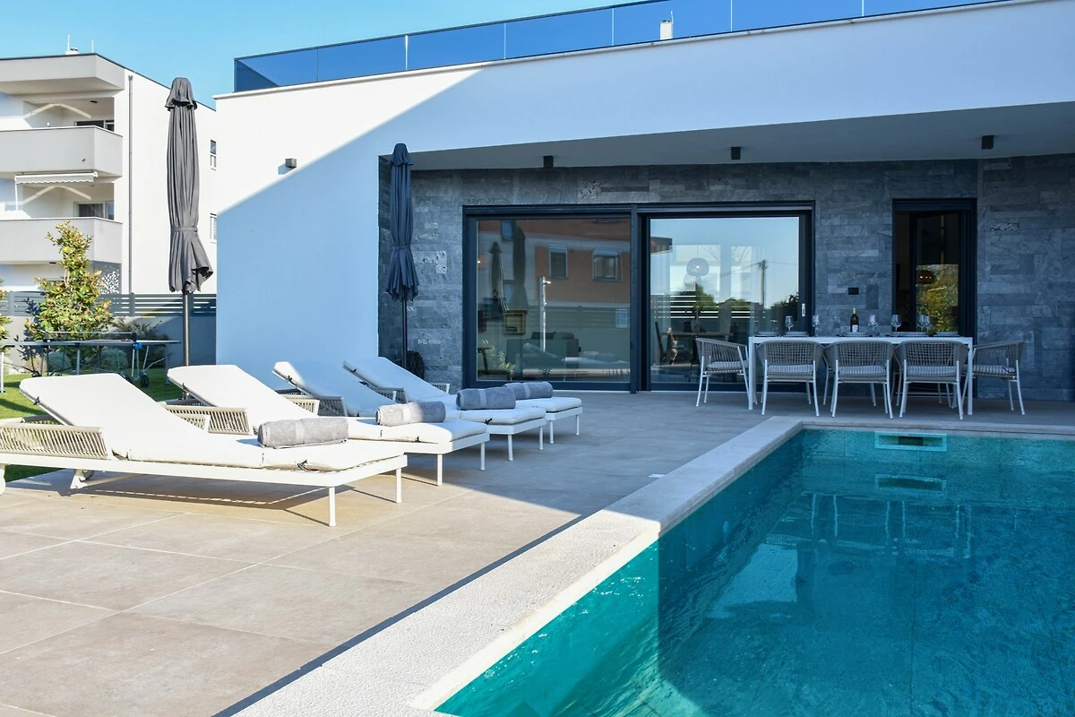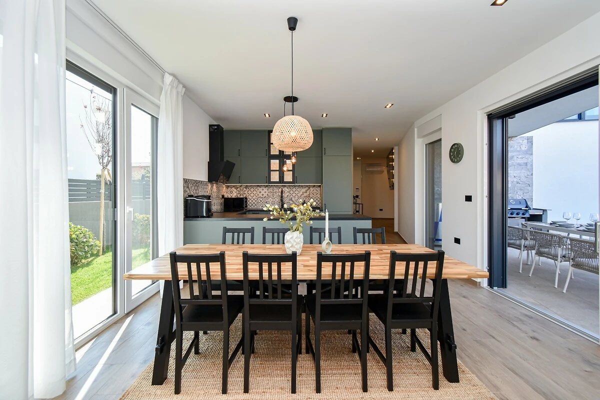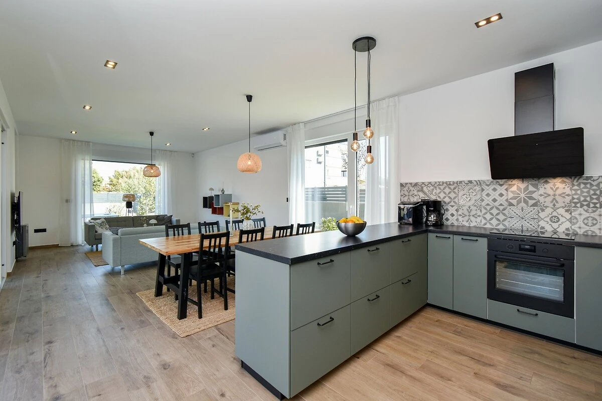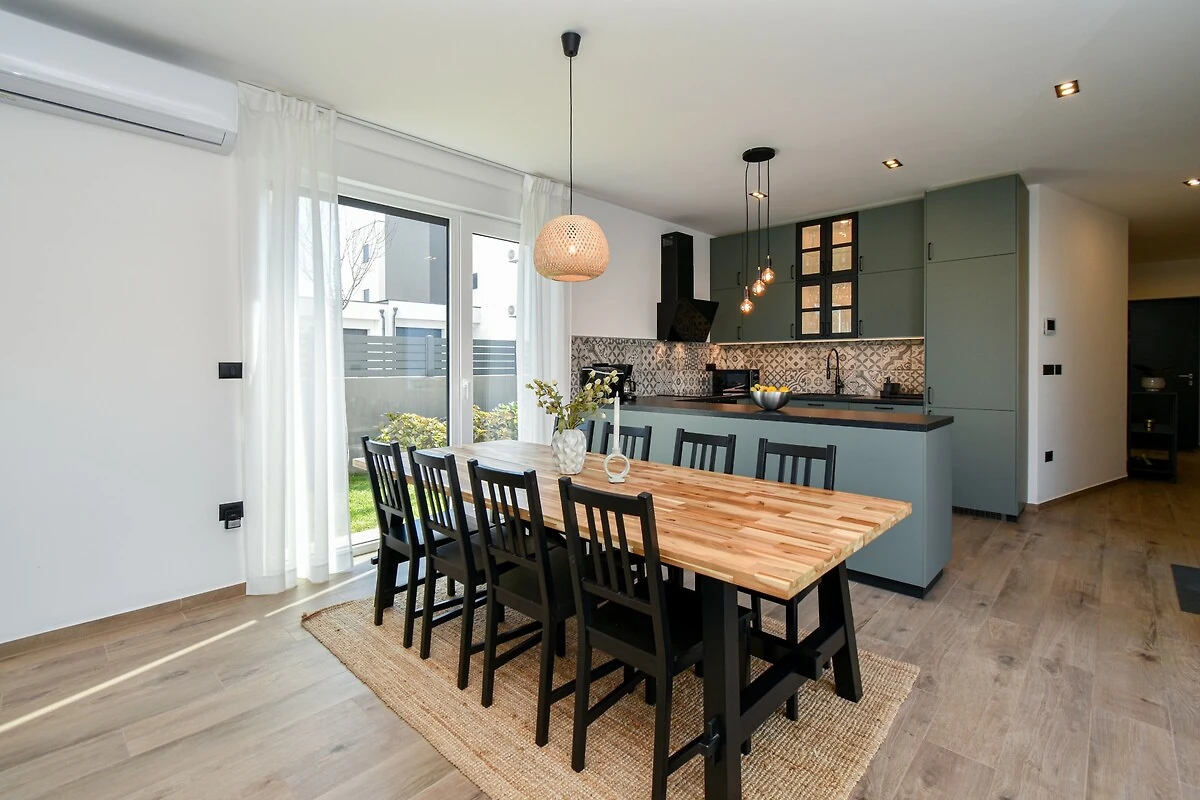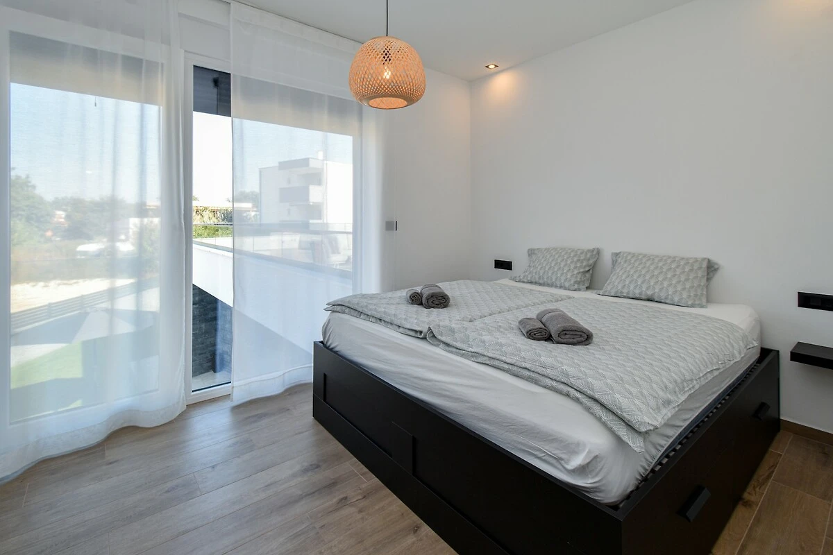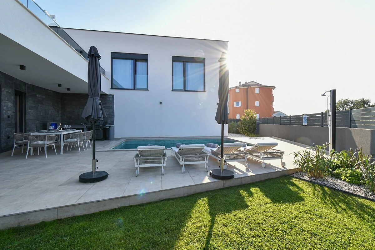 Situata in una bella e soleggiata zona di Medulin, questa villa modernamente arredata è la scelta ideale per famiglie o gruppi fino a 8 persone. Si trova a pochi minuti in auto dal mare e nelle vicinanze ci sono numerose spiagge per famiglie, ottimi ristoranti e la splendida passeggiata di Medulin, che soprattutto nelle ore serali prende vita. Al piano terra della villa si trovano un ampio soggiorno con zona pranzo e accesso diretto alla terrazza e alla piscina, una cucina completamente attrezzata, un bagno e una camera da letto con un grande letto matrimoniale, aria condizionata e TV.