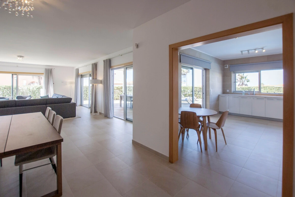 Alloggio di 230 m², posizionato in fronte mare e prima fila del campo di golf, con vista al giardino e alla piscina.