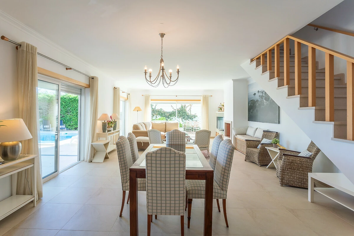 Alloggio di 220 m², posizionato in fronte mare e prima fila del campo di golf, con vista al giardino e alla piscina.