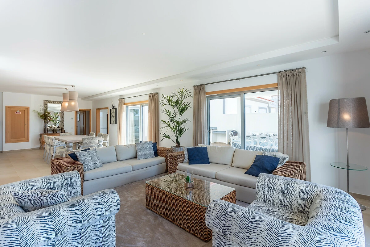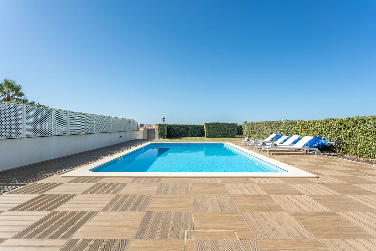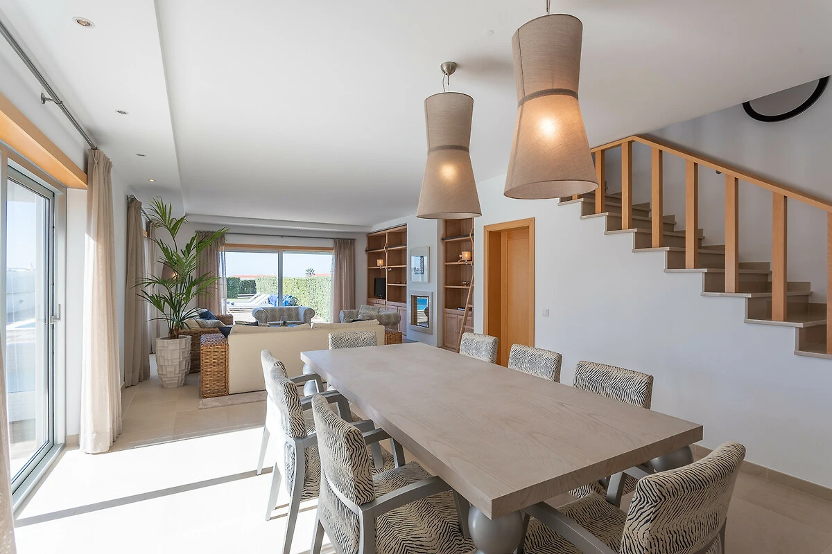 Alloggio di 220 m², posizionato in fronte mare e prima fila del campo di golf, con vista al giardino e alla piscina.