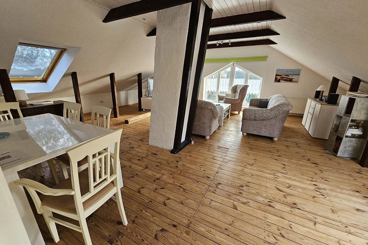 Nel soggiorno una TV invita a trascorrere serate accoglienti. Il Wi-Fi veloce permette di navigare comodamente o lavorare da casa. L'arredamento di alta qualità con pavimenti in legno e ambienti luminosi crea un'atmosfera piacevole. Vivete giornate di vacanza indimenticabili sul Mar Baltico – al Resthof Königswiese vi aspetta puro relax!