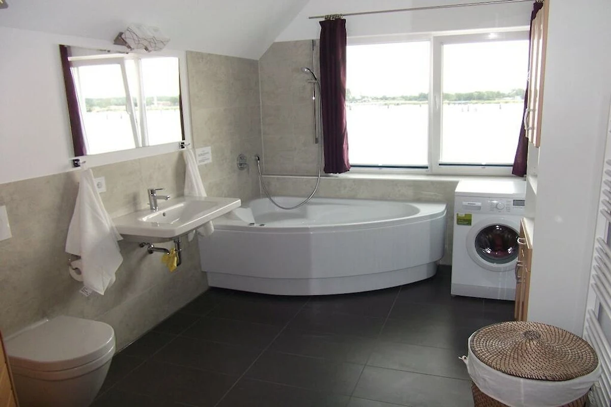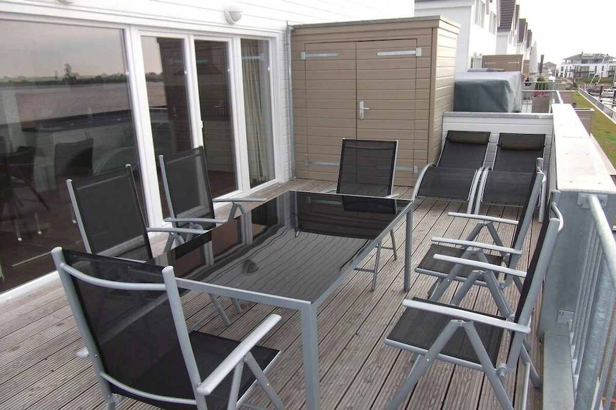 Questo lussuoso appartamento di 93 metri quadrati, di alta qualità, è dotato di camino, sauna a infrarossi, vasca idromassaggio e TV a schermo piatto. Situato direttamente sul molo, è a pochi passi dall'acqua. L'appartamento si sviluppa su due piani, dal primo piano alla mansarda, e vanta un balcone molto spazioso al piano superiore.