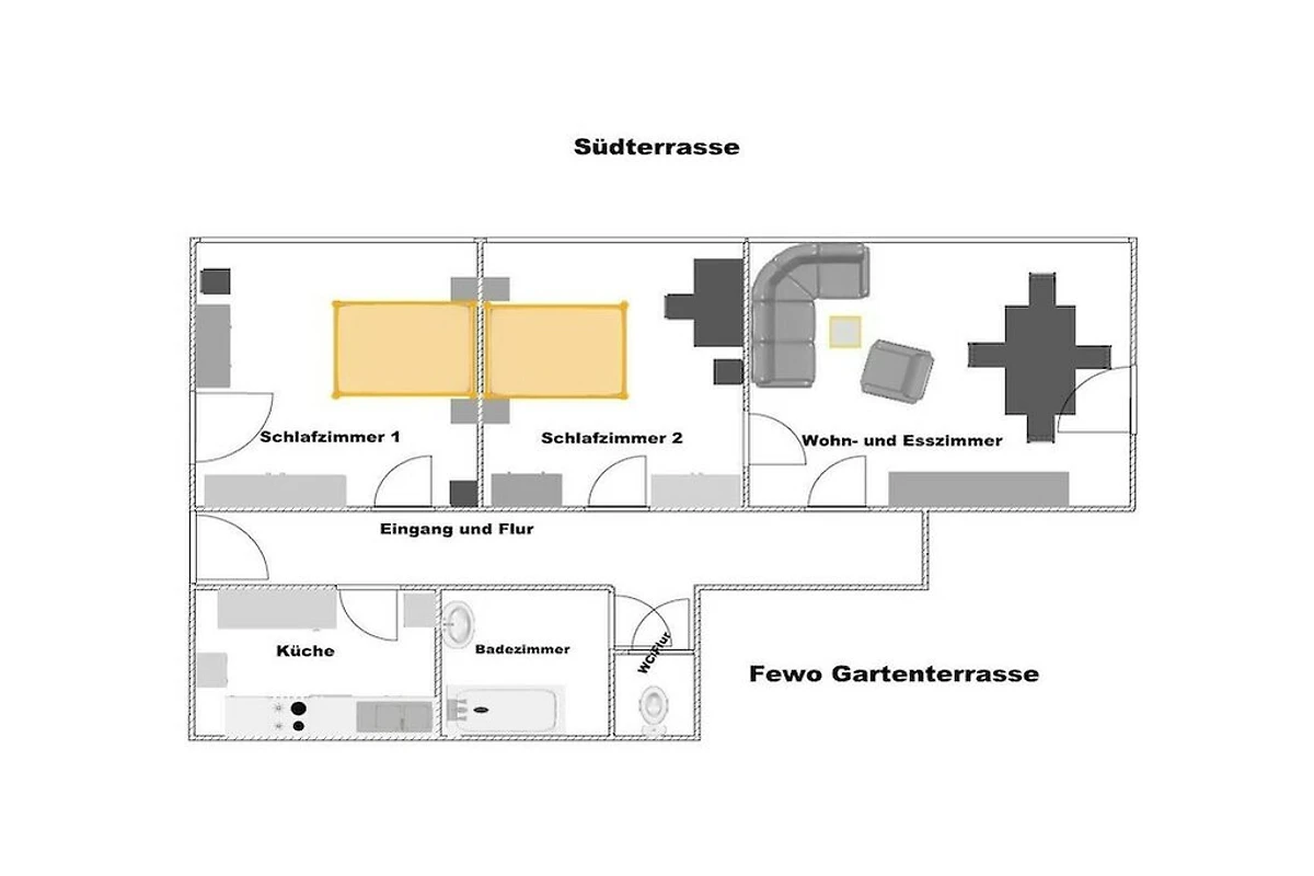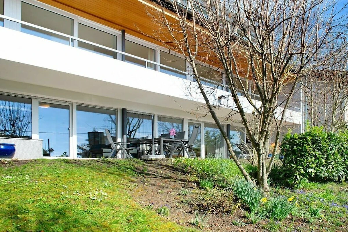 Luminoso e di alta qualità appartamento al piano terra con terrazza-giardino, ampia terrazza soleggiata e due camere da letto separate. Godetevi l'ampio giardino a vostro uso esclusivo. Sono disponibili lettini prendisole e barbecue.