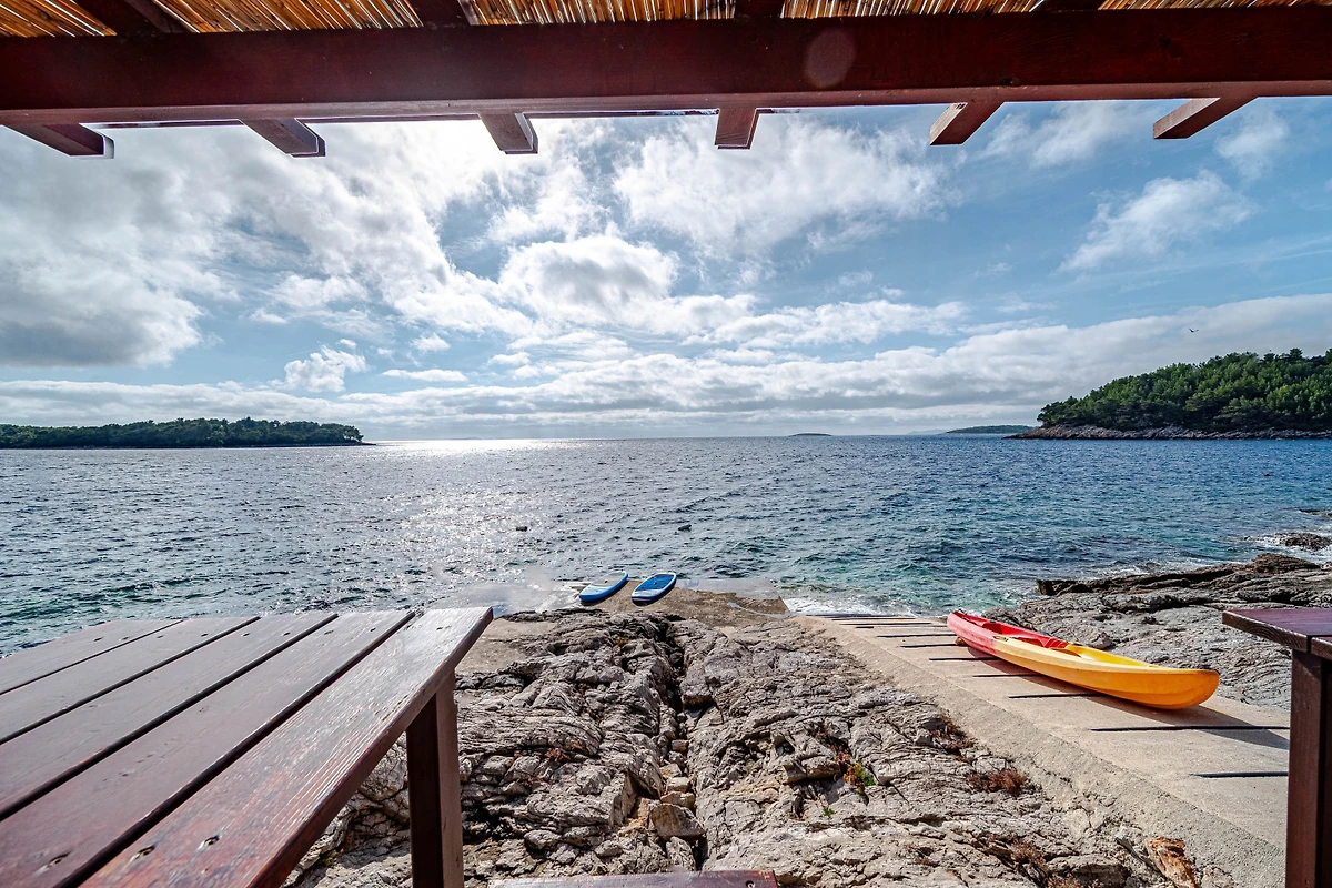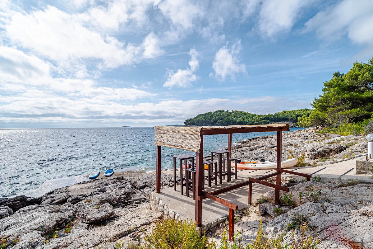 Servizi pratici includono un parcheggio privato coperto per 2 veicoli e l'aria condizionata per garantire comfort durante i mesi più caldi. Situata a soli 50 metri da una spiaggia rocciosa e con il panoramico litorale di Karbuni nelle vicinanze, questa villa offre una base ideale per esplorare lo stupendo paesaggio croato.