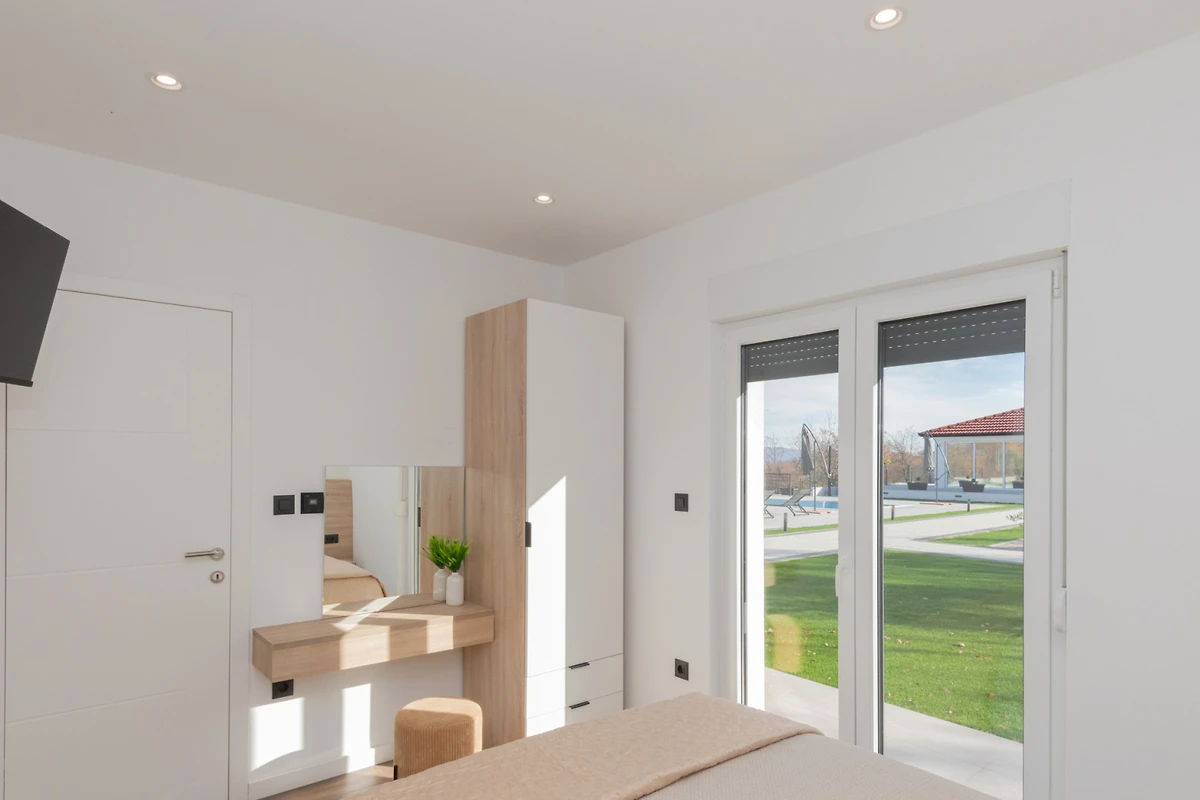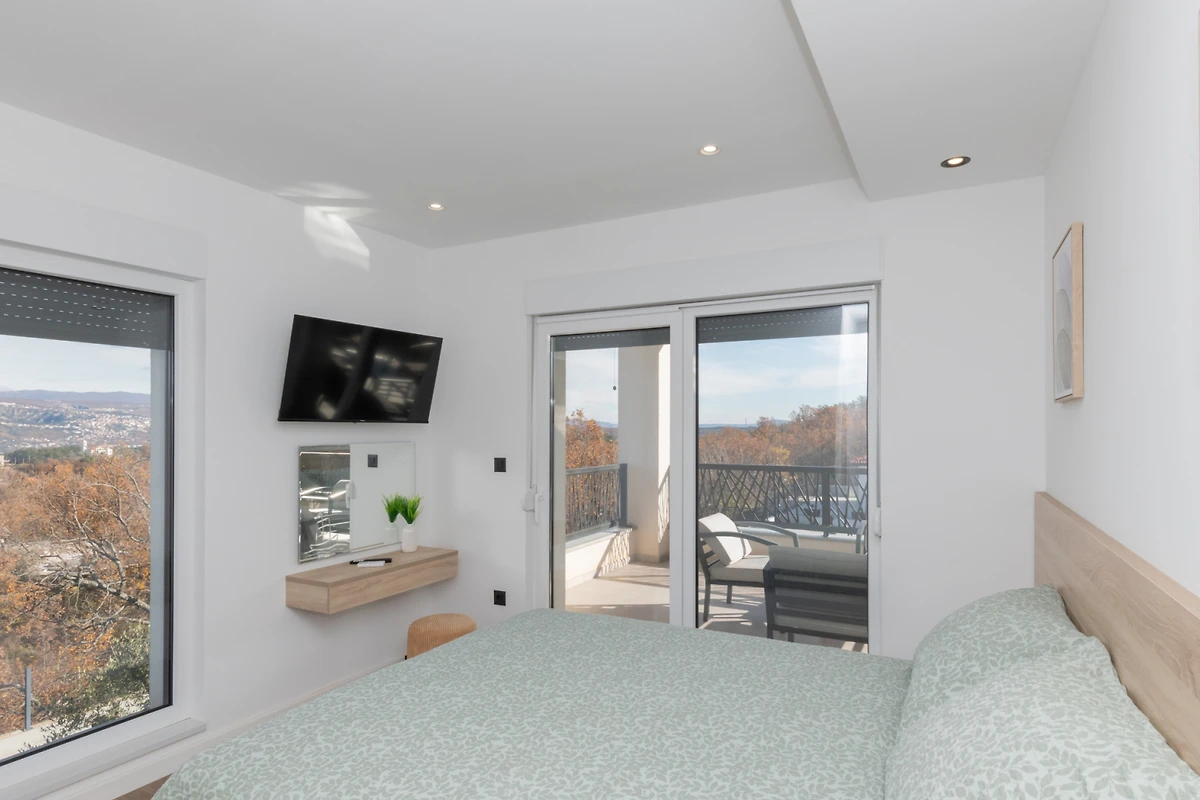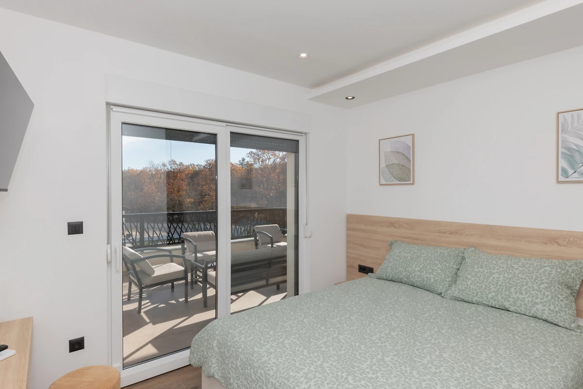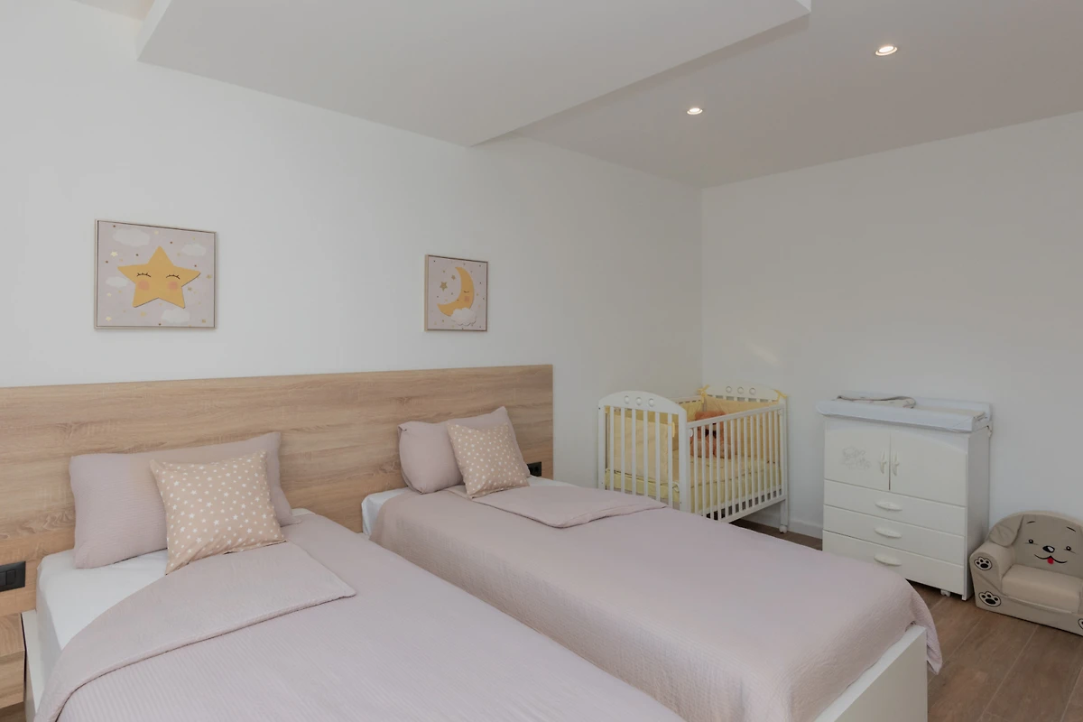 Scopri Villa Lea-Makarska, un rifugio spazioso e accogliente incastonato in un ambiente boschivo sereno, perfetto per famiglie e coppie che cercano una fuga tranquilla. Questa stupenda villa può ospitare comodamente fino a 12 ospiti in 5 camere da letto splendidamente arredate, con una combinazione di letti matrimoniali e singoli.