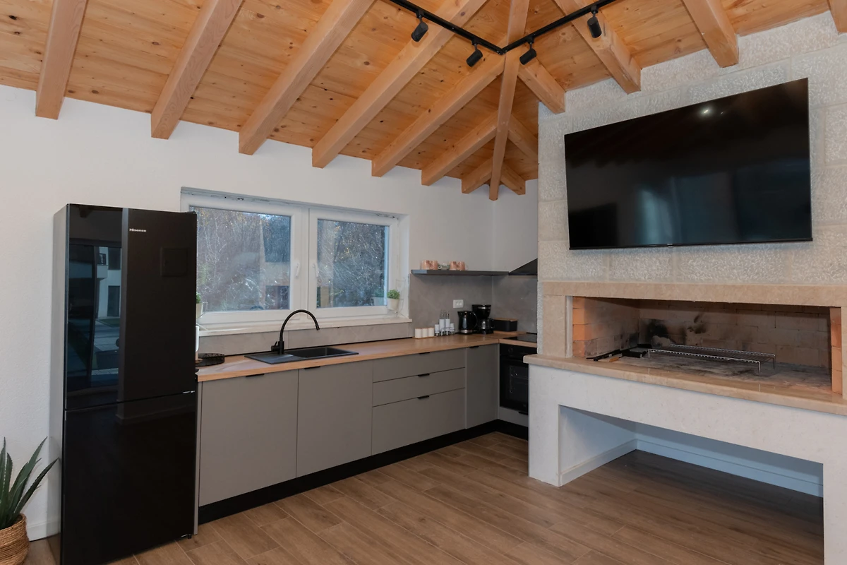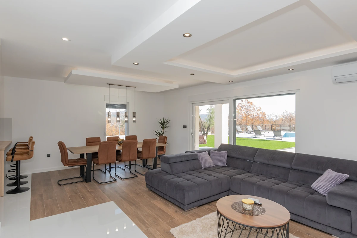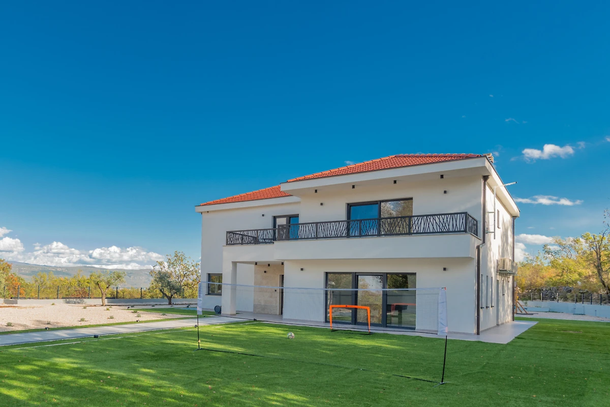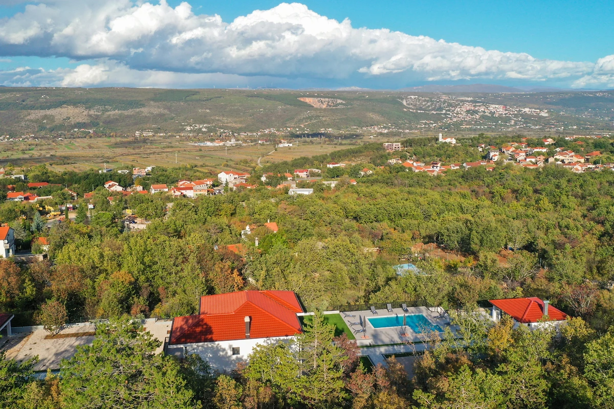Il parcheggio è comodo con 3 posti auto privati coperti all'interno dello stesso edificio. La villa è situata su un ampio terreno di 2.420 metri quadrati, con 305 metri quadrati di spazio abitabile. Situata a soli 500 metri da un supermercato e a 4 chilometri dalla città di Imotski, la villa offre sia riservatezza che accessibilità.