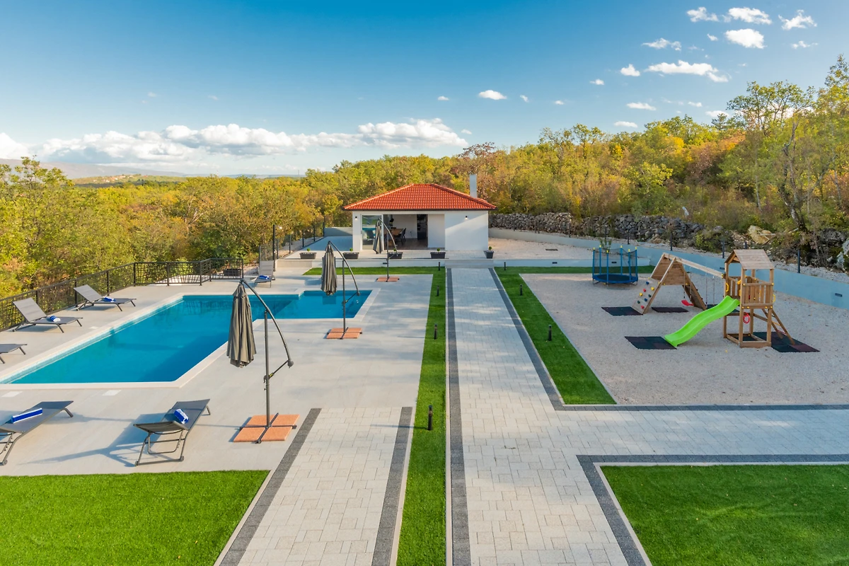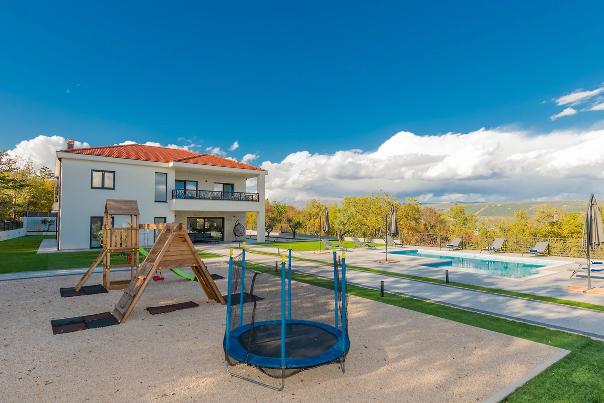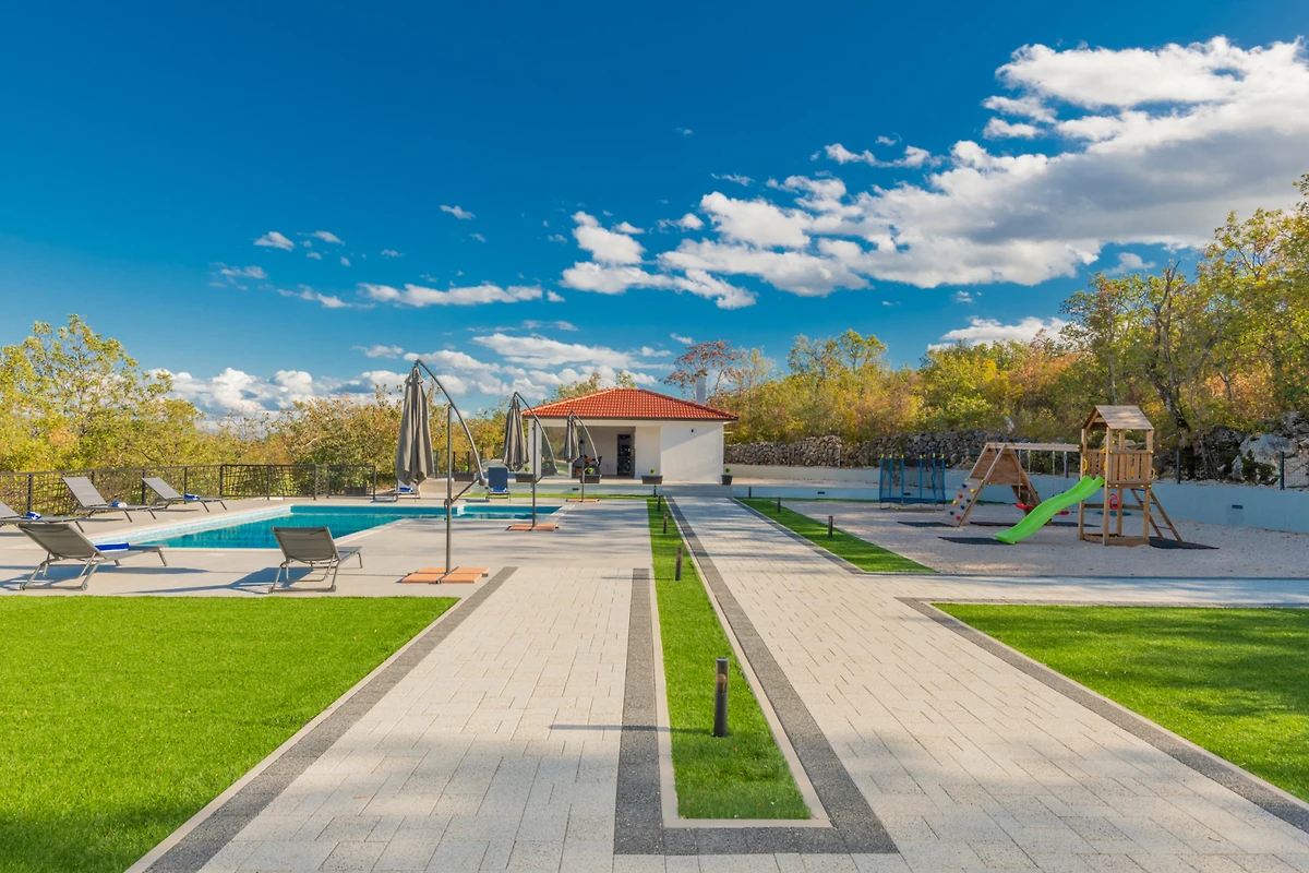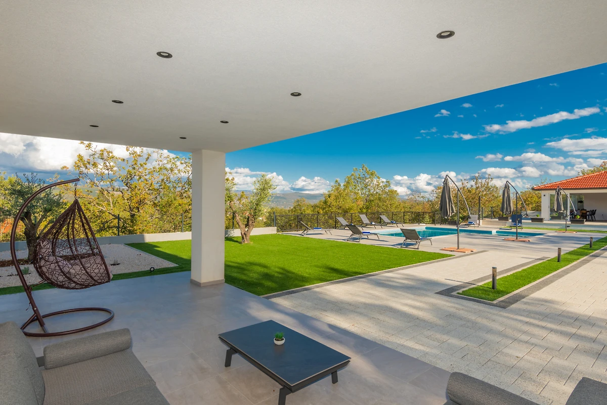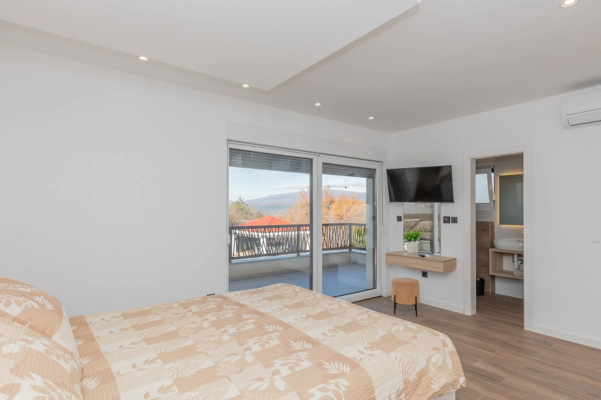 Il parcheggio è comodo con 3 posti auto privati coperti all'interno dello stesso edificio. La villa è situata su un ampio terreno di 2.420 metri quadrati, con 305 metri quadrati di spazio abitabile. Situata a soli 500 metri da un supermercato e a 4 chilometri dalla città di Imotski, la villa offre sia riservatezza che accessibilità.