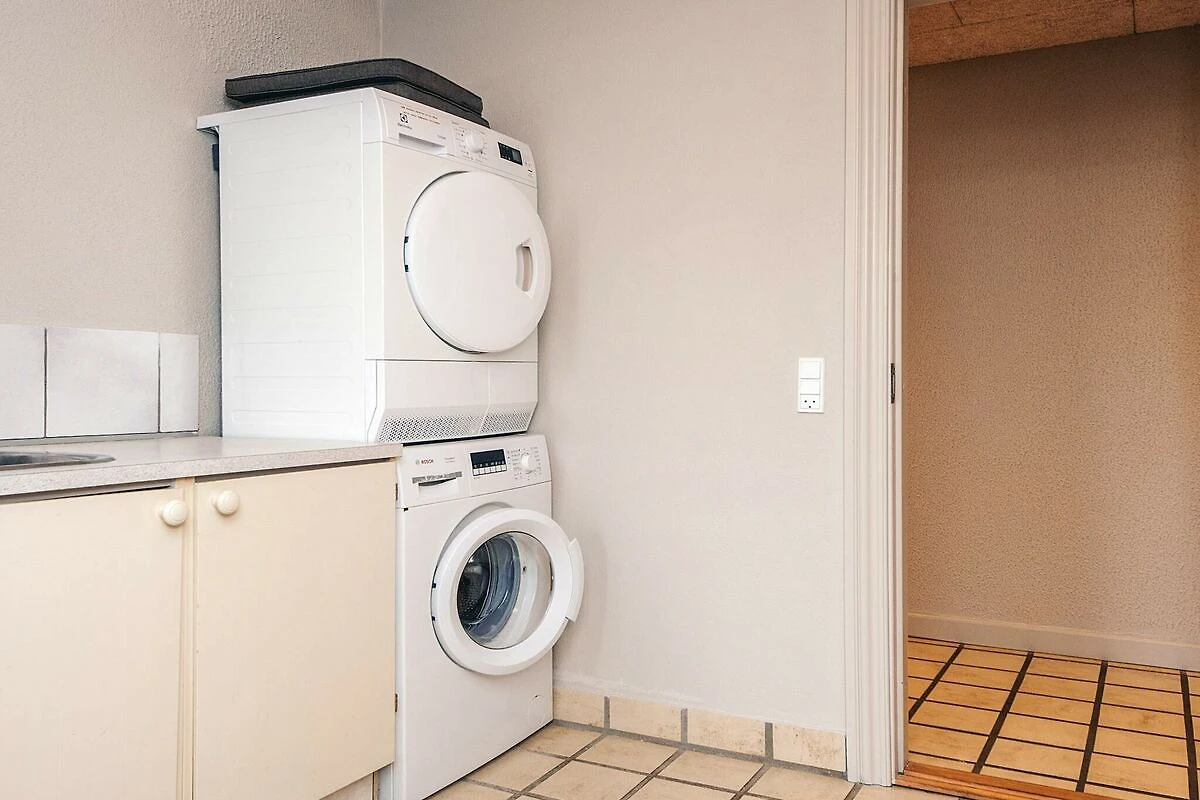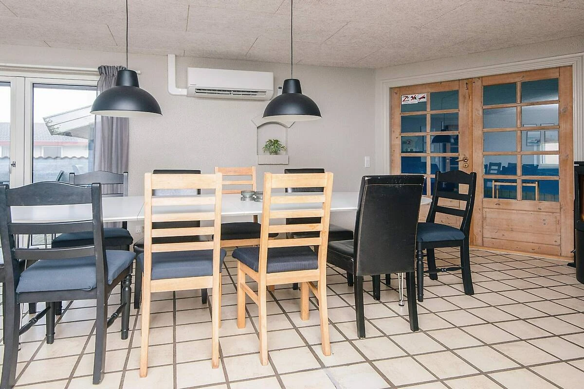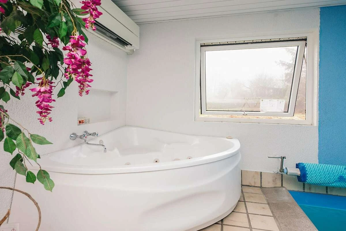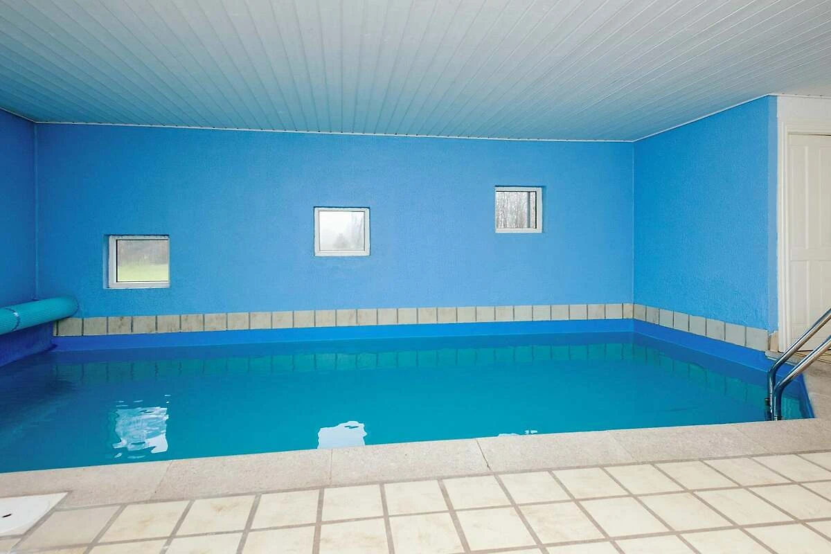 , Cucina separata(mobile cucina(elettrico), caffettiera, forno a microonde, lavastoviglie, congelatore(1-59L), frigo con congelatore), Soggiorno/camera da letto(TV(canali televisivi tedeschi, canali TV danesi), lettore DVD, impianto stereo), Camera da letto(letto matrimoniale), Camera da letto(2x letto singolo, 2x letto a castello), Camera da letto(letto matrimoniale), Camera da letto(letto matrimoniale), Camera da letto(2x letto singolo), Bagno(asciugabiancheria, lavabo, doccia, WC, lavatrice), Bagno(lavabo, doccia, WC), vasca idromassaggio(all’interno, riscaldata, 4 persone), sauna(all’interno, 4 persone), balcone o terrazza, riscaldamento(elettrico), giardino, mobili da giardino, piscina(all’interno), termopompa aria-aria