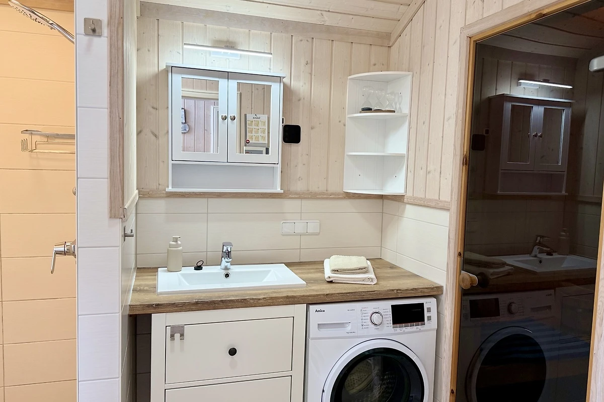 La cucina completamente attrezzata con, tra l'altro, lavastoviglie, microonde, bollitore e macchina da caffè rende cucinare un piacere. Biancheria da letto e asciugamani sono disponibili su richiesta, così come una lavatrice, ferro da stiro e asciugacapelli – così il vostro bagaglio rimane leggero. Per le famiglie sono disponibili un lettino per bambini e un seggiolone. Un televisore e la connessione Wi-Fi in fibra ottica gratuita garantiscono intrattenimento e comfort. Il vostro veicolo è parcheggiato in sicurezza sotto la tettoia accanto alla casa.