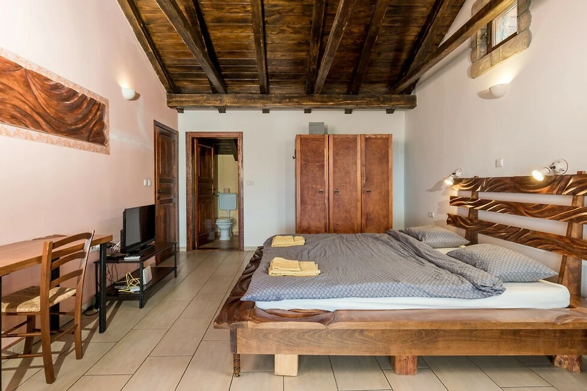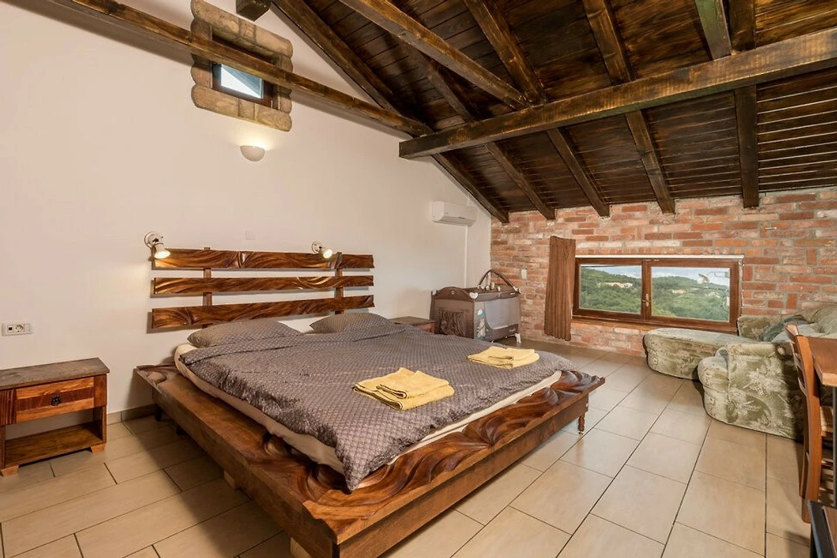 Scopri Villa Tihana, un incantevole rifugio rurale incastonato nel paesaggio pittoresco di Icici, perfetto per famiglie e coppie che cercano una fuga tranquilla. Questa spaziosa villa può ospitare comodamente fino a 10 ospiti in 5 camere da letto splendidamente arredate, con una combinazione di letti king-size, queen-size e singoli.