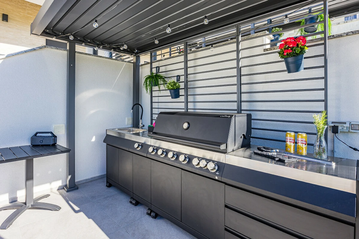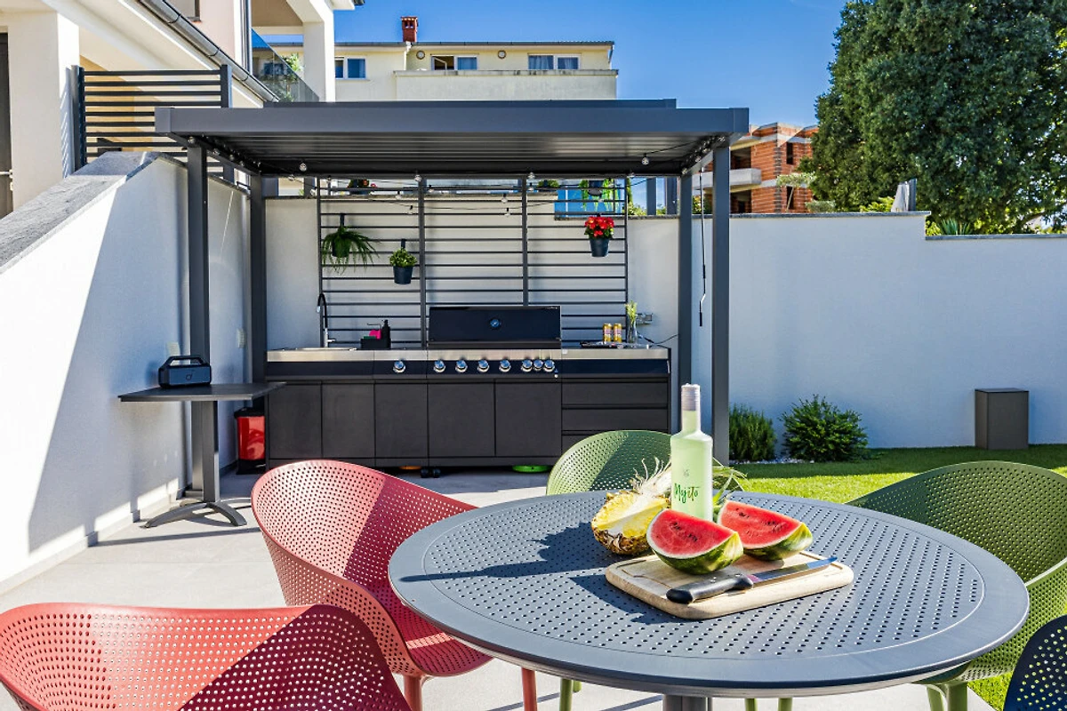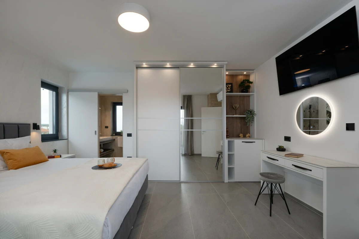 Scopri Villa Antares, un incantevole rifugio di 163m² immerso in un ambiente rurale tranquillo vicino a Pula, ideale per famiglie e coppie che cercano una fuga rilassante in Croazia. Questa luminosa e bellissima villa può ospitare comodamente fino a 6 ospiti in 3 camere spaziose, ciascuna con un lussuoso letto matrimoniale.