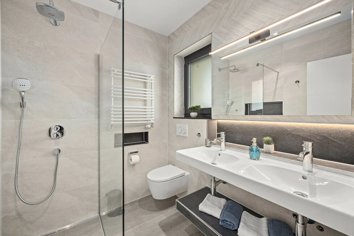 All'esterno, una piscina privata riscaldata (7x4 metri) vi aspetta, offrendo un punto perfetto per il relax. Il terreno di 450m² presenta un bellissimo giardino con mobili da giardino e un'area barbecue, ideale per pranzi all'aperto e per godere della stupenda vista piscina e giardino. Sono disponibili due posti auto esterni per il vostro veicolo.