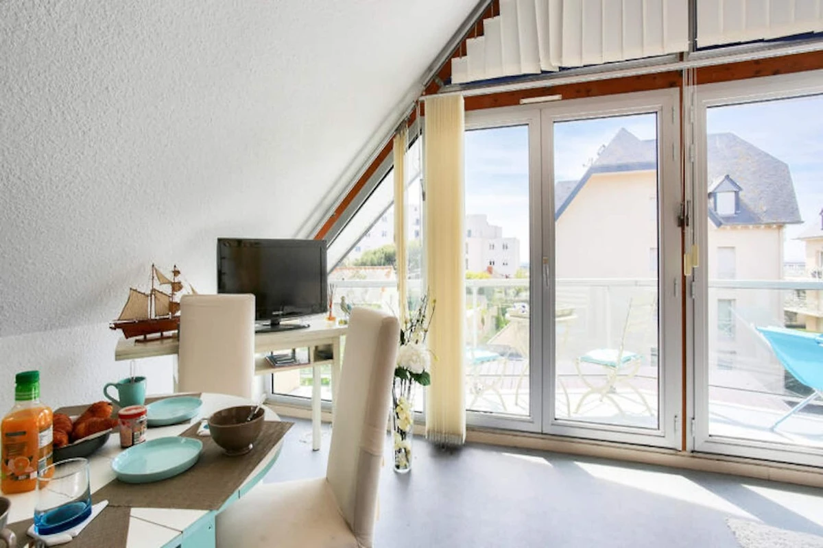 Arroccato sotto i tetti di Erquy, questo incantevole rifugio di 33 m² offre un rifugio sereno per un massimo di quattro persone. Dal momento in cui si varca la soglia del balcone, la dolce brezza marina e la vista mozzafiato sull'oceano incanteranno i vostri sensi. Situato sul lato del cortile di un edificio tranquillo, questo appartamento al secondo piano sembra un accogliente rifugio, completo di soffitti spioventi e un soppalco che emana calore e intimità. È il luogo perfetto per rilassarsi e riconnettersi con la bellezza della natura.
