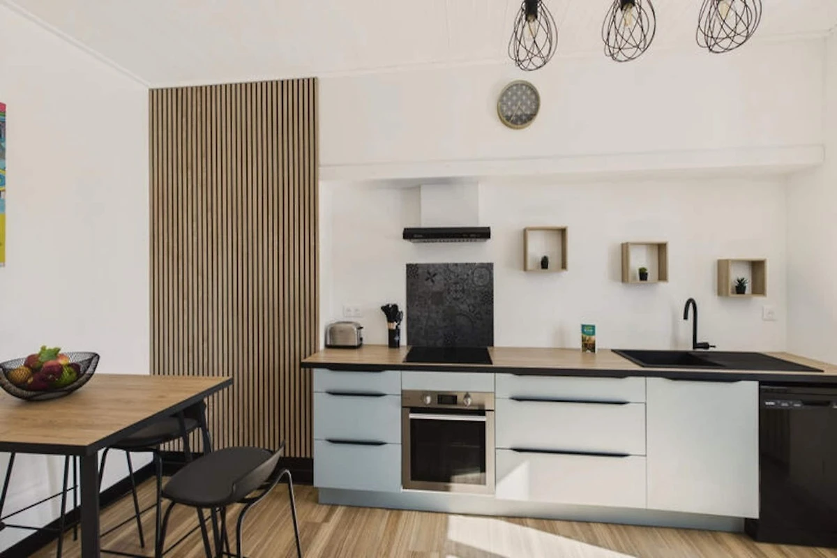 Nel cuore del pittoresco villaggio di pescatori di Tréffiagat, questa affascinante casa costiera vi invita a scoprire l'autentica bellezza della Bretagna. A pochi passi dalle rive sabbiose della spiaggia di Pors Treillen e dal vivace porto di Guilvinec, questa proprietà è situata in una posizione perfetta per chi cerca una fuga al mare ricca di fascino marittimo e avventure all'aria aperta. Immaginate di svegliarvi con il canto dei gabbiani, sorseggiare un caffè mattutino nel cortile privato e partire per una giornata di esplorazione lungo la costa frastagliata. Questa casa luminosa e accogliente è progettata con cura per un massimo di sei persone. Al piano terra, vi attende una moderna cucina completamente attrezzata, completa di frigorifero, congelatore, forno e lavastoviglie, oltre a una macchina per il caffè e un tostapane per colazioni tranquille. L'accogliente soggiorno e sala da pranzo dispone di un divano trasformabile in letto, un televisore e un tavolo da pranzo per sei, creando uno spazio perfetto per pasti in famiglia o serate rilassanti. Al piano superiore, due accoglienti camere da letto offrono rifugi rilassanti: una con letto matrimoniale e armadio, e l'altra, ideale per tre persone, con un letto matrimoniale e un letto singolo. Un bagno con vasca completa il piano superiore, mentre un WC separato si trova comodamente al piano terra. \n\nUscite nel cortile, dove un tavolo da giardino e un barbecue sono perfetti per cene all'aperto e lunghe serate estive sotto le stelle. La casa è in una posizione ideale per esplorare la regione, con il sentiero escursionistico GR34 che offre viste mozzafiato sulla costa e attrazioni vicine come la città di pescatori di Haliotika e l'affascinante cittadina di Pont-l'Abbé. Gli appassionati di surf, kitesurf e vela troveranno numerose opportunità lungo le spiagge vicine, mentre gli amanti della cucina potranno gustare pesce fresco nei ristoranti locali come \n