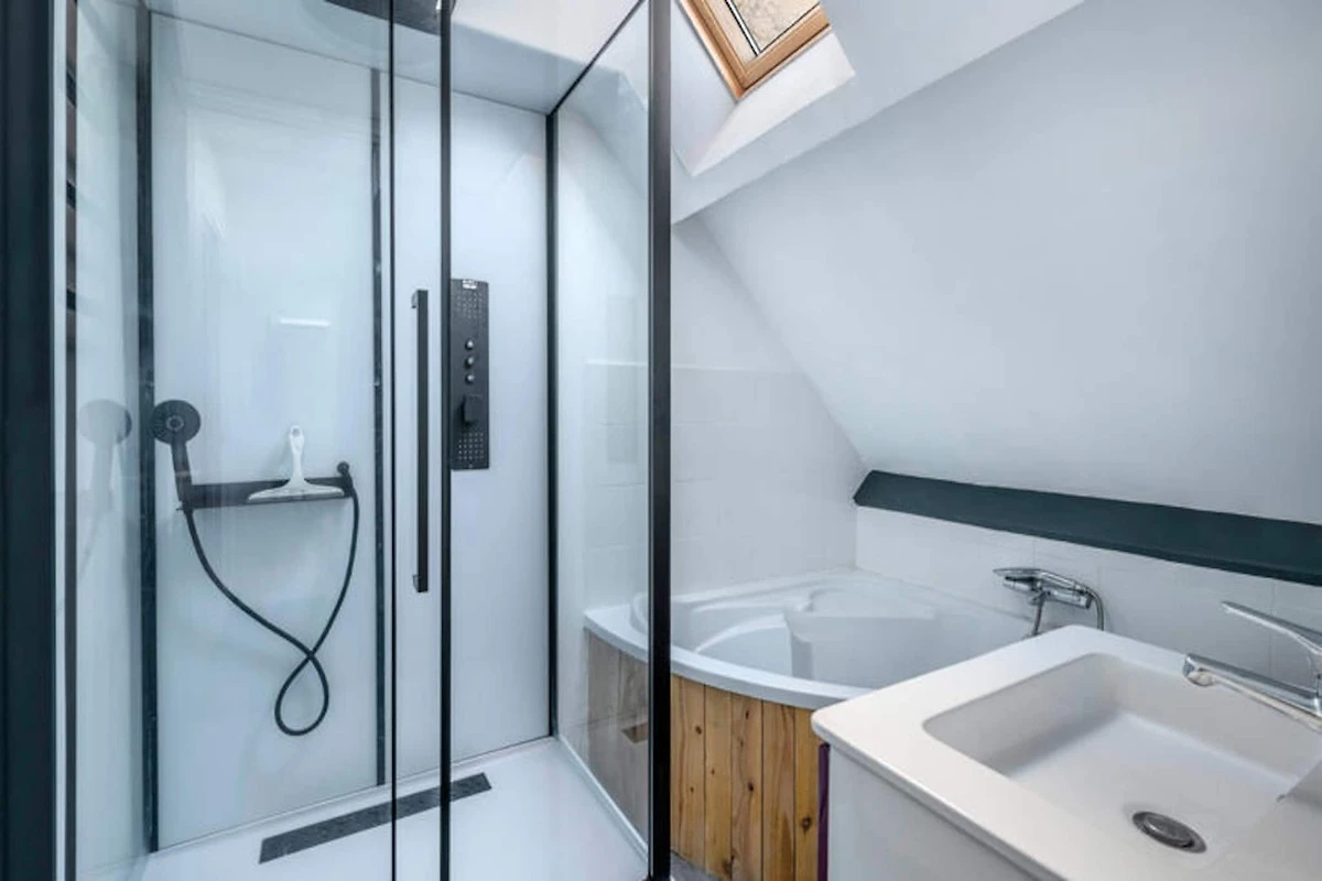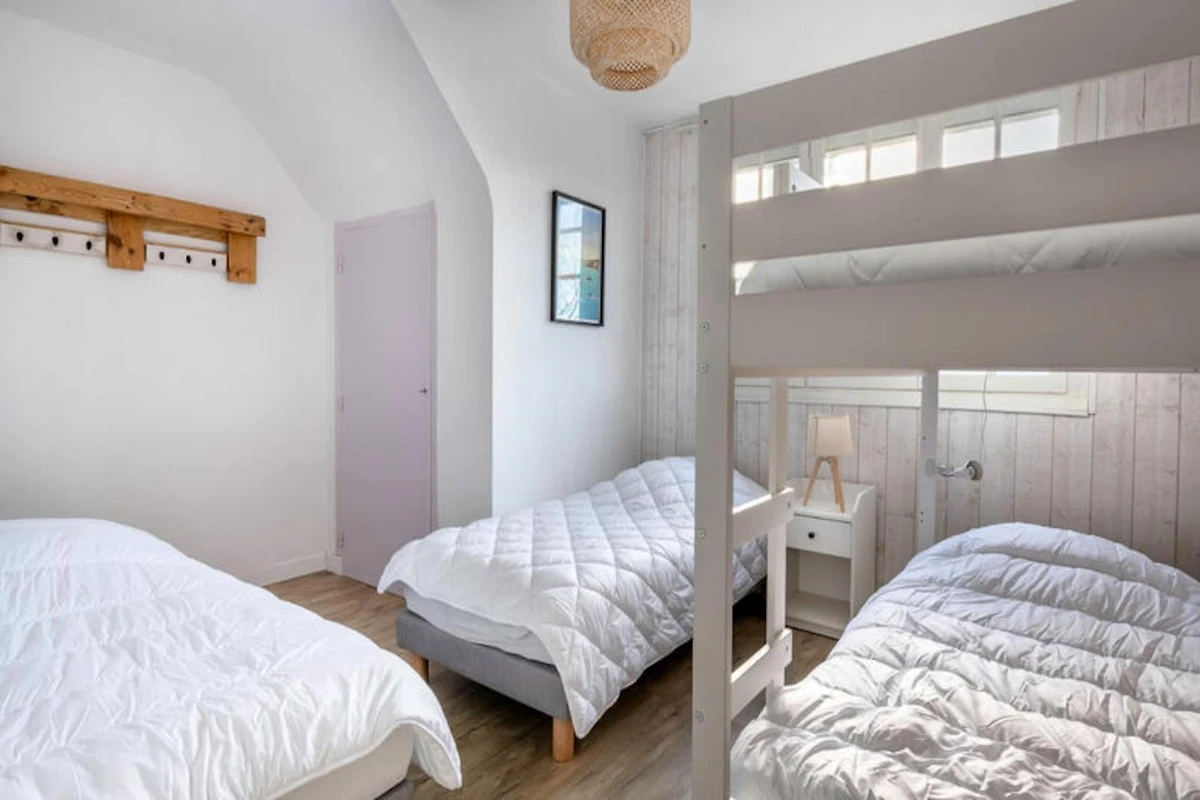 Vivi il fascino della Bretagna in questa casa dal design accattivante, perfetta per una vacanza indimenticabile con la famiglia o gli amici. Situata tra il tranquillo Golfo di Morbihan e il corroborante Oceano Atlantico, questa spaziosa dimora vi invita a esplorare sentieri costieri, a godervi spiagge sabbiose e a immergervi nello stile di vita rilassato bretone. Con negozi, panetterie e mercati locali a pochi passi di distanza, tutto ciò di cui avete bisogno è a portata di mano.