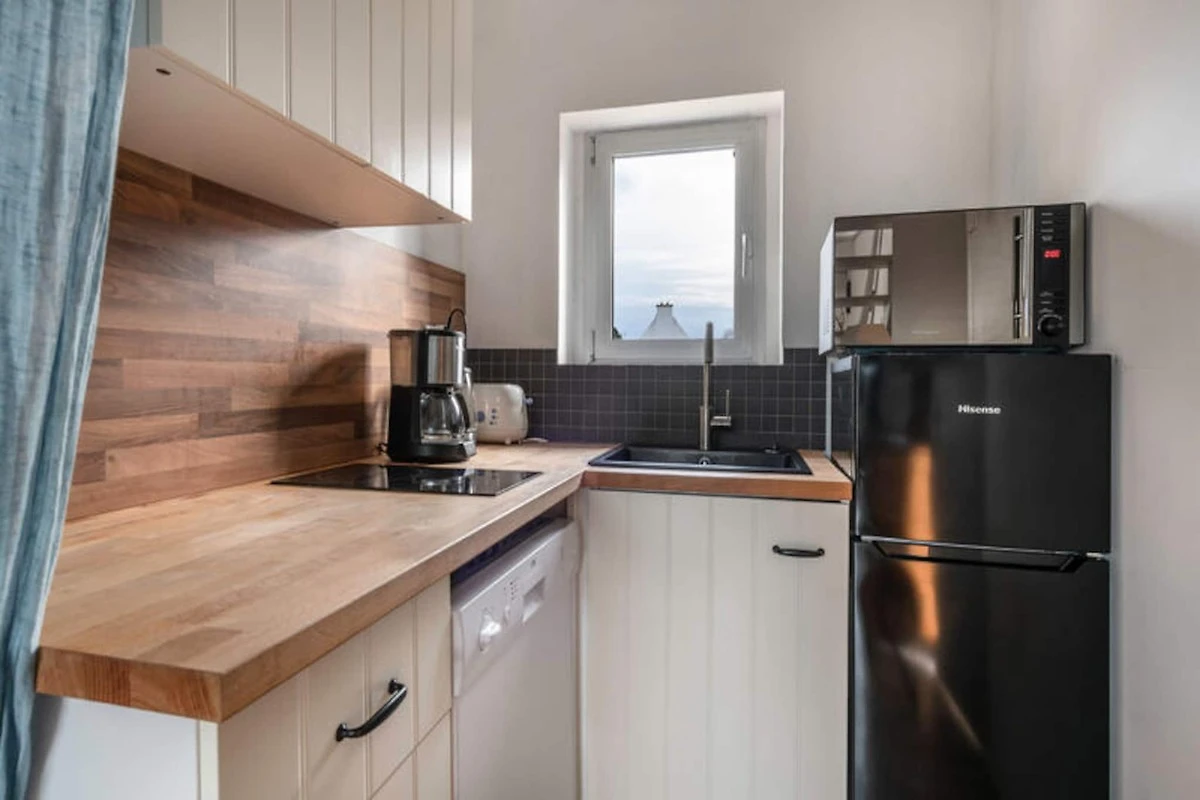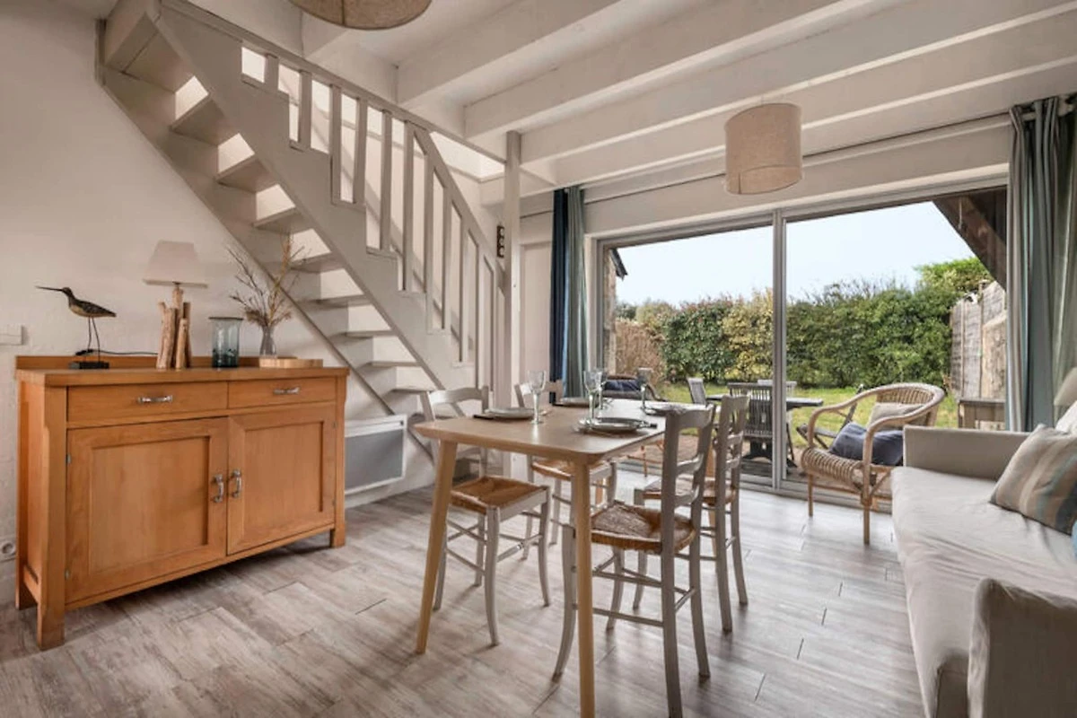 Nell'incantevole Golfo del Morbihan, dove il mare incontra i lussureggianti paesaggi della penisola di Rhuys, questa affascinante casa in pietra ad Arzon vi invita a rilassarvi e a riconnettervi con la natura. Immaginate mattine inondate dal profumo della fresca brezza marina, colazioni tranquille sulla terrazza privata e serate trascorse a grigliare sulla plancha mentre il sole tramonta sul tranquillo giardino. Questo idilliaco rifugio offre il perfetto equilibrio tra fascino costiero e comfort moderni, rendendolo un rifugio ideale per un massimo di cinque ospiti.