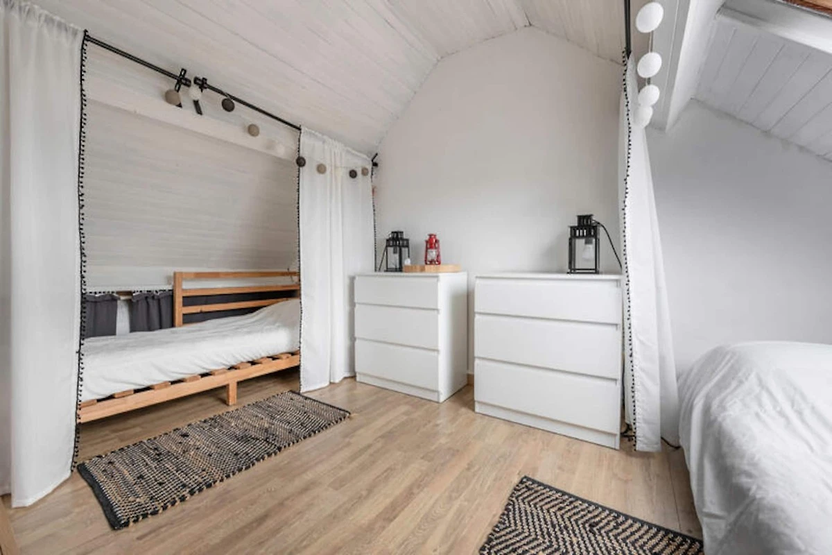 All'interno, la casa vanta due accoglienti camere da letto, tra cui un soppalco sopra il garage, accessibile tramite una ripida scala (non adatta ai bambini). La cucina a pianta aperta è completamente attrezzata con piano cottura in vetroceramica, frigorifero, forno a microonde multifunzione, congelatore, lavastoviglie e tutto il necessario per preparare deliziosi pasti. Ulteriori servizi includono lavatrice, televisione, radio, Wi-Fi e asciugacapelli, per garantire un soggiorno confortevole e senza intoppi. Un parcheggio privato all'interno della residenza aggiunge ulteriore comfort. Situata a soli 350 metri dalla spiaggia sabbiosa di Fogeo e a pochi passi dal supermercato locale, questa casa è in una posizione perfetta per esplorare la zona. Il vivace porto di Crouesty, con i suoi negozi e ristoranti, dista solo 1 km, mentre la storica città di Vannes è raggiungibile in auto in 28 km. Per chi arriva da lontano, l'aeroporto di Nantes dista 120 km. I sentieri panoramici per escursioni a piedi e in bicicletta della regione si snodano attraverso una campagna incontaminata, collegando pittoreschi villaggi e laghetti tranquilli, offrendo infinite opportunità di avventura e scoperta.