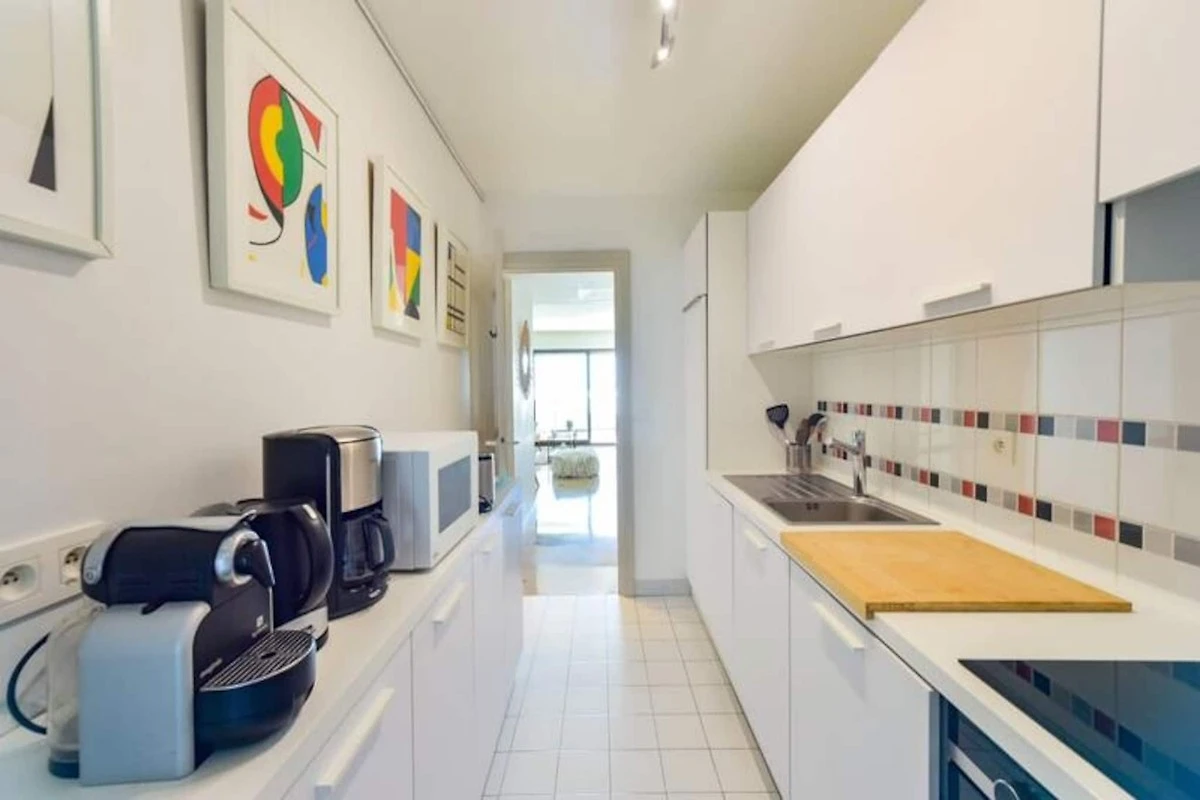Interni, l'appartamento è progettato con cura per offrire comfort e stile. Il luminoso soggiorno climatizzato dispone di un'accogliente zona pranzo per quattro persone, un morbido divano letto e una smart TV per l'intrattenimento. La cucina completamente attrezzata si apre su una terrazza ombreggiata, ideale per colazioni all'aperto. La tranquilla camera matrimoniale, completa di cabina armadio, si affaccia anch'essa sulla sua terrazza privata, offrendo un angolo di tranquillità per rilassarsi. Un moderno bagno con vasca e WC separato aggiunge ulteriore comfort, mentre le finestre con doppi vetri garantiscono pace e tranquillità durante tutto il soggiorno.