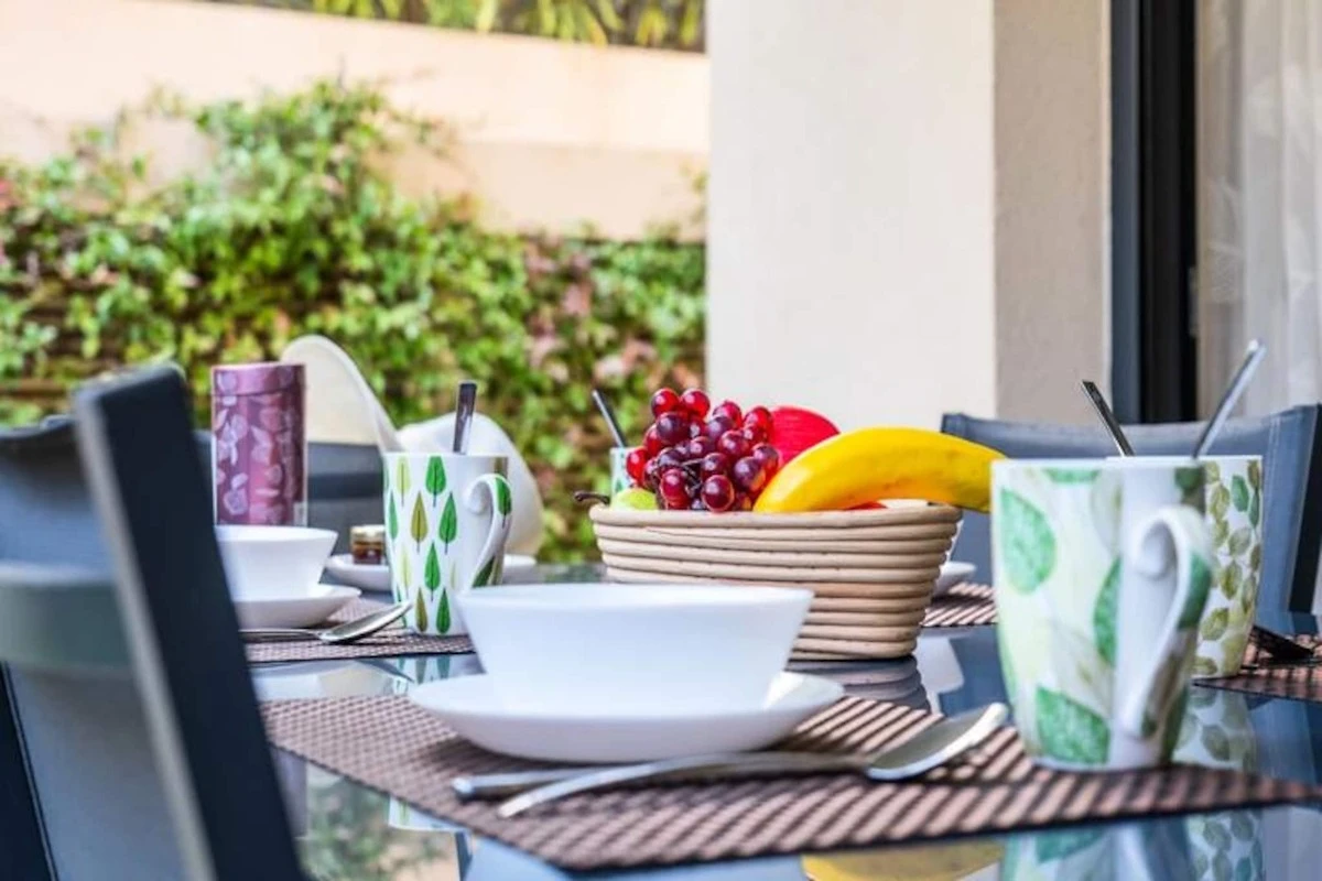 Oltre all'appartamento, il residence vanta una piscina, perfetta per rinfrescarsi dopo una giornata trascorsa a esplorare la Costa Azzurra. A cinque minuti a piedi troverete graziosi negozi locali, tra cui panetterie, una macelleria e una pescheria, oltre a comodi collegamenti con i mezzi pubblici. Una piacevole passeggiata di 20 minuti lungo la Croisette vi porterà all'iconico Palais des Festivals, alle boutique di lusso e al cuore pulsante di Cannes.