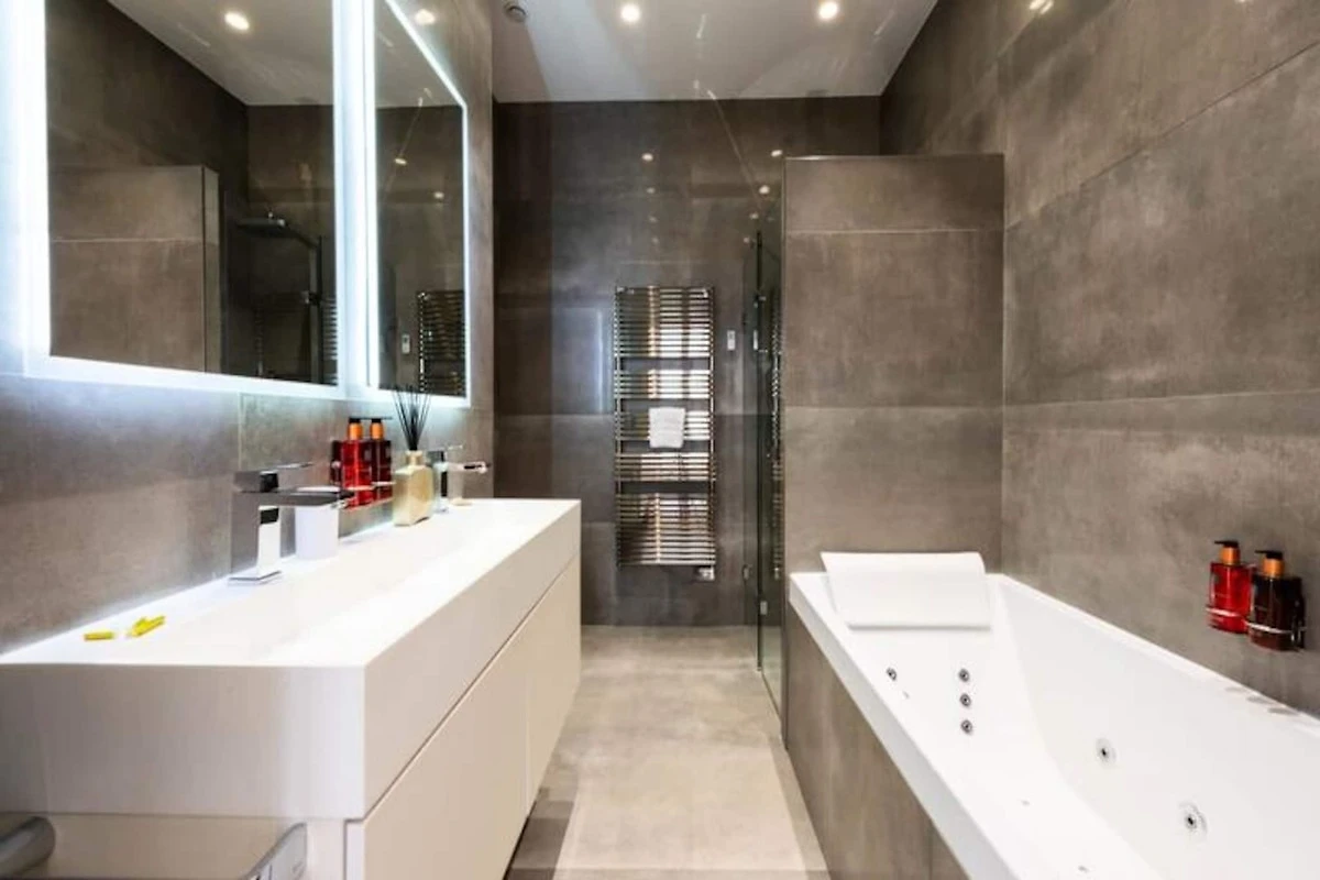 L'appartamento vanta quattro camere da letto con bagno privato, ognuna progettata con cura e dotata di doccia privata, una delle quali con vasca da bagno per il massimo relax. Al primo piano, troverai anche una lavanderia dotata di lavatrice e asciugatrice, per garantirti tutti i comfort di casa. Al piano superiore, la zona giorno e pranzo open space si fonde armoniosamente con una cucina completamente attrezzata, perfetta per intrattenere gli ospiti o godersi serate tranquille. Ampie vetrate si aprono su una splendida terrazza, dove potrai rilassarti con un bicchiere di vino mentre la città si anima. L'aria condizionata reversibile e il Wi-Fi ad alta velocità garantiscono un soggiorno confortevole ed elegante. Basta uscire e sarete a pochi passi dalle attrazioni più iconiche di Cannes. Fate shopping nelle boutique di lusso di Rue d'Antibes, rilassatevi sulle spiagge private lungo la Croisette o esplorate le affascinanti strade del Suquet. Il Palais des Festivals, il Mercato Forville e i ristoranti gourmet sono tutti raggiungibili a piedi, offrendo infinite opportunità per immergersi nella vivace cultura di Cannes. Per una giornata di tranquillità, fate un breve giro in barca alle Isole di Lerino e scoprite la loro bellezza naturale.