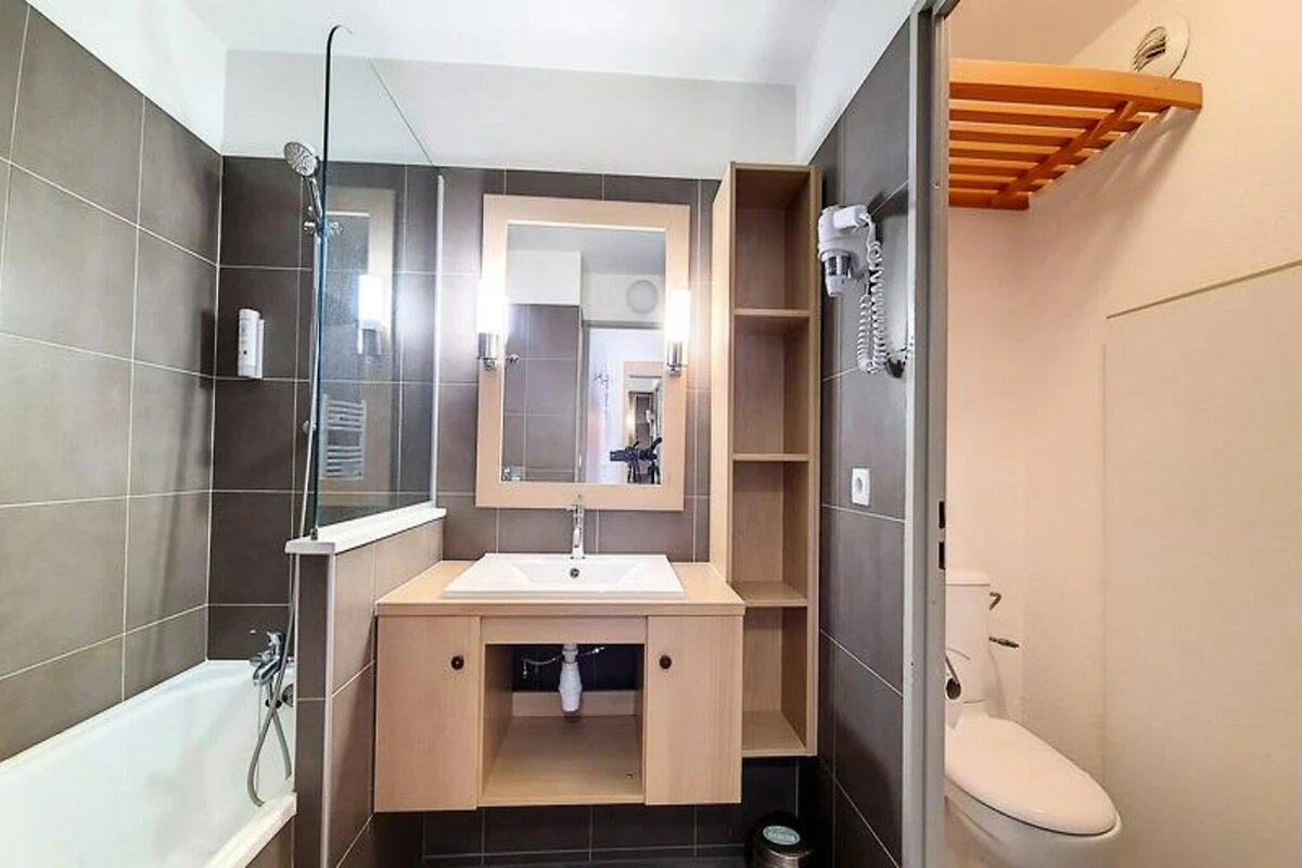 Nel cuore dell'iconica Val d'Isère, questo grazioso monolocale offre un rifugio invitante per coppie o piccoli gruppi in cerca di una perfetta vacanza alpina. Grazie al suo balcone esposto a sud, potrete godervi l'aria frizzante di montagna e la vista serena sulle cime circostanti. Il residence è situato in posizione ideale a pochi passi dal vivace centro città, dove negozi, ristoranti e locali di intrattenimento creano un'atmosfera vivace tutto l'anno. Che siate qui per gli sport invernali o per le avventure estive, questa posizione vi pone al centro di tutto. Il monolocale, situato al primo piano del residence Pierre & Vacances Les Chalets de Solaise, è progettato con cura per massimizzare il comfort e la praticità. Può ospitare fino a tre persone e dispone di un accogliente soggiorno con un letto singolo e un letto matrimoniale estraibile, perfetto per rilassarsi dopo una giornata di esplorazione. La cucina è completamente attrezzata con piano cottura, lavastoviglie e forno a microonde, per preparare i pasti con facilità. Un bagno moderno completa lo spazio, garantendo un soggiorno senza pensieri. Con lenzuola e asciugamani forniti, non dovrete far altro che arrivare e rilassarvi.\n\nVal d'Isère è rinomata per il suo sci di livello mondiale e, grazie al bus navetta gratuito, vi troverete a sole due fermate dalle piste e dalla scuola di sci. Oltre agli sport invernali, la zona offre una vasta gamma di attività, dall'escursionismo e dalla mountain bike in estate alla degustazione della cucina savoiarda nei ristoranti vicini. Il residence offre anche tariffe agevolate sugli skipass e servizi opzionali come parcheggio e pulizia, rendendo il vostro soggiorno ancora più comodo.\n\nChe stiate inseguendo la neve fresca sulle piste o esplorando gli spettacolari sentieri alpini, questo monolocale è la vostra porta d'accesso a momenti indimenticabili in Val d'Isère. Prenotate ora e immergetevi nel fascino e nella bellezza delle Alpi francesi.