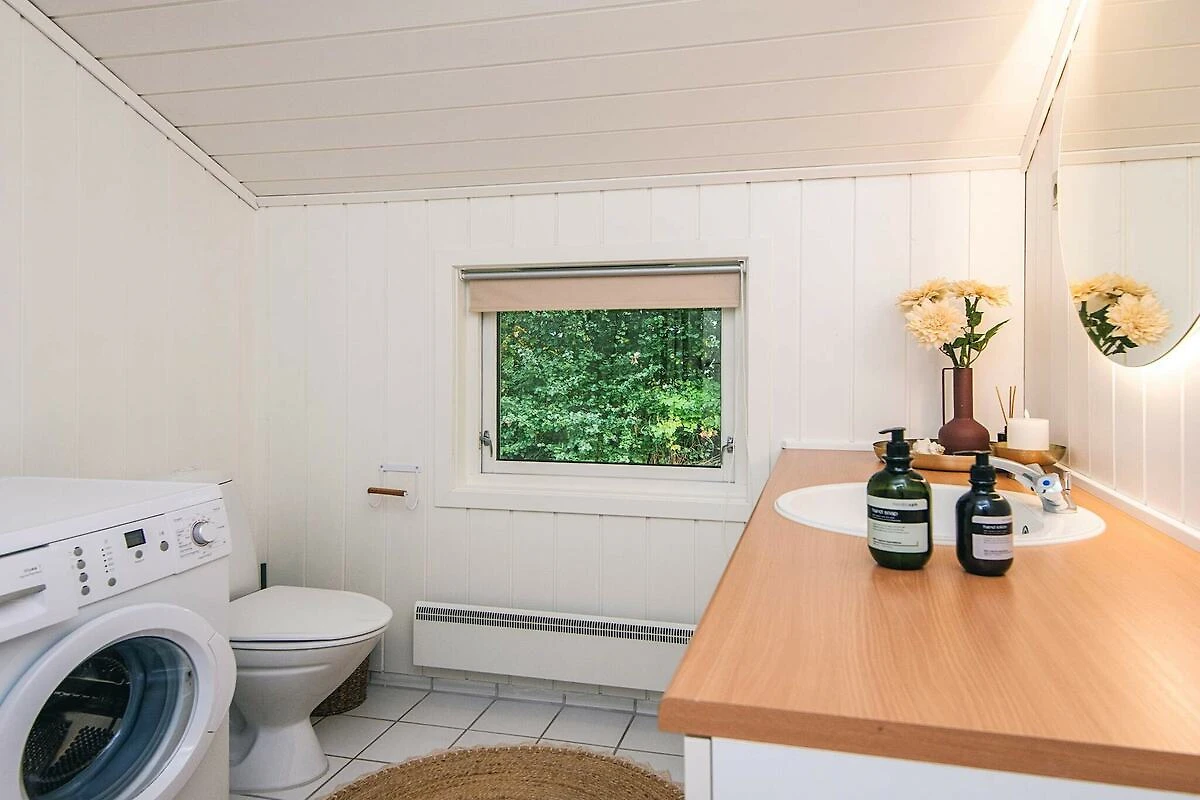 , Cucina separata(mobile cucina(elettrico), caffettiera, forno a microonde, lavastoviglie), Soggiorno/camera da letto(TV(canali televisivi tedeschi, canali TV danesi, canali TV norvegesi, canali TV svedesi)), Camera da letto(letto matrimoniale), Camera da letto(letto matrimoniale), Camera da letto(letto singolo), Bagno(veranda, lavabo, doccia, WC, lavatrice), riscaldamento(elettrico), terrazza, giardino, mobili da giardino, lettini prendisole, termopompa aria-aria