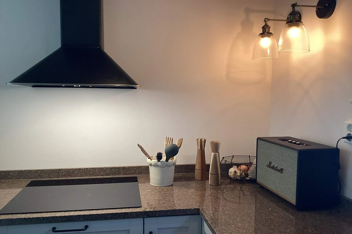 , Cucina separata(mobile cucina(elettrico), caffettiera, forno a microonde, lavastoviglie, frigo con congelatore, acqua dal pozzo), Soggiorno/camera da letto, Camera da letto(letto matrimoniale), Camera da letto(letto matrimoniale), Bagno(lavabo, doccia, WC), riscaldamento(elettrico), parcheggio, termopompa aria-aria