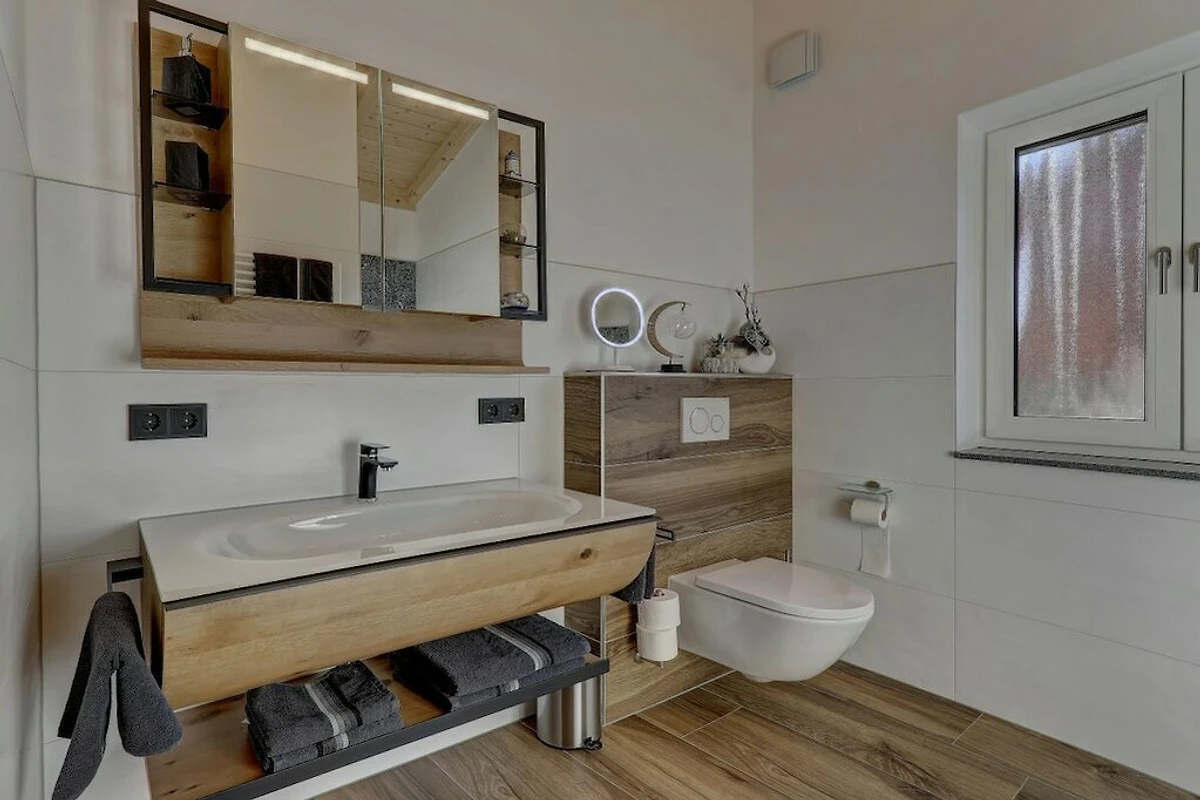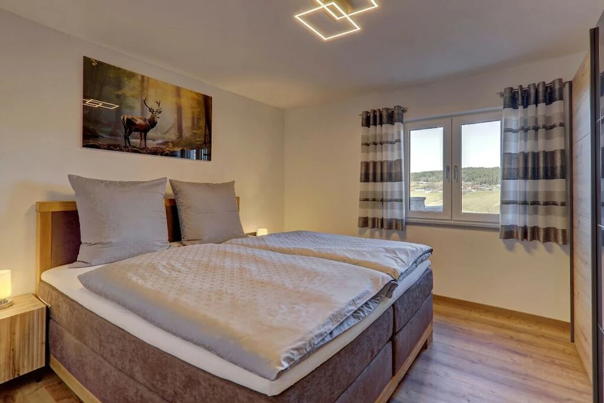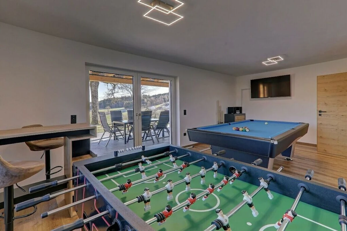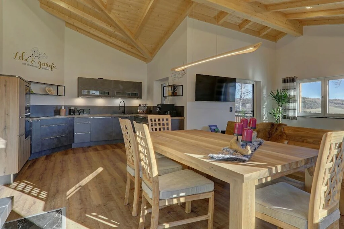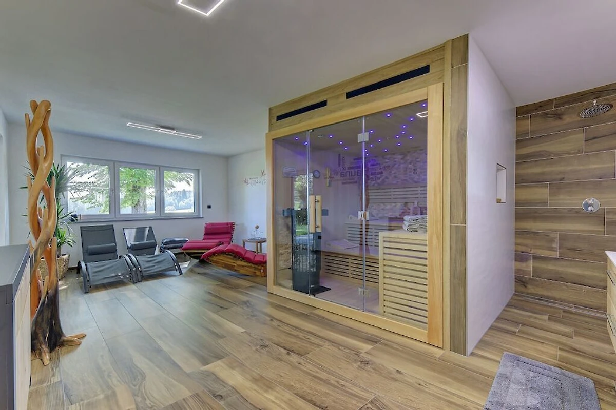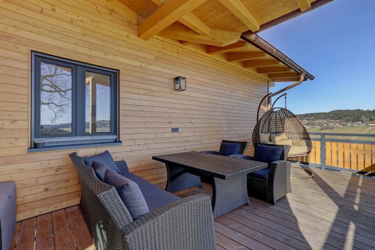 • La casa di campagna Rachelblick è una moderna e lussuosa casa vacanze nella Foresta Bavarese, che può ospitare fino a 6 persone. Disposta su due piani, offre un luogo meraviglioso per rilassarsi e fuggire dalla frenesia della vita quotidiana. Per un tocco di benessere durante la vostra vacanza, godetevi la sauna finlandese privata con sala relax e la vasca idromassaggio sulla terrazza, che vanta una splendida vista sui prati e sui boschi della Foresta Bavarese.