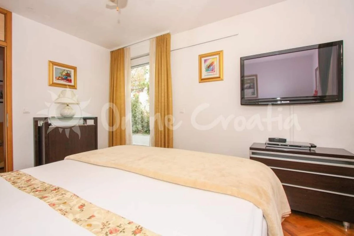 All'esterno, il giardino privato diventa la vostra oasi mediterranea. Una terrazza coperta con zona pranzo invita a pranzi rilassanti all'ombra, mentre l'area barbecue crea l'atmosfera ideale per lunghe serate estive circondati da una vegetazione lussureggiante e piante profumate. Che siate di ritorno da una giornata in spiaggia, da una passeggiata per le vie storiche di Spalato o dall'esplorazione del Parco Forestale di Marjan, questo appartamento offre un rifugio accogliente e tranquillo dove potrete rilassarvi e godervi il fascino della costa croata.