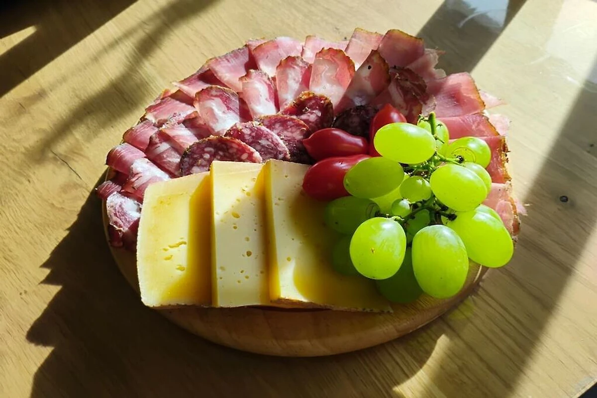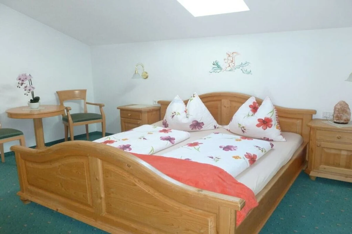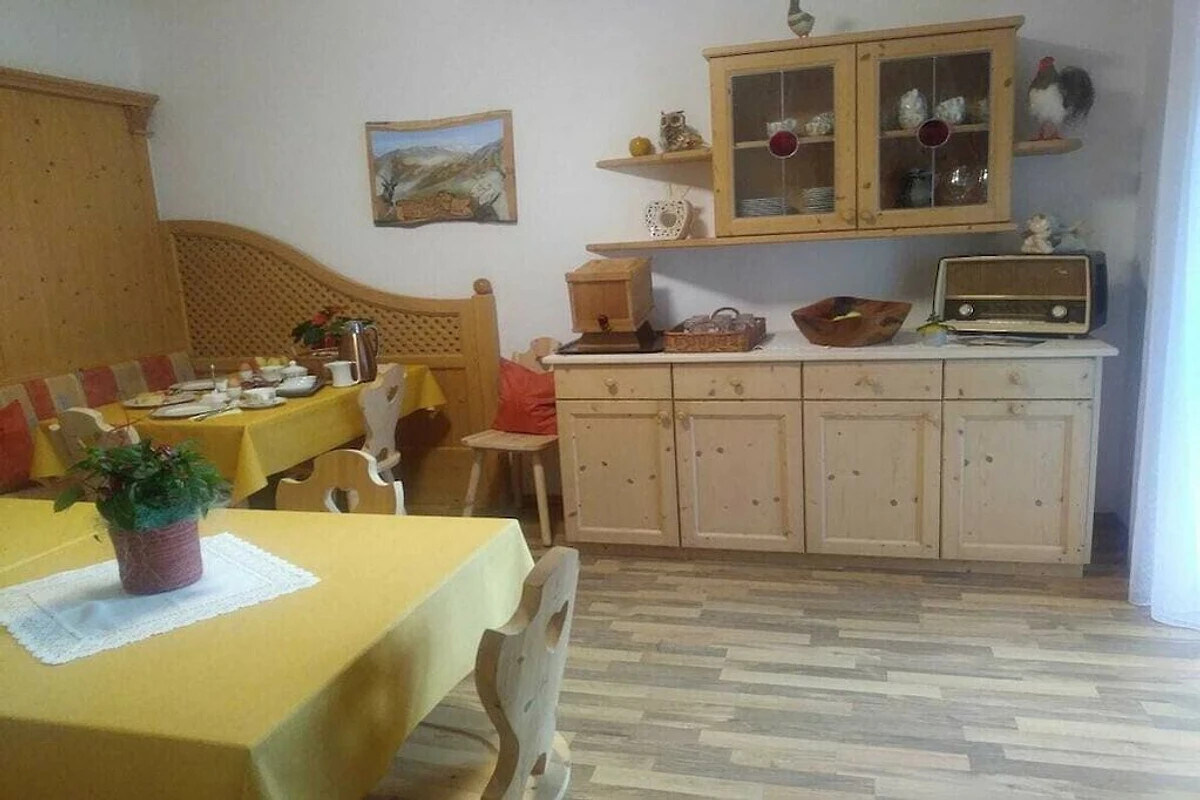 1 soggiorno con angolo cottura ben attrezzato, comodo divano, TV satellitare, accogliente stufa a legna e panca, accesso (con zanzariera) a un ampio balcone con sole serale e vista fantastica, arredato con mobili da balcone. Camera da letto 1 con letto matrimoniale (190x200 cm) e accesso a internet.