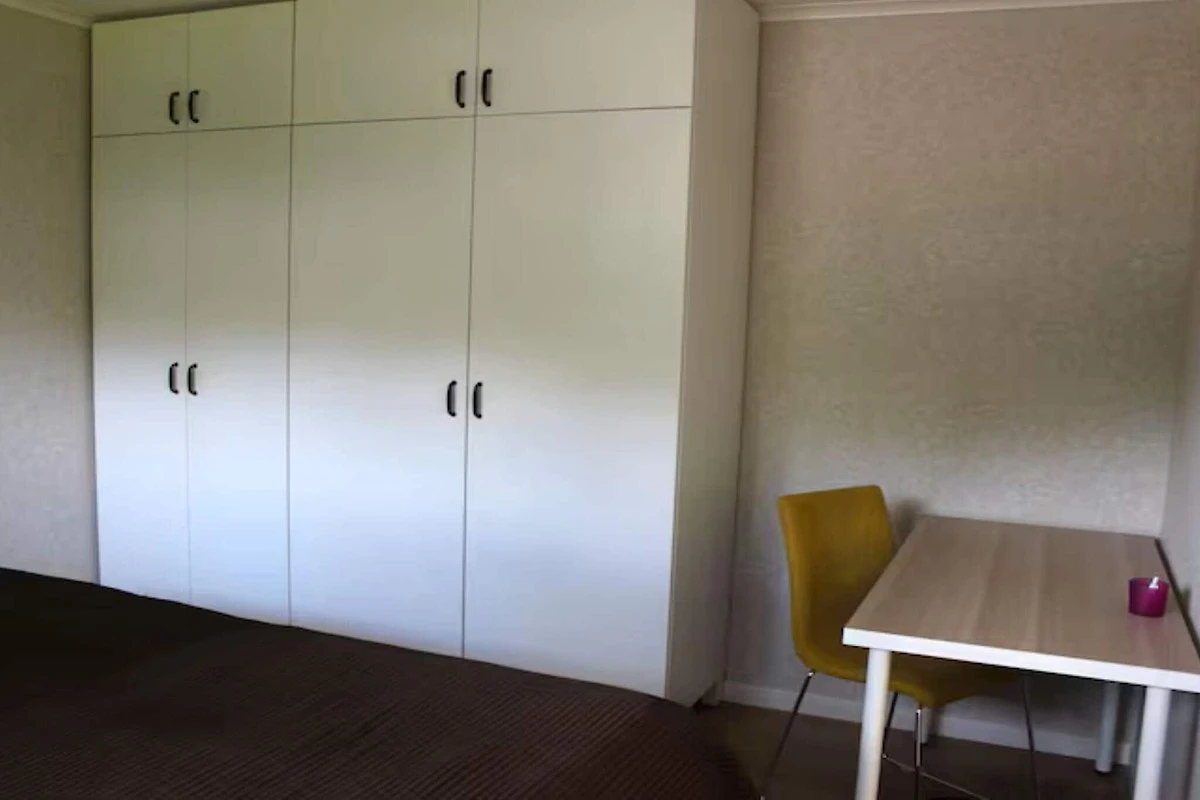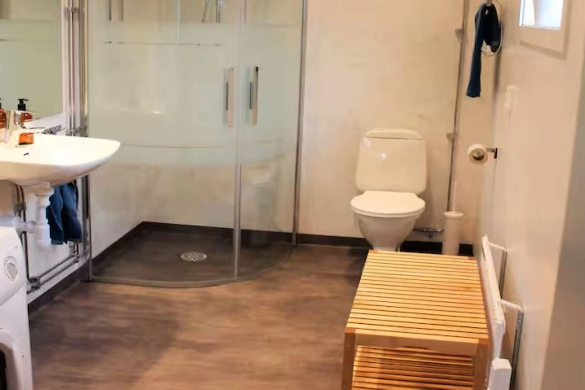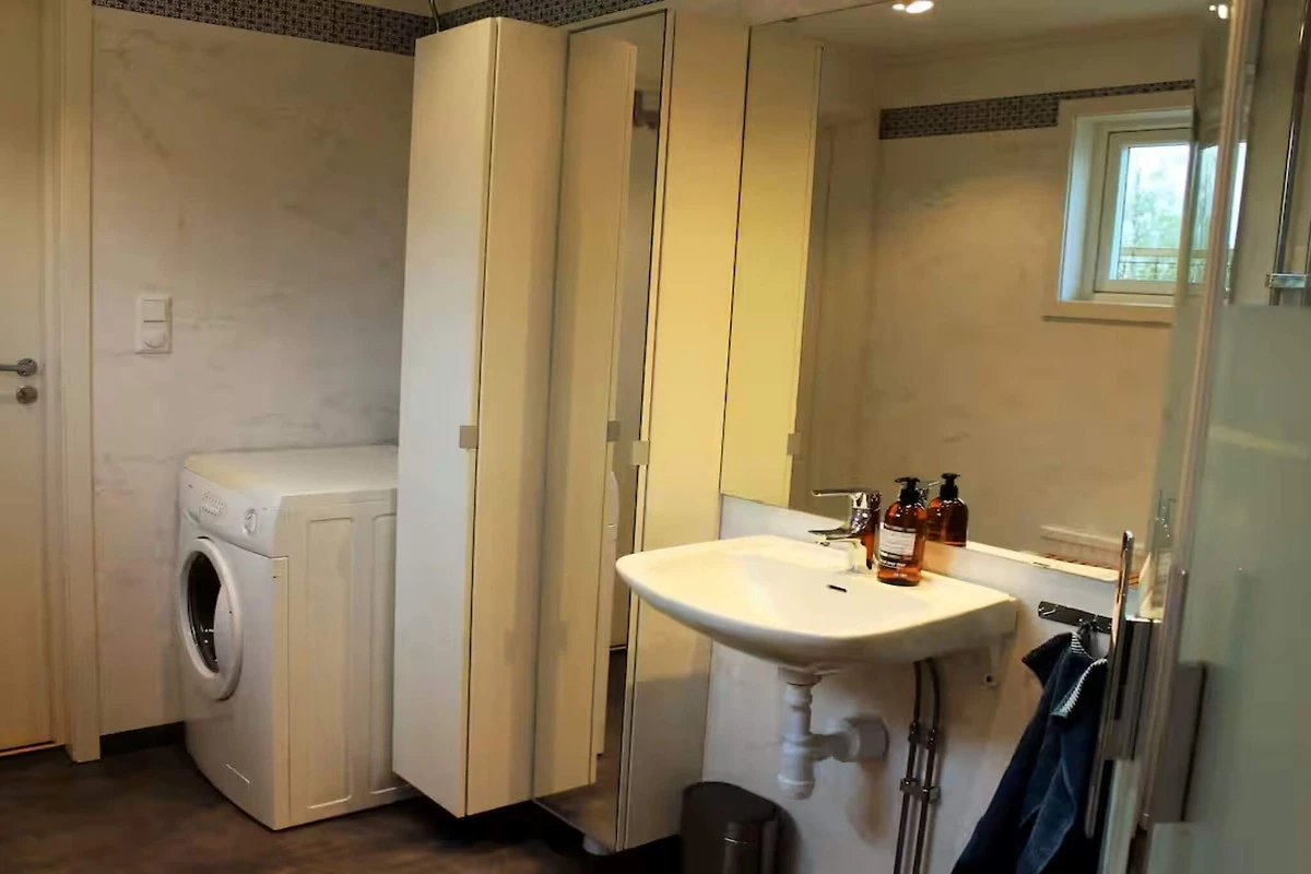 , Cucina separata(mobile cucina(elettrico), forno a microonde, lavastoviglie, frigo con congelatore, acqua dal pozzo), Soggiorno/camera da letto(brandina doppia), Camera da letto(letto matrimoniale), Bagno(lavabo, doccia, WC, lavatrice), balcone, riscaldamento(elettrico), mobili da giardino, parcheggio, termopompa aria-aria