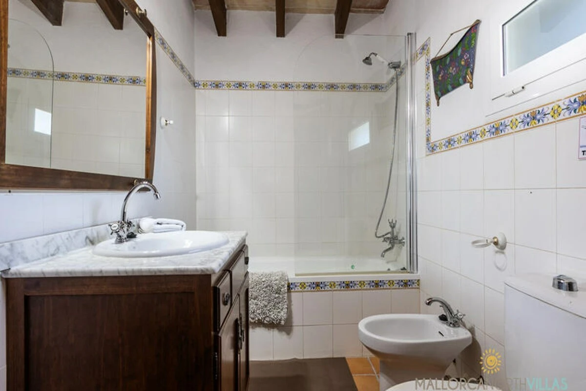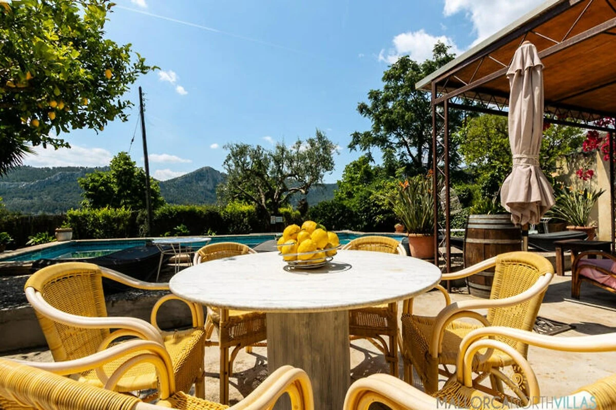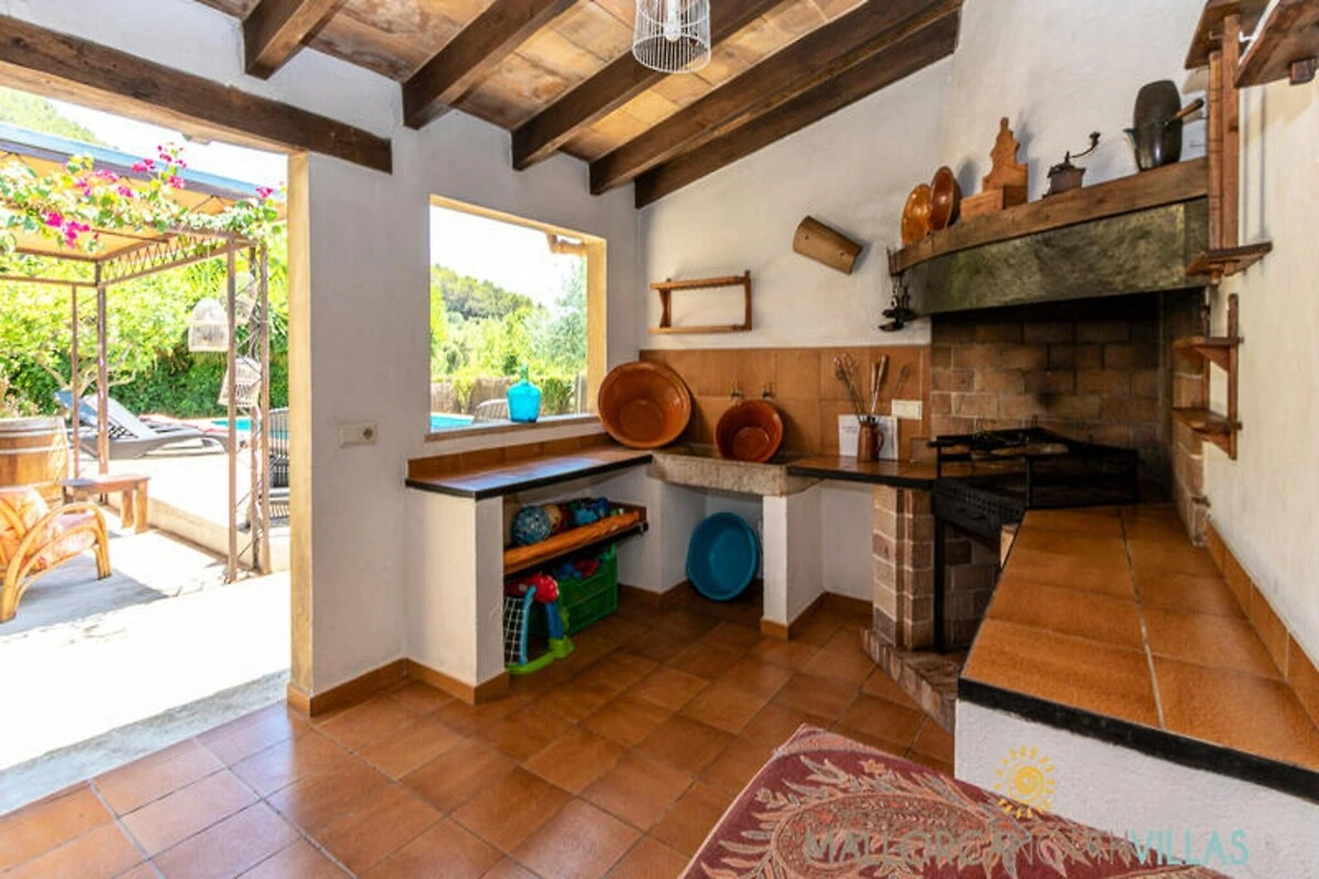 Immersa nella serena bellezza della campagna di Maiorca, questa incantevole villa familiare offre un rifugio perfetto a solo 1 km dal centro storico di Pollensa. Immagina di passeggiare per strade acciottolate, esplorare vivaci mercati e assaporare prelibatezze locali in caratteristici ristoranti, il tutto raggiungibile a piedi. Con viste mozzafiato sulla Serra de Tramuntana e sull'iconico Puig de Maria, questa proprietà è la porta d'accesso all'autentica essenza di Maiorca. Progettata per ospitare fino a sei persone, la villa dispone di tre accoglienti camere da letto e due bagni distribuiti su due livelli. Il piano terra vi accoglie con un luminoso soggiorno con camino, una zona pranzo e una cucina completamente attrezzata, mentre il piano superiore ospita le tranquille camere da letto, una con letto matrimoniale e due con letti singoli, ognuna con una vista mozzafiato sul paesaggio circostante. Il fascino rustico incontra il comfort moderno con travi in legno originali, pavimenti in cotto e pareti in pietra, il tutto completato da aria condizionata, Wi-Fi gratuito e un camino per le serate più fresche. Uscite per scoprire un'oasi privata. La terrazza arredata vi invita a rilassarvi sotto il sole del Mediterraneo, mentre l'area barbecue del giardino è perfetta per cenare all'aperto. Il punto forte è senza dubbio la piscina privata, che offre un rifugio rinfrescante nelle giornate di sole di Maiorca. Che vi rilassiate a bordo piscina o che gustiate un pasto all'aperto, la tranquillità di questo ambiente è impareggiabile. Ideale per famiglie o gruppi di amici, questa villa unisce privacy, comfort e vicinanza ai tesori culturali e naturali di Pollensa. Prenotate subito il vostro soggiorno e immergetevi nel fascino senza tempo di Maiorca.