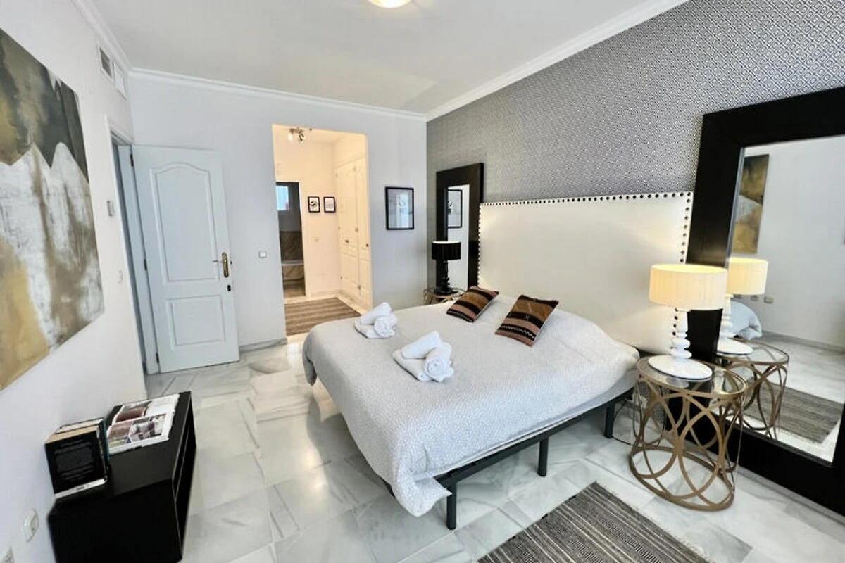 Internamente, l'appartamento dispone di due eleganti camere da letto, ciascuna dotata di spaziose cabine armadio, e due ampi bagni moderni. La zona giorno e pranzo open space è inondata di luce naturale, creando un'atmosfera accogliente per famiglie o coppie. La cucina completamente attrezzata vi invita a preparare i pasti con facilità, mentre i comfort del residence arricchiscono il vostro soggiorno. Fate un tuffo rinfrescante in una delle due splendide piscine, passeggiate nei lussureggianti giardini tropicali o godetevi una partita amichevole sul campo da paddle tennis. Per le famiglie, l'area giochi per bambini assicura momenti di divertimento per i più piccoli. Situato in una tranquilla ma ricercatissima zona residenziale, il Bahia Real si trova a pochi minuti dal vivace centro di Marbella e dal rinomato centro commerciale La Cañada. La spiaggia, a soli 800 metri di distanza, è una delle più incontaminate e pittoresche della Costa del Sol, perfetta per prendere il sole, nuotare o passeggiare tranquillamente lungo la riva.