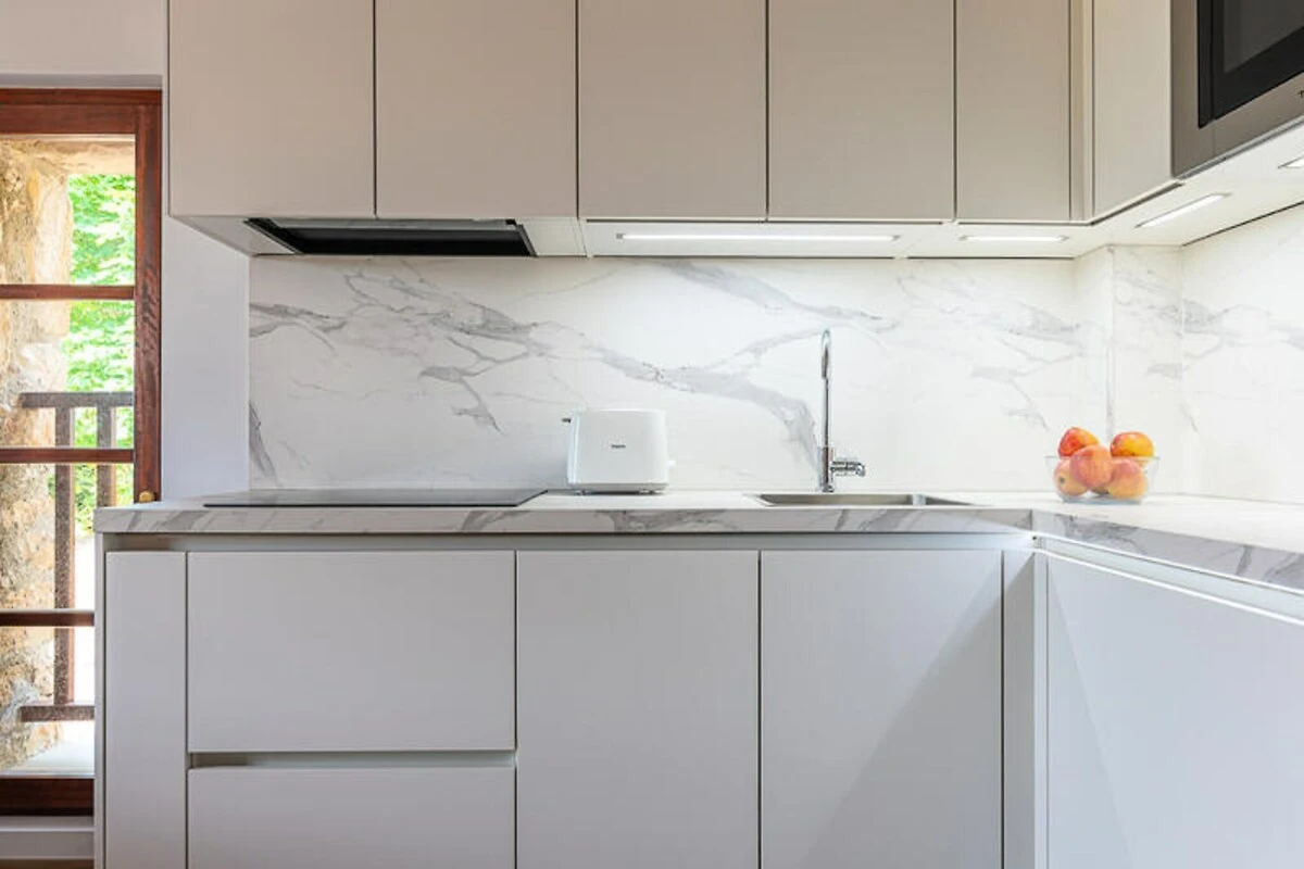 Interni, l'appartamento è progettato con cura per massimizzare il comfort e lo stile. Il piano terra dispone di un'ampia zona soggiorno-pranzo con cucina a pianta aperta, una camera matrimoniale e un bagno moderno con cabina doccia. Al piano superiore, troverete un soggiorno a pianta aperta, un'altra camera matrimoniale e un secondo bagno, garantendo ampio spazio per il relax. Ampie finestre inondano gli interni di luce naturale, mentre i giardini esterni condivisi offrono un ambiente tranquillo dove rilassarsi con una vista mozzafiato sul mare e sulle montagne circostanti.