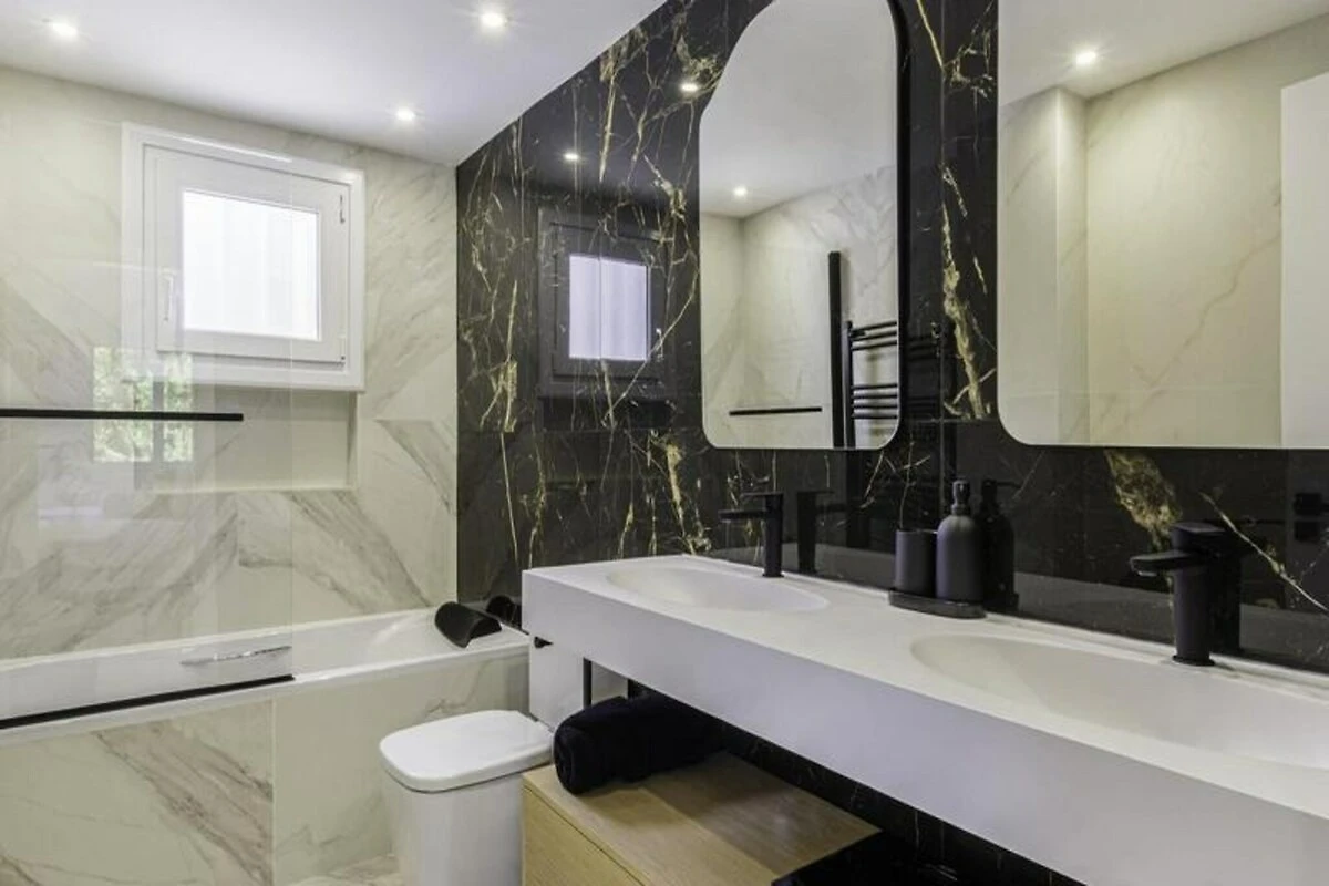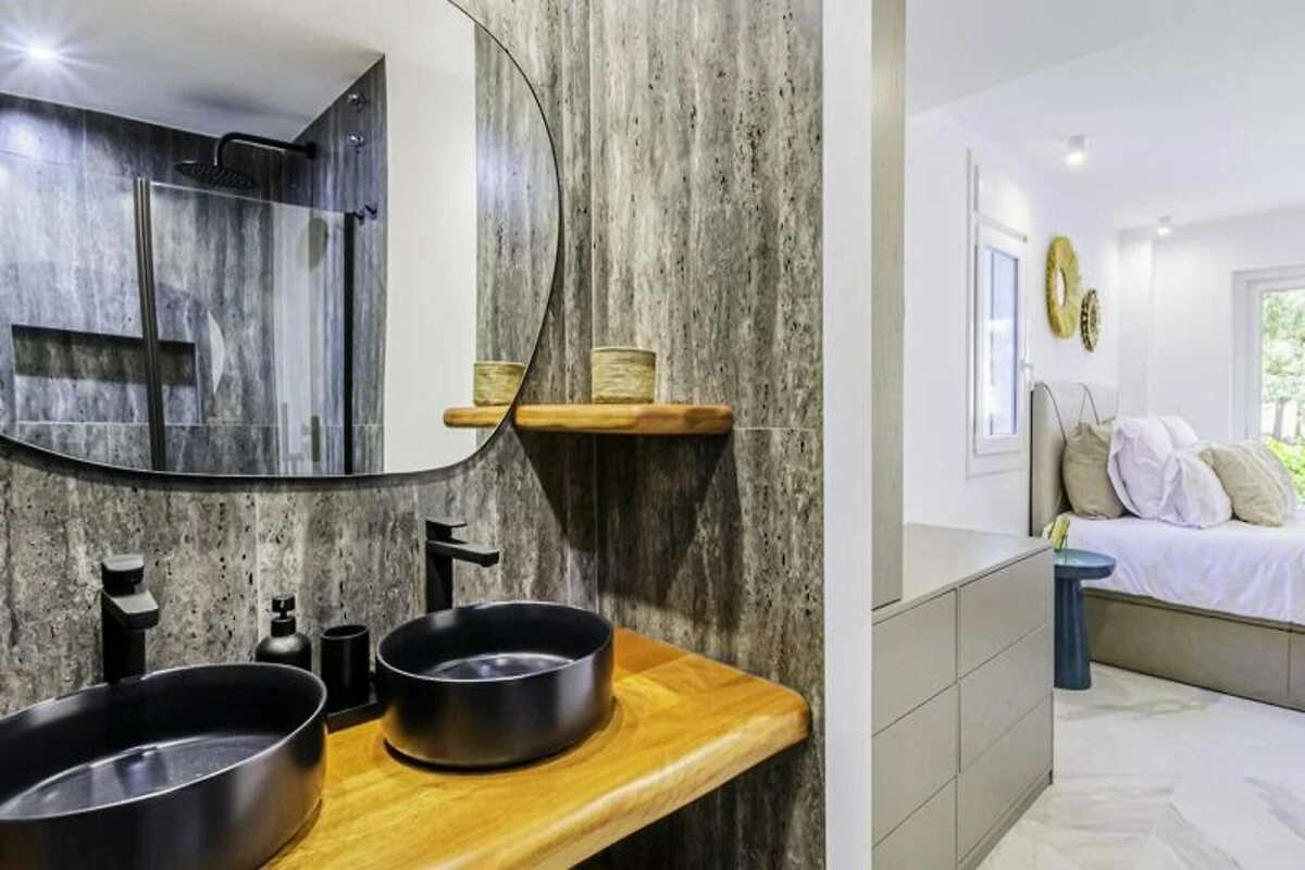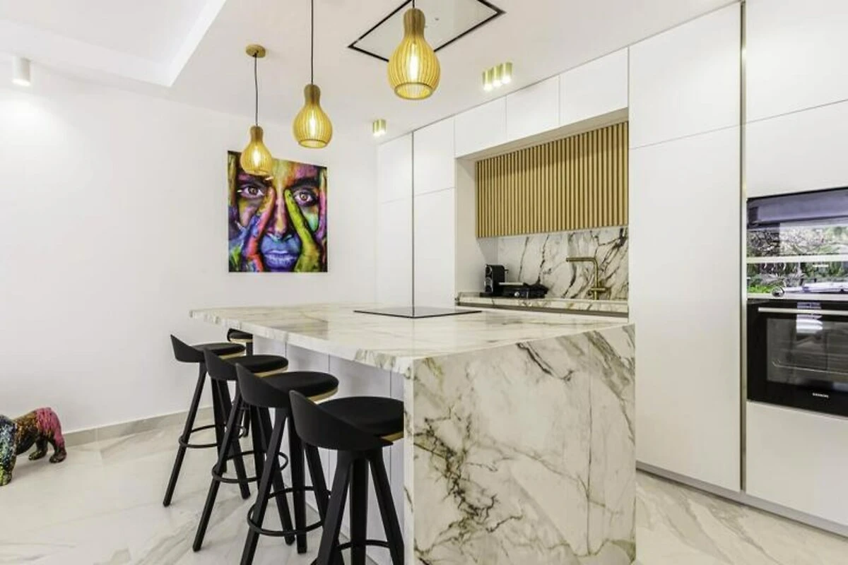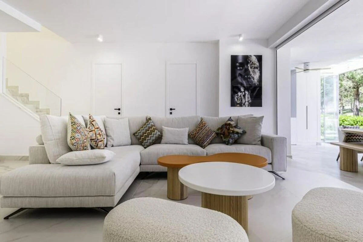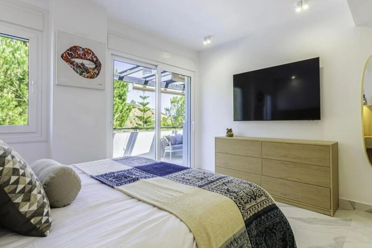 Nella tranquilla enclave di Santa Clara Golf, questa lussuosa casa a schiera con 4 camere da letto offre un perfetto connubio tra eleganza moderna e fascino mediterraneo. Situata in uno dei quartieri più prestigiosi di Marbella, la proprietà è immersa nel verde e vanta viste mozzafiato sul mare e sulle montagne. A pochi minuti dal vivace centro di Marbella e dalle spiagge dorate della Costa del Sol, questa residenza è un'oasi di tranquillità e raffinatezza. \n\nEntrate per scoprire un'ampia zona giorno e pranzo open space, impreziosita da mobili di design e una grande Smart TV, perfetta per rilassarsi dopo una giornata di esplorazione. La cucina di alta gamma, completa di isola centrale ed elettrodomestici di alta gamma, invita alla creatività culinaria. Il piano terra ospita anche una camera da letto con bagno privato e accesso diretto alla terrazza, mentre il primo piano ospita una lussuosa suite padronale con terrazza privata, oltre ad altre due camere da letto, ciascuna progettata con cura per il comfort e lo stile. \n\nOltre agli interni, la proprietà offre l'accesso a una piscina esterna in comune, circondata da rigogliosi giardini, che creano un ambiente idilliaco per il relax. Con sicurezza 24 ore su 24, Wi-Fi ad alta velocità e comfort moderni come aria condizionata centralizzata e tapparelle elettriche, ogni dettaglio è stato curato per garantire un soggiorno impeccabile. Che siate appassionati di golf, una famiglia in cerca di un rifugio tranquillo o un viaggiatore desideroso di esplorare la vivace cultura di Marbella, questa proprietà vi metterà al centro di tutto. Dall'esclusivo campo da golf di Santa Clara alle vicine spiagge, ai ristoranti e all'iconico Puerto Banús, ogni momento qui promette lusso e ricordi indimenticabili. Prenotate il vostro soggiorno oggi stesso e immergetevi nell'essenza della Costa del Sol.