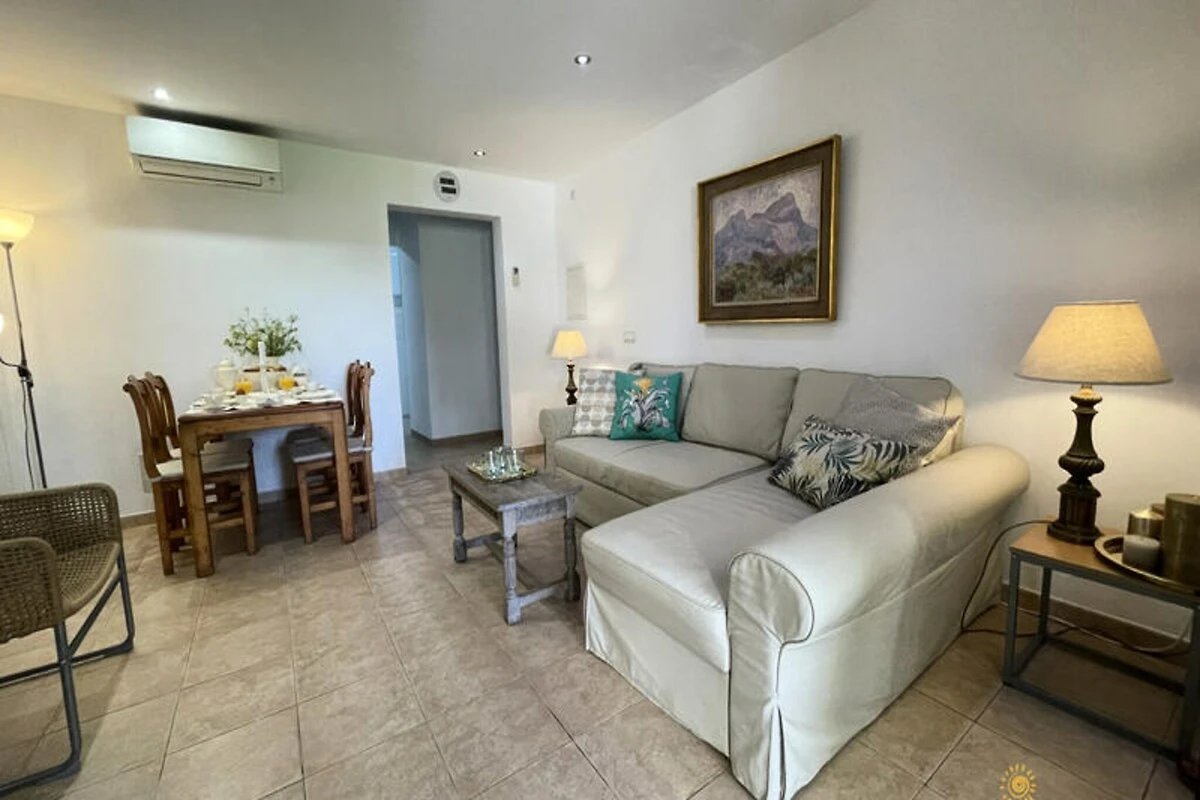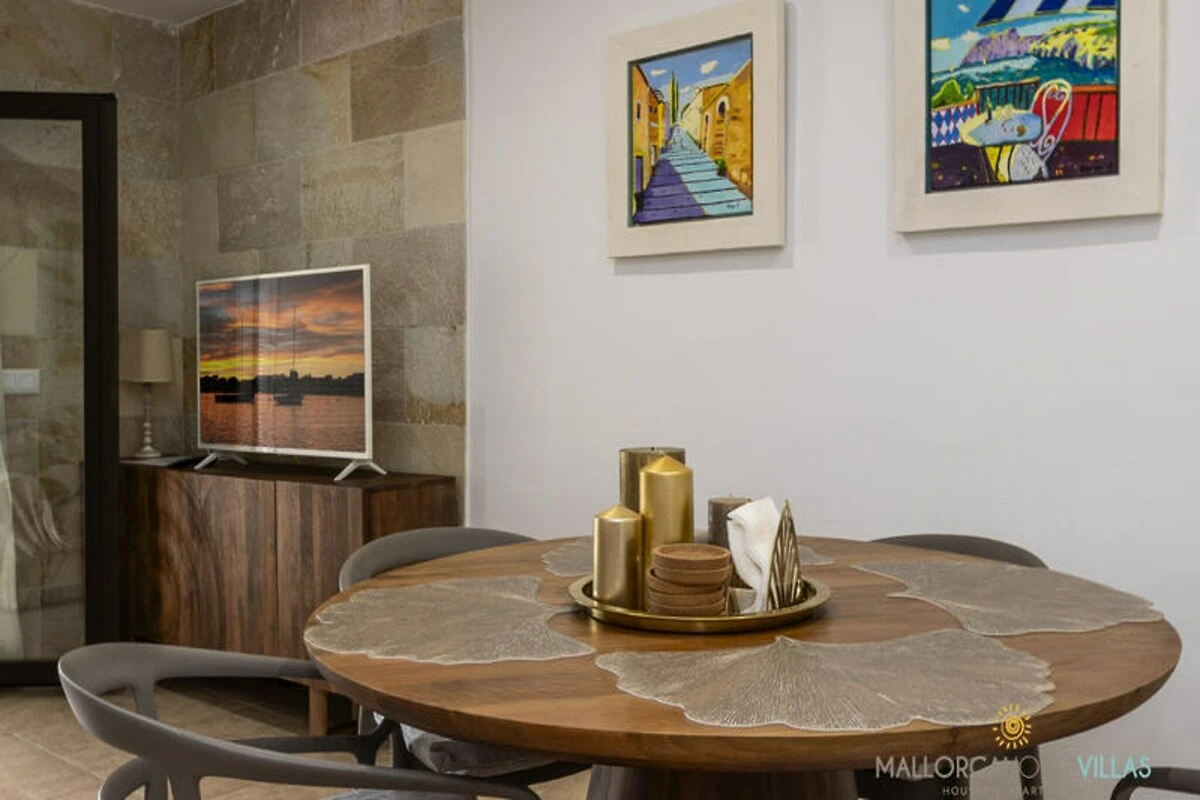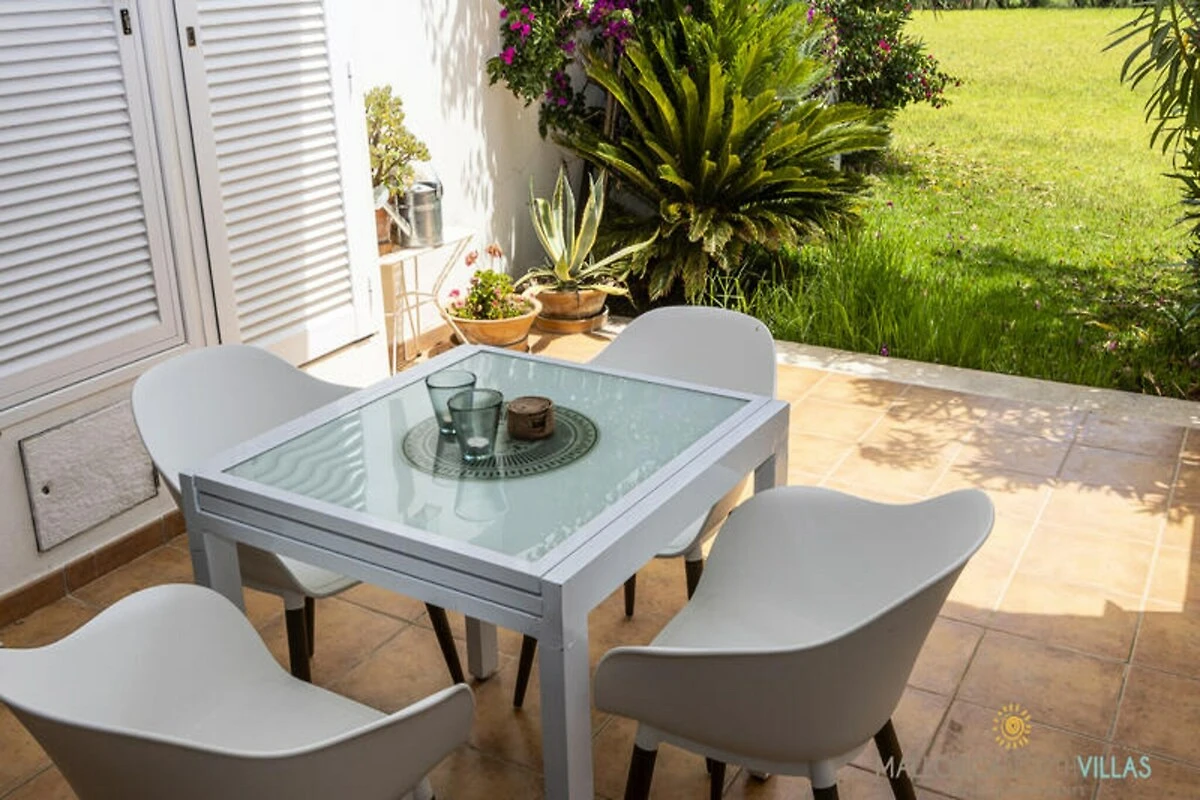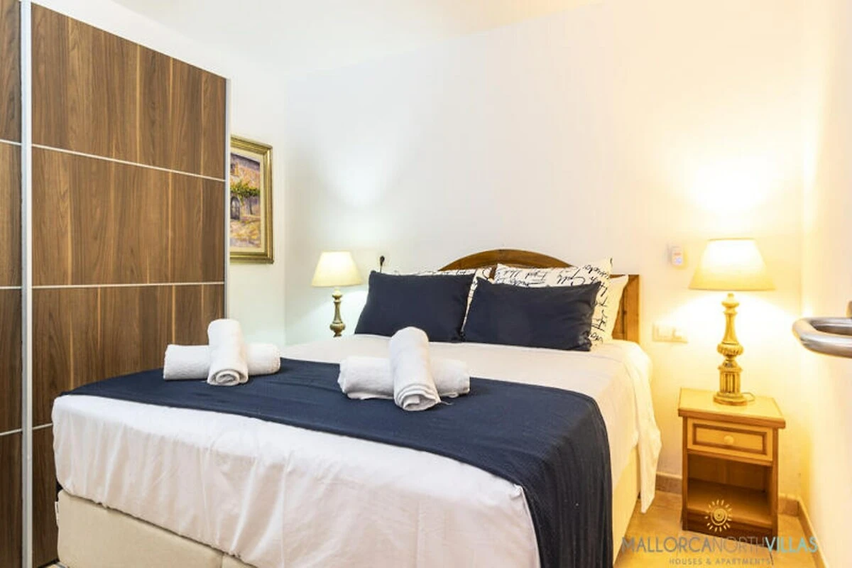 Immergetevi in un mondo di fascino mediterraneo con questo luminoso e accogliente appartamento al piano terra nell'esclusiva zona Club del Sol di Port de Pollensa, Maiorca. Circondata da rigogliosi giardini e a pochi passi dal mare scintillante, questa proprietà offre il perfetto mix di tranquillità e comodità per la vostra prossima vacanza. Immaginate di svegliarvi con la dolce brezza marina e di gustare il caffè del mattino sulla vostra terrazza privata mentre il sole sorge sul giardino. È qui che il relax incontra la spensieratezza della vita costiera. \n\nAll'interno, l'appartamento vanta due comode camere matrimoniali e un bagno moderno con un'elegante doccia. L'ampia zona giorno e pranzo è inondata di luce naturale, grazie alle ampie vetrate che si aprono sulla terrazza. Una cucina separata completamente attrezzata semplifica la preparazione dei pasti, sia che vogliate assaporare le prelibatezze locali di Maiorca o godervi una cena tranquilla a casa. Con aria condizionata in tutte le stanze, Wi-Fi gratuito e TV satellitare, ogni dettaglio è stato progettato per il vostro comfort e la vostra comodità. La piscina condominiale è un rifugio rinfrescante, perfetto per rilassarsi dopo una giornata di esplorazione. Situato in una tranquilla zona residenziale, questo appartamento è ideale sia per il relax che per l'avventura. La fermata dell'autobus è a soli 100 metri e il vivace centro di Puerto de Pollensa è a solo 1 km dalla porta di casa. Per gli amanti della spiaggia, le distese sabbiose più lunghe della zona distano solo 2 km, offrendo infinite opportunità per prendere il sole, nuotare e praticare sport acquatici. Con tutto così vicino, non avrai nemmeno bisogno dell'auto per vivere il meglio di questa incantevole destinazione. Che tu stia cercando una fuga romantica o una fuga in famiglia, questo appartamento è la tua porta d'accesso alla magia di Maiorca. Prenota ora e lascia che la bellezza di Puerto de Pollensa crei ricordi che dureranno una vita.
