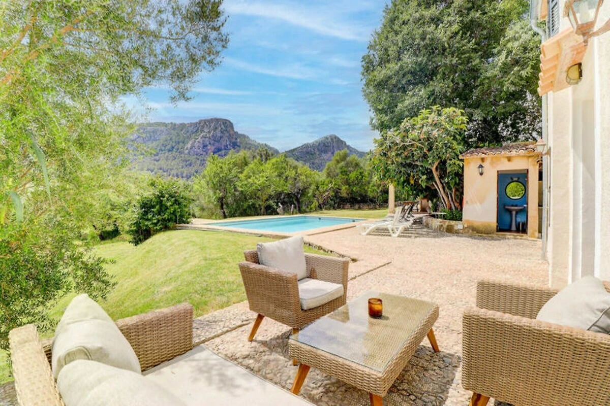 Nella tranquilla Valle de Colonya, vicino a Pollença, questa splendida villa vi invita a sperimentare il perfetto connubio tra fascino maiorchino e lusso moderno. Circondata da una vegetazione lussureggiante e da viste mozzafiato sulle montagne, questa proprietà offre un rifugio idilliaco per chi cerca tranquillità ed esclusività. Che vi stiate crogiolando al sole del Mediterraneo o godendovi l'atmosfera tranquilla dei giardini, ogni momento qui sembra un angolo di paradiso. Progettata per ospitare fino a 14 persone, la villa vanta sette ampie camere da letto e cinque bagni, rendendola ideale per famiglie numerose o gruppi di amici. Il piano terra ospita una camera matrimoniale con bagno privato, due camere singole, un bagno in comune con doccia e un luminoso soggiorno con accesso alla terrazza. La cucina completamente attrezzata e la zona pranzo sono perfette per preparare e condividere i pasti insieme. Al piano superiore si trovano la camera da letto principale con bagno privato, due camere matrimoniali, una camera doppia e un bagno di famiglia con doccia e vasca. Una dependance separata offre ulteriore privacy con una camera matrimoniale e un bagno privato. \n\nGli spazi esterni sono un vero punto forte, con una piscina privata circondata da lettini prendisole, un'area barbecue coperta con zona pranzo all'aperto e diverse terrazze per il relax. Gli ampi giardini offrono la cornice perfetta per attività in famiglia o momenti di tranquillità immersi nella natura. \n\nSituata a soli cinque minuti dal centro storico di Pollença, avrete facile accesso al suo affascinante mercato settimanale, ai caffè e ai ristoranti tradizionali. Le spiagge di Puerto Pollença e Cala San Vicente sono a soli 10-15 minuti di distanza, offrendo acque incontaminate ed emozionanti sport acquatici. Gli appassionati di golf apprezzeranno il vicino campo da golf di Pollença. Per una vacanza all'insegna della privacy, del comfort e dell'indimenticabile bellezza mediterranea, questa villa è la destinazione ideale.