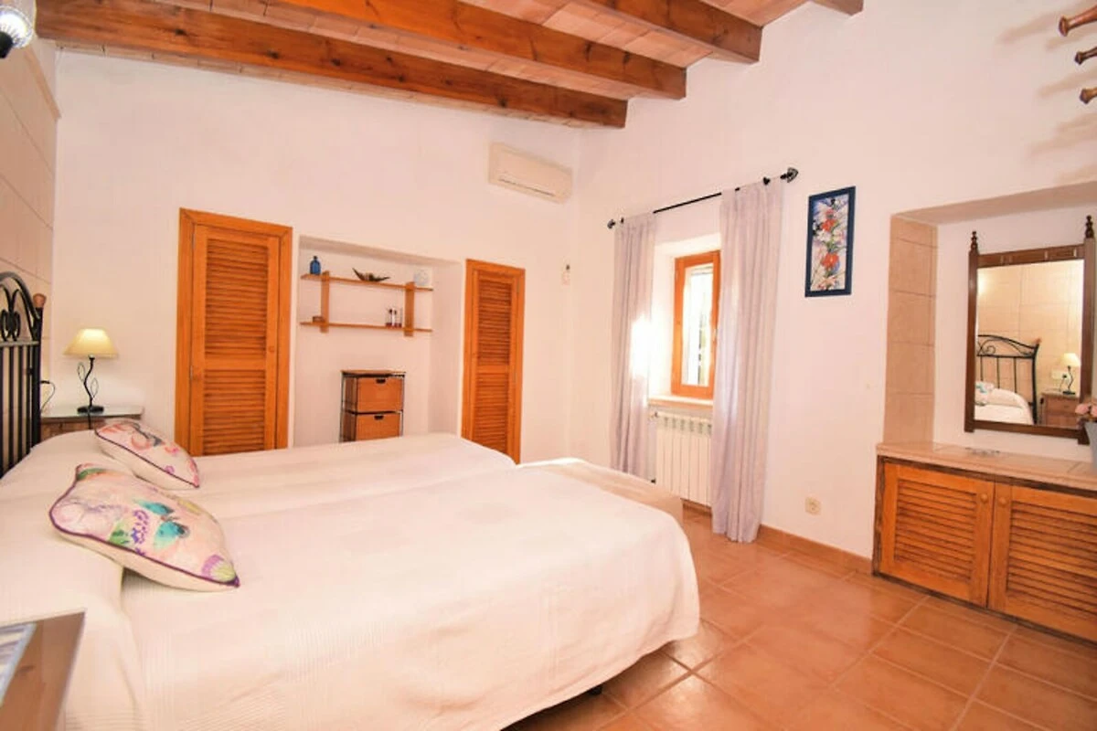 Immersa nella tranquilla campagna tra Campanet e Pollensa, questa incantevole villa maiorchina vi invita a sperimentare la perfetta armonia tra tradizione e comfort moderno. Circondata da paesaggi lussureggianti e dal fascino mediterraneo, questa spaziosa dimora offre un rifugio idilliaco per famiglie e amici in cerca di tranquillità e contatto con la natura. Immaginate di svegliarvi con il dolce canto degli uccelli, di gustare un caffè mattutino a bordo piscina e di immergervi nella bellezza dello splendore naturale dell'isola.