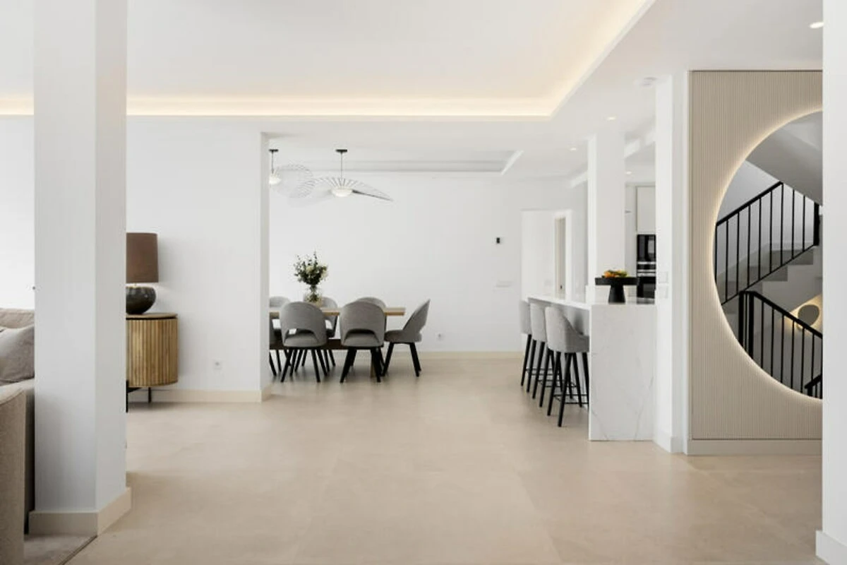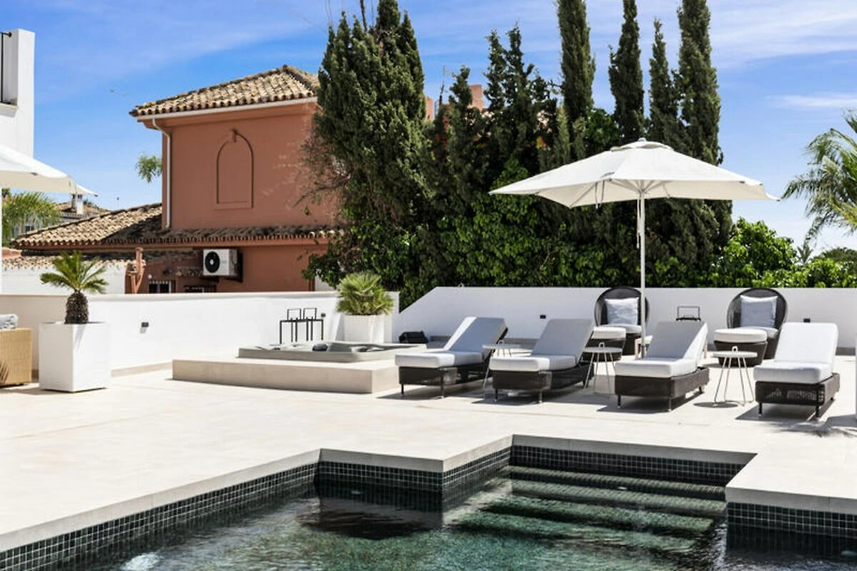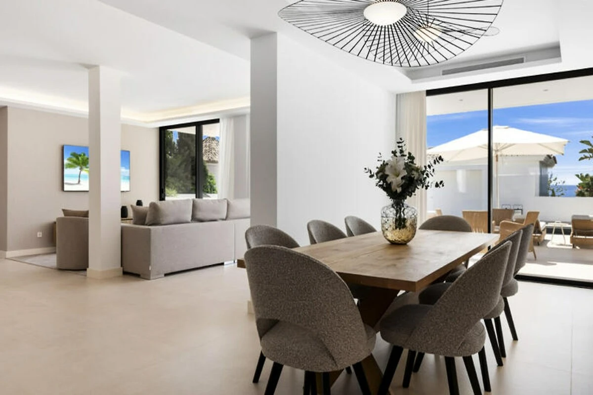 Nel tranquillo quartiere di El Rosario, a Marbella, questa lussuosa villa sulla spiaggia offre un perfetto connubio tra eleganza moderna e fascino mediterraneo. Recentemente ristrutturata, la villa vanta un design d'interni raffinato che irradia raffinatezza, rendendola un rifugio ideale per chi cerca tranquillità e stile. A soli 5 minuti a piedi da una delle spiagge più belle della Costa del Sol e vicino ai rinomati Nikki Beach Club e La Cabane, questa proprietà vi colloca nel cuore delle esperienze costiere più ambite di Marbella.
