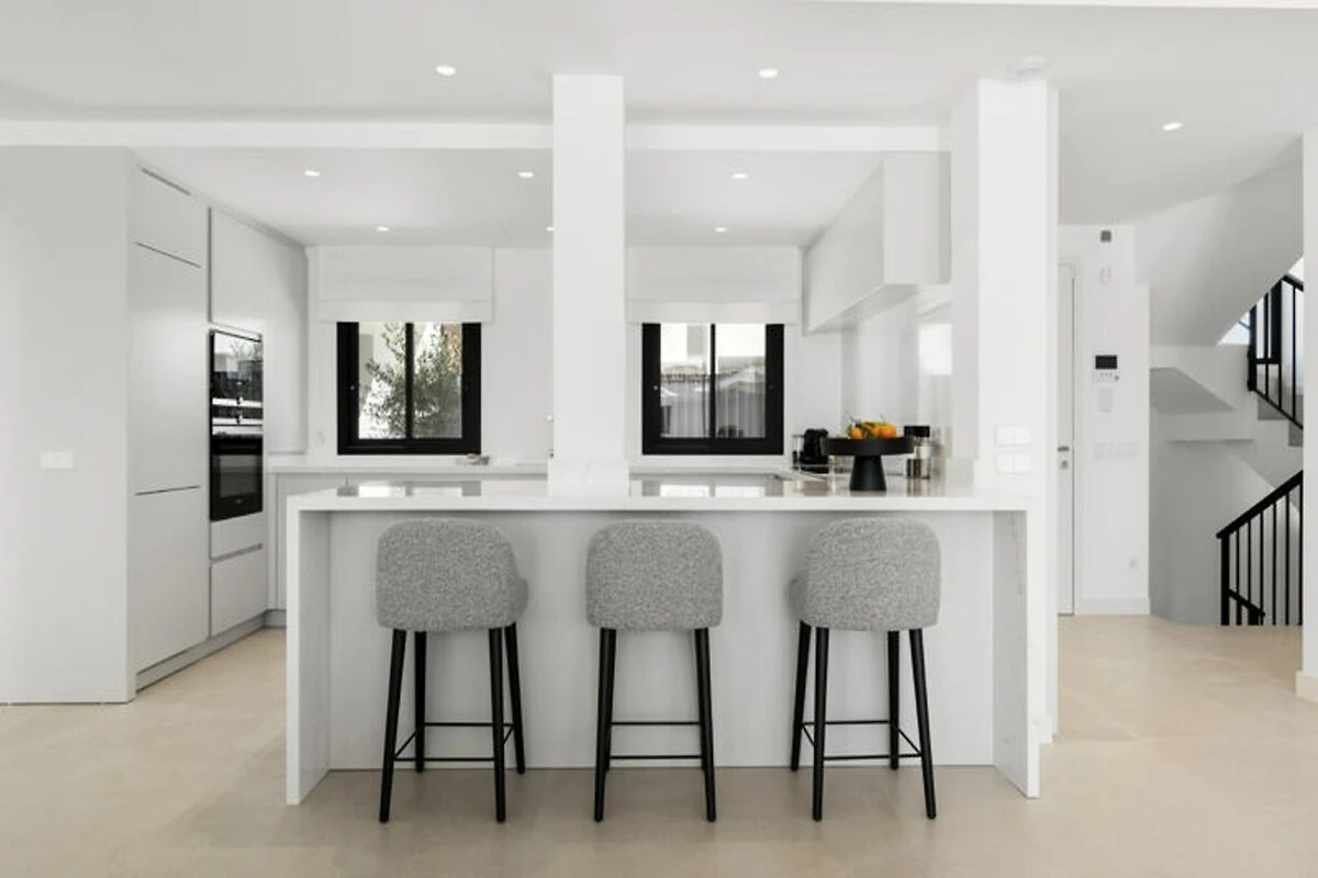Entrate per scoprire un'ampia zona giorno open space, dove ampie porte scorrevoli collegano perfettamente l'interno con l'esterno. Il soggiorno è arredato con gusto, creando un'atmosfera accogliente per riunioni di famiglia o serate con gli amici. La moderna cucina completamente attrezzata si integra perfettamente nello spazio, aprendosi su una terrazza privata dove potrete crogiolarvi al sole del Mediterraneo. Al piano superiore, la camera da letto principale dispone di un balcone privato con vista mozzafiato sul mare, mentre il seminterrato ospita altre quattro camere matrimoniali, ciascuna con bagno privato e accesso a una terrazza che si collega all'area esterna principale. All'esterno, la villa brilla davvero. La terrazza include una piscina privata riscaldata e una jacuzzi, perfette per rilassarsi tutto l'anno. Un'area barbecue invita a cenare all'aperto, mentre la terrazza parzialmente coperta con comode sedute offre un angolo tranquillo per rilassarsi sotto le stelle. Ulteriori servizi, come una lavanderia completamente attrezzata, un parcheggio privato e un sistema di sicurezza all'avanguardia, garantiscono un soggiorno confortevole e sicuro.