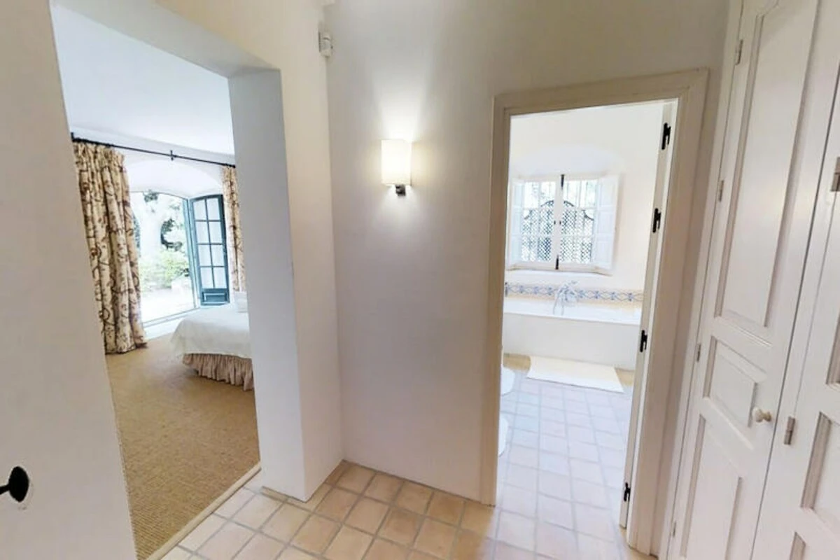 Gli spazi esterni sono altrettanto incantevoli. Un'ampia terrazza coperta con zona pranzo per 12 persone, barbecue e un comodo salotto invita a trascorrere lunghe e piacevoli serate sotto le stelle. Il giardino esposto a sud-ovest, con la sua vegetazione rigogliosa e i lettini prendisole a bordo piscina, è un'oasi di tranquillità. La pool house, completa di divano, offre un rifugio ombreggiato nei pomeriggi soleggiati.