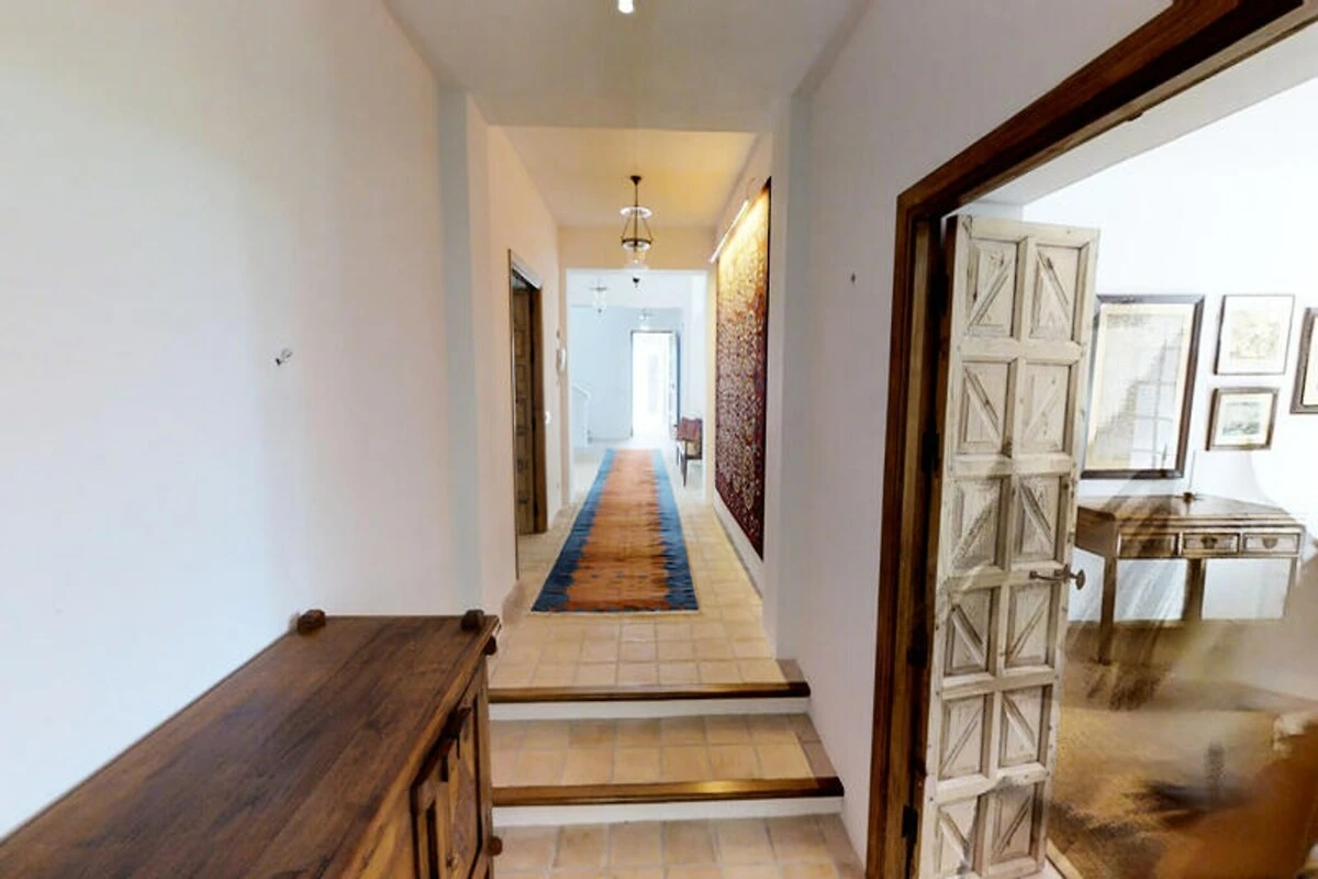 Entrate e lasciatevi accogliere dall'eleganza senza tempo della villa. L'antica porta in legno si apre su soffitti alti e un ampio corridoio che conduce a una zona giorno splendidamente progettata, una cucina completamente attrezzata con un accogliente angolo colazione e sei lussuose camere da letto. Quattro delle camere sono dotate di bagno privato, garantendo comfort e privacy a tutti gli ospiti. La suite padronale al primo piano vanta l'accesso diretto a una terrazza privata con vista mozzafiato sul Mediterraneo, perfetta per rilassarsi con un libro o un bicchiere di vino.