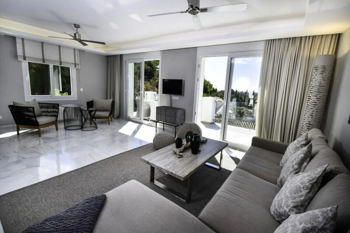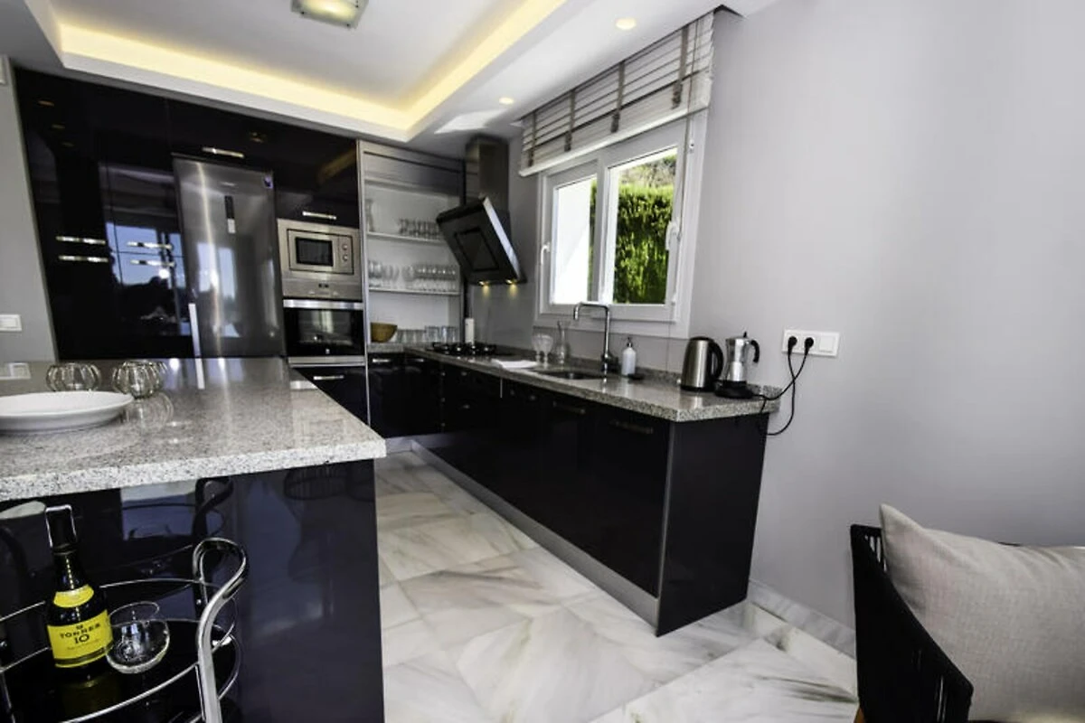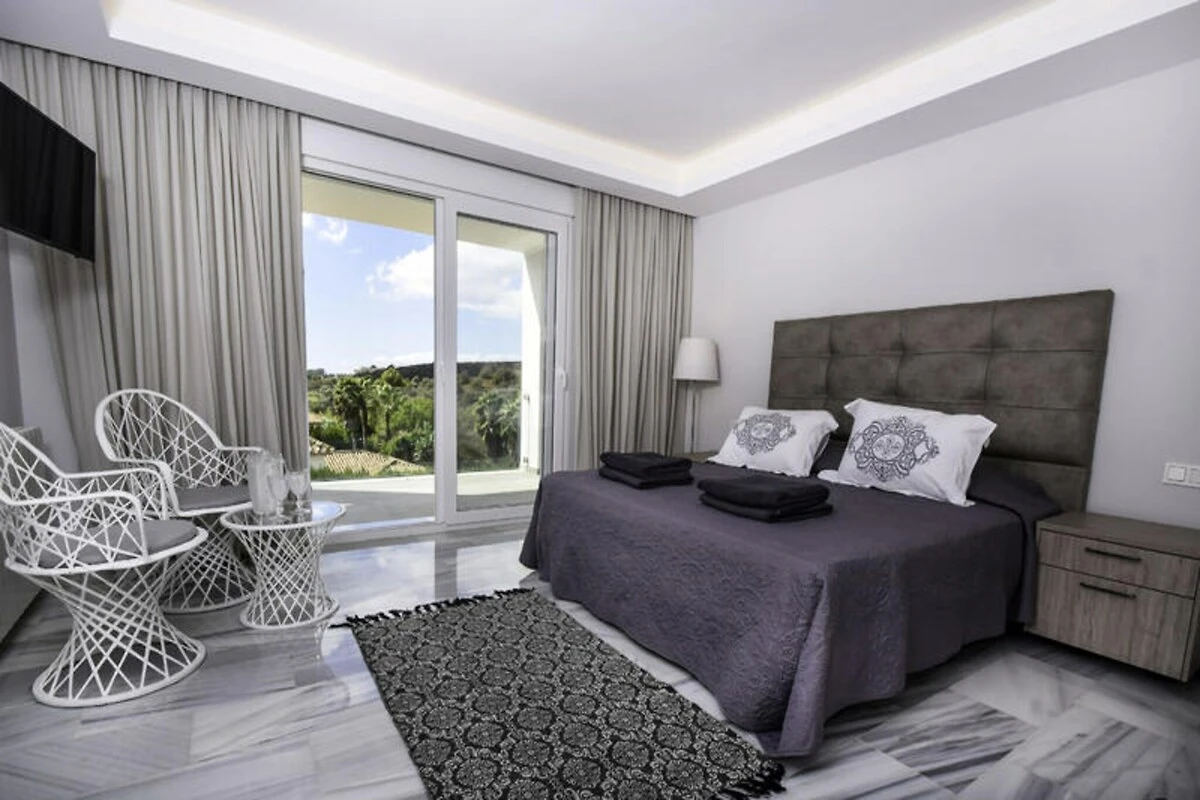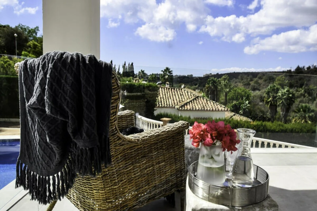 Arroccata su una collina elevata, questa splendida villa offre un armonioso connubio tra lusso moderno e serena bellezza naturale. Dalle sue terrazze, rimarrete incantati dalla vista ininterrotta di un'area protetta e dello scintillante Mar Mediterraneo, creando lo sfondo perfetto per la vostra fuga di vacanza. La villa è immersa in un perimetro recintato e sicuro ed è dotata di un sistema di allarme all'avanguardia, che garantisce la massima tranquillità durante tutto il soggiorno. Distribuita su due livelli, la villa vanta un design contemporaneo open space, che collega perfettamente il soggiorno, la zona pranzo e la cucina completamente attrezzata. Uscite sulla terrazza per godervi la vista mozzafiato sulla pittoresca valle di El Rosario. Al piano inferiore, troverete tre camere da letto splendidamente arredate, tra cui una suite padronale esposta a sud con terrazza privata coperta e lussuoso bagno privato. Un'ulteriore quarta camera da letto, che funge anche da sala giochi o spazio ricreativo, dispone di ingresso indipendente, bagno privato e accesso diretto alla piscina. Gli spazi esterni sono progettati per il massimo relax e intrattenimento. Un'ampia terrazza circonda l'invitante piscina riscaldata, dotata di lettini prendisole, tavolo da pranzo e barbecue. Un'area lounge ombreggiata offre un angolo tranquillo dove rilassarsi con un libro o sorseggiare un drink rinfrescante. Ulteriori servizi includono internet in fibra ottica ad alta velocità, canali TV internazionali, aria condizionata in tutti gli ambienti e un tavolo da ping-pong per il divertimento in famiglia. \n\nSituata in posizione strategica, a soli 3 minuti di auto da servizi locali come supermercati, ristoranti, un tennis club e un panificio, la villa è anche facilmente raggiungibile da Marbella (5 km), Puerto Banús (12 km) e dall'aeroporto di Malaga (45 km). Che siate alla ricerca di un rifugio tranquillo o di una vacanza attiva, questa villa promette un'esperienza indimenticabile nel cuore della Costa del Sol.
