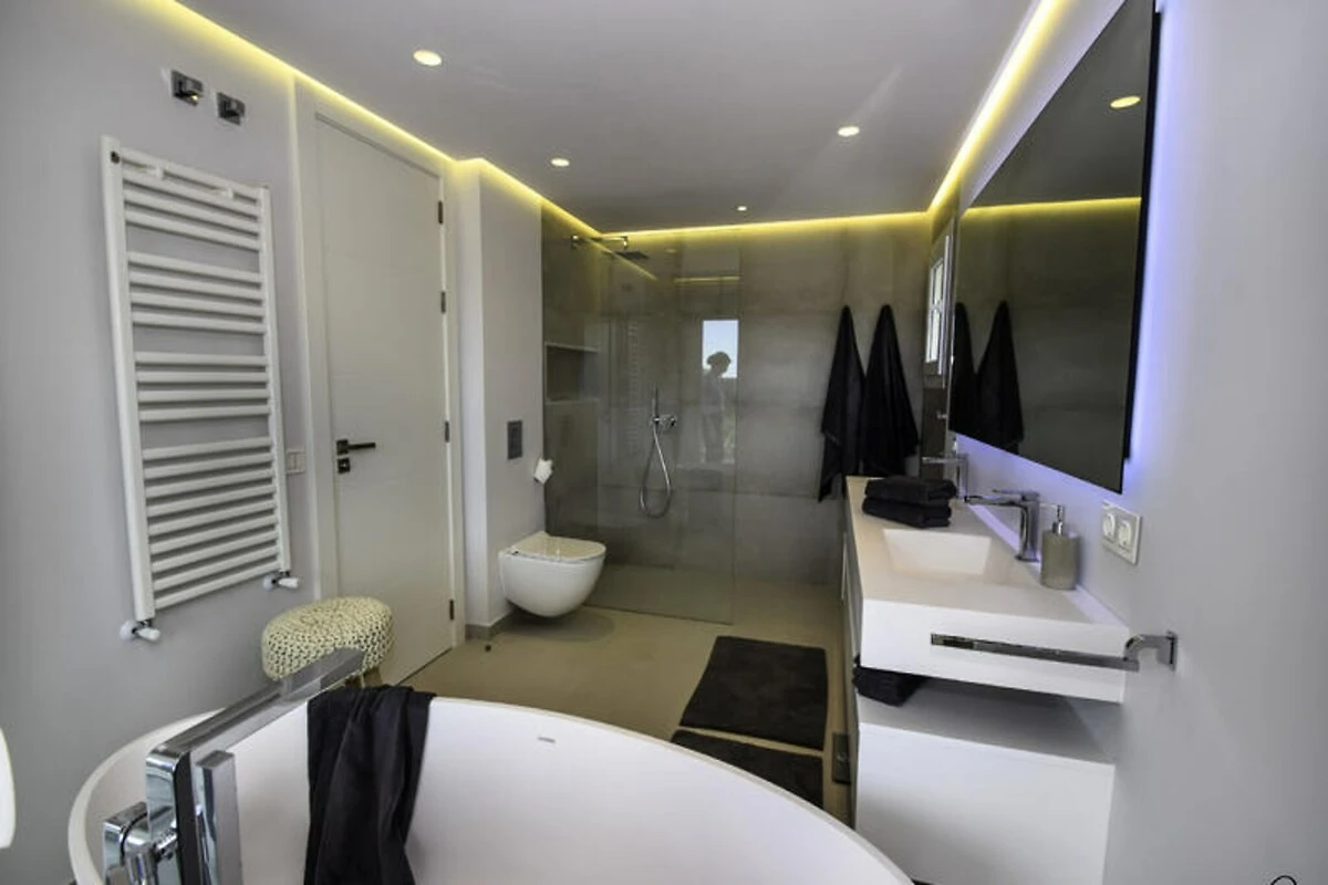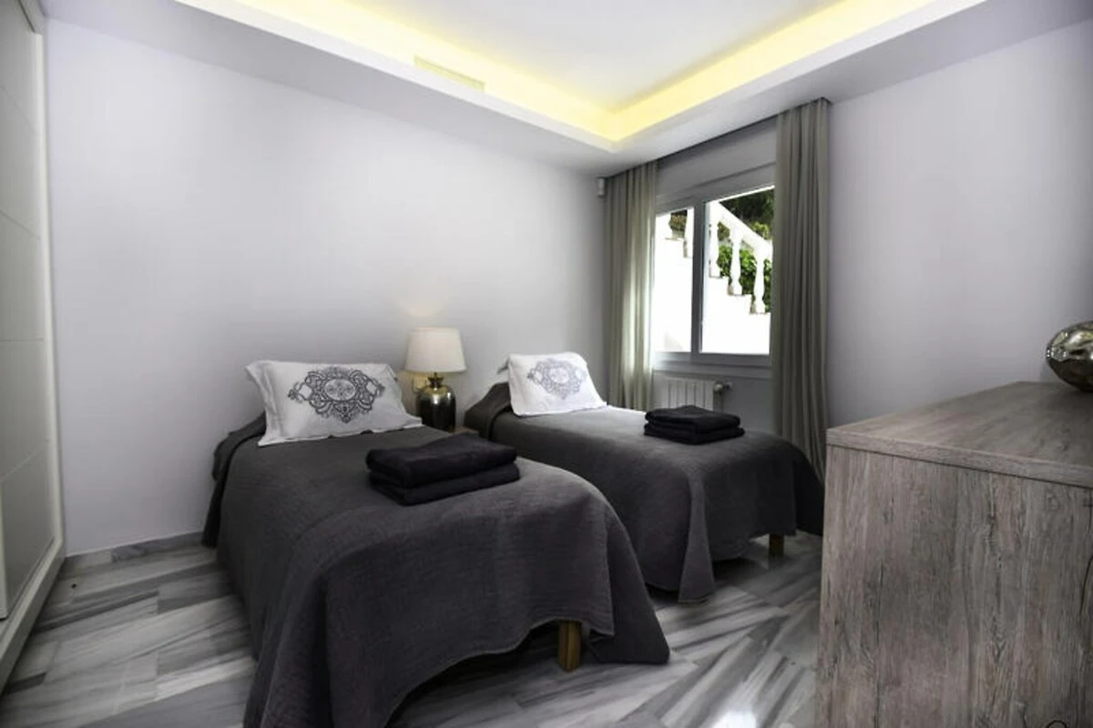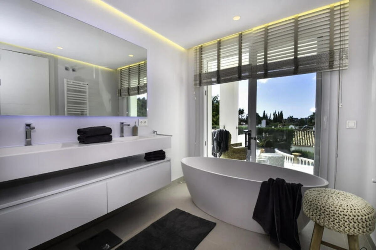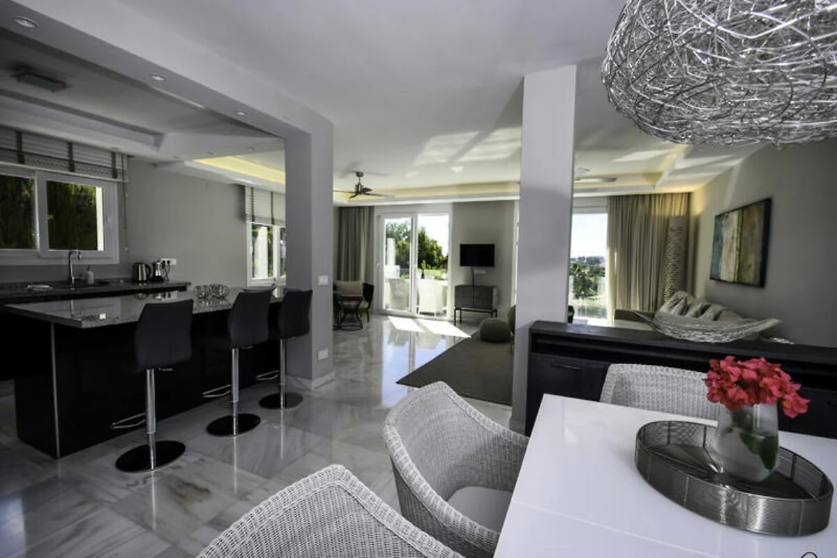 Arroccata su una collina elevata, questa splendida villa offre un armonioso connubio tra lusso moderno e serena bellezza naturale. Dalle sue terrazze, rimarrete incantati dalla vista ininterrotta di un'area protetta e dello scintillante Mar Mediterraneo, creando lo sfondo perfetto per la vostra fuga di vacanza. La villa è immersa in un perimetro recintato e sicuro ed è dotata di un sistema di allarme all'avanguardia, che garantisce la massima tranquillità durante tutto il soggiorno. Distribuita su due livelli, la villa vanta un design contemporaneo open space, che collega perfettamente il soggiorno, la zona pranzo e la cucina completamente attrezzata. Uscite sulla terrazza per godervi la vista mozzafiato sulla pittoresca valle di El Rosario. Al piano inferiore, troverete tre camere da letto splendidamente arredate, tra cui una suite padronale esposta a sud con terrazza privata coperta e lussuoso bagno privato. Un'ulteriore quarta camera da letto, che funge anche da sala giochi o spazio ricreativo, dispone di ingresso indipendente, bagno privato e accesso diretto alla piscina. Gli spazi esterni sono progettati per il massimo relax e intrattenimento. Un'ampia terrazza circonda l'invitante piscina riscaldata, dotata di lettini prendisole, tavolo da pranzo e barbecue. Un'area lounge ombreggiata offre un angolo tranquillo dove rilassarsi con un libro o sorseggiare un drink rinfrescante. Ulteriori servizi includono internet in fibra ottica ad alta velocità, canali TV internazionali, aria condizionata in tutti gli ambienti e un tavolo da ping-pong per il divertimento in famiglia. \n\nSituata in posizione strategica, a soli 3 minuti di auto da servizi locali come supermercati, ristoranti, un tennis club e un panificio, la villa è anche facilmente raggiungibile da Marbella (5 km), Puerto Banús (12 km) e dall'aeroporto di Malaga (45 km). Che siate alla ricerca di un rifugio tranquillo o di una vacanza attiva, questa villa promette un'esperienza indimenticabile nel cuore della Costa del Sol.
