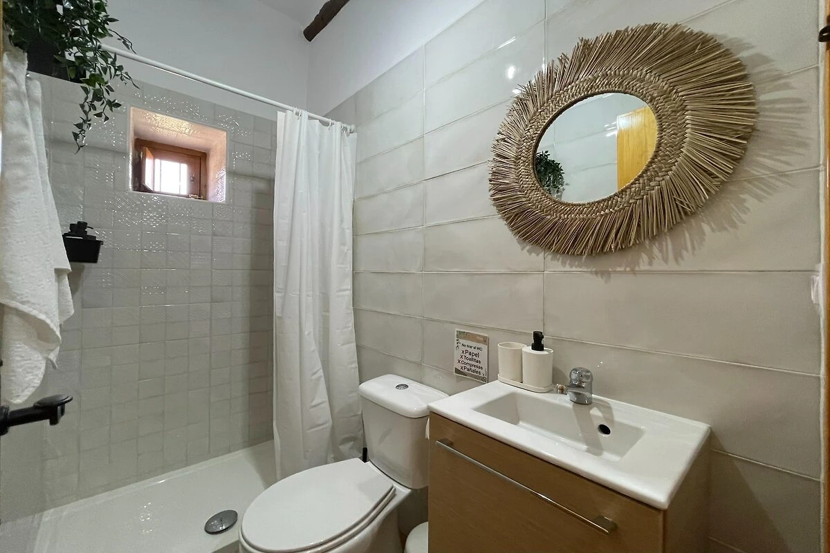Internamente, la casa dispone di due accoglienti camere da letto, una con letto matrimoniale e l'altra con letti a castello o due letti singoli, che la rendono perfetta per coppie, amici o piccole famiglie. Il luminoso soggiorno/sala da pranzo invita al relax con TV satellitare, lettore DVD e un'accogliente area salotto che si apre sulla terrazza. La cucina completamente attrezzata è dotata di tutto il necessario per preparare pasti facili e fatti in casa: piano cottura, forno, microonde, macchina per il caffè, lavastoviglie, frigorifero con congelatore e un tavolo da pranzo per le colazioni in comune prima di uscire alla scoperta della zona. Un bagno moderno con doccia e asciugacapelli completa il comfort interno, mentre la lavanderia dedicata con lavatrice, asciugatrice e set da stiro rende agevoli anche i soggiorni più lunghi.