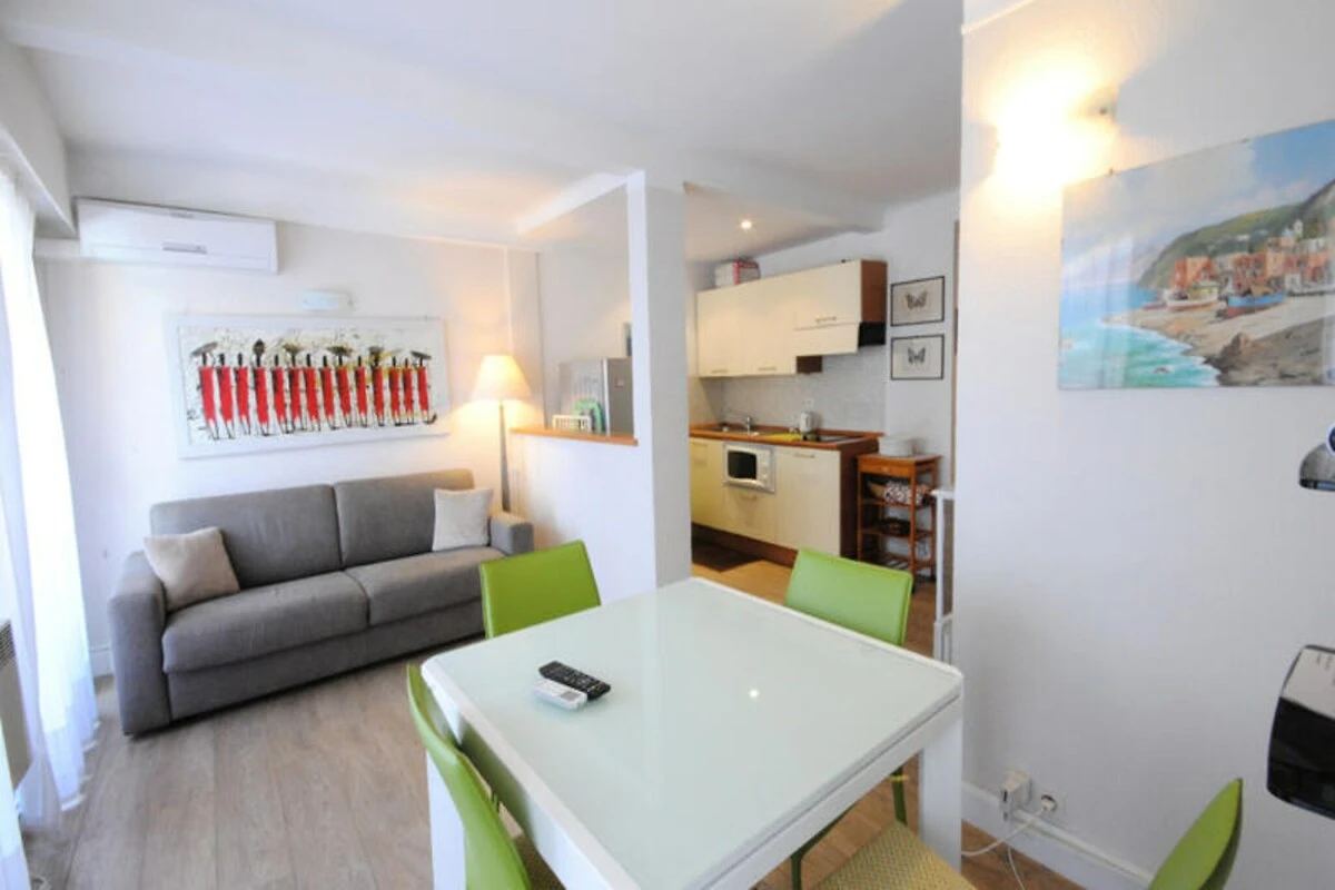 Tra le vivaci strade di Cannes, a pochi passi dall'iconica Croisette, questo elegante appartamento offre un rifugio sereno nel cuore della Costa Azzurra. Immagina di svegliarti al dolce ronzio della città, di uscire sul tuo balcone privato per goderti la fresca aria mediterranea e di sapere che la sabbia dorata della spiaggia è a soli 100 metri di distanza. Che tu sia qui per il glamour del Palais des Festivals o per il fascino dei mercati locali, questo appartamento ti mette al centro di tutto. \n\nInternamente, il moderno bilocale si estende su 35 m² ed è progettato con cura per il comfort e la praticità. Il soggiorno dispone di un comodo divano letto, TV a schermo piatto, Wi-Fi e aria condizionata, garantendo un'atmosfera rilassante dopo una giornata di esplorazione. La cucina completamente attrezzata include un ampio frigorifero con congelatore, forno a microonde e fornelli, perfetta per preparare pasti con ingredienti freschi del vicino supermercato. La camera da letto vanta un comodo letto matrimoniale e un bagno privato con doccia e lavatrice, ideale per soggiorni prolungati. \n\nUscite e scoprite il meglio di Cannes a portata di mano. La spiaggia scintillante e la rinomata Croisette sono a pochi passi, mentre ristoranti, un supermercato e il glamour del Palais des Festivals sono tutti facilmente raggiungibili. Il parcheggio a pagamento nelle vicinanze garantisce un accesso agevole a chi arriva in auto, e la stazione ferroviaria è a solo 1 km di distanza, rendendo agevoli le gite di un giorno lungo la Riviera. \n\nChe siate in viaggio per lavoro, per piacere o per assaporare lo stile di vita della Costa Azzurra, questo appartamento offre il perfetto mix di comfort, posizione e stile. Create ricordi indimenticabili a Cannes, dove ogni momento è una celebrazione della vita.