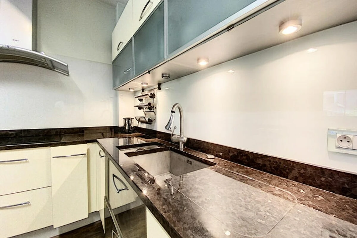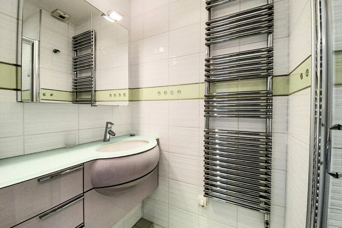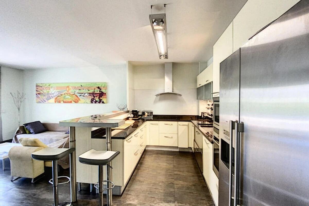 Con una superficie di ben 124 m², questo appartamento di 4 locali combina eleganza e comfort in ogni dettaglio. L'ampio ingresso vi accoglie con un comodo armadio per i vostri effetti personali. Tre camere da letto splendidamente arredate offrono un rifugio sereno: la camera da letto principale dispone di due letti singoli, un bagno privato con doccia, doppio lavabo e WC; la seconda camera vanta un letto matrimoniale e un televisore; e la terza camera offre due letti singoli e una pratica zona lavanderia. Un secondo bagno con doccia e un WC separato garantiscono la comodità di tutti gli ospiti. Il soggiorno, con il suo morbido divano angolare e la TV a grande schermo, è perfetto per rilassarsi, mentre la cucina completamente attrezzata, completa di frigorifero americano, piano cottura in vetroceramica e lavastoviglie, soddisfa tutte le vostre esigenze culinarie.